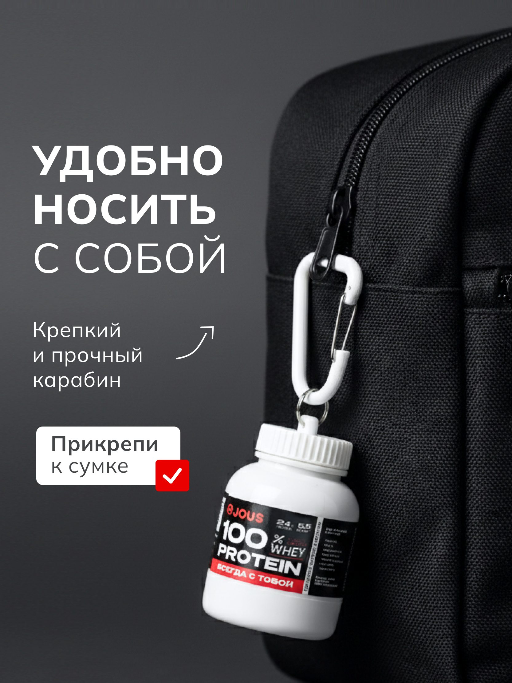 Контейнер брелок JOUS  — ваш надежный спутник в тренировках, путешествиях и повседневной жизни. Берите питание с собой везде, оставайтесь активными и организованными каждый день!