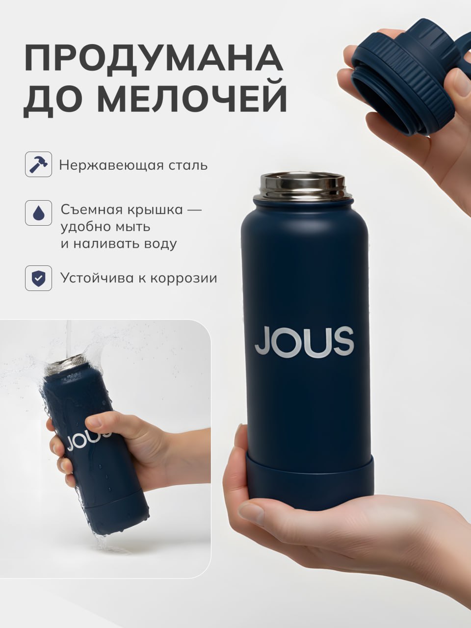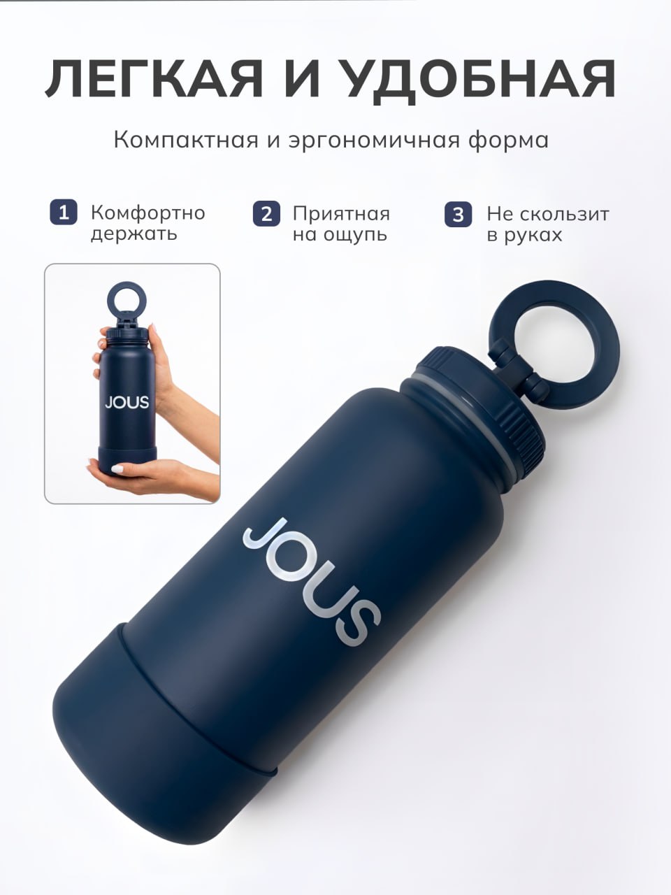 Термобутылка Jous — ваш идеальный спутник в активном образе жизни! Изготовленная из нержавеющей стали, она сохраняет напитки горячими или холодными до 12 часов, обеспечивая вам комфорт в любое время. Объем 1000 мл идеально подходит для повседневного использования, будь то тренировки, прогулки или путешествия.