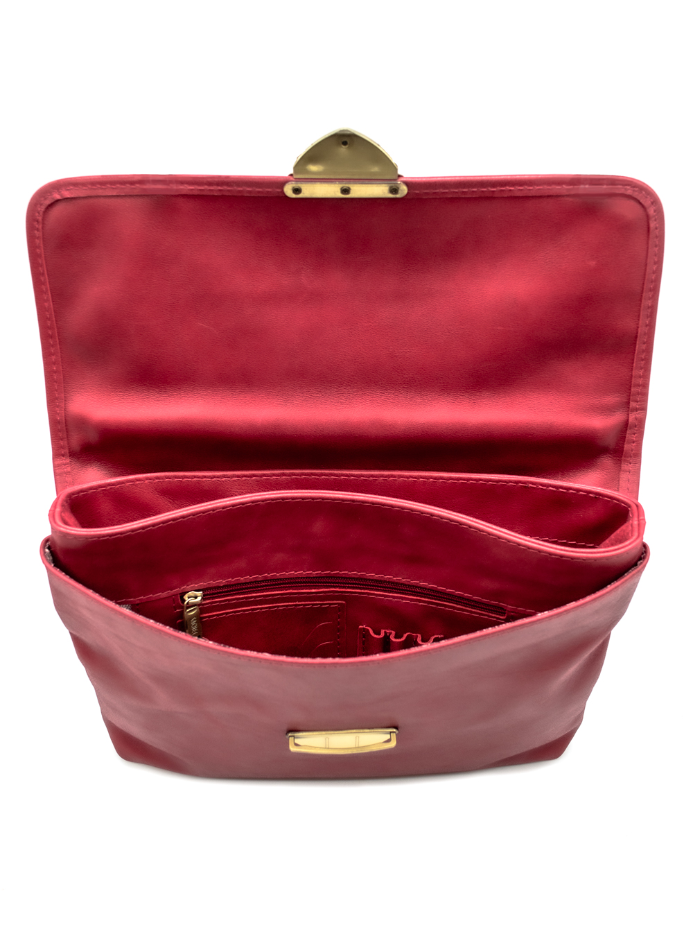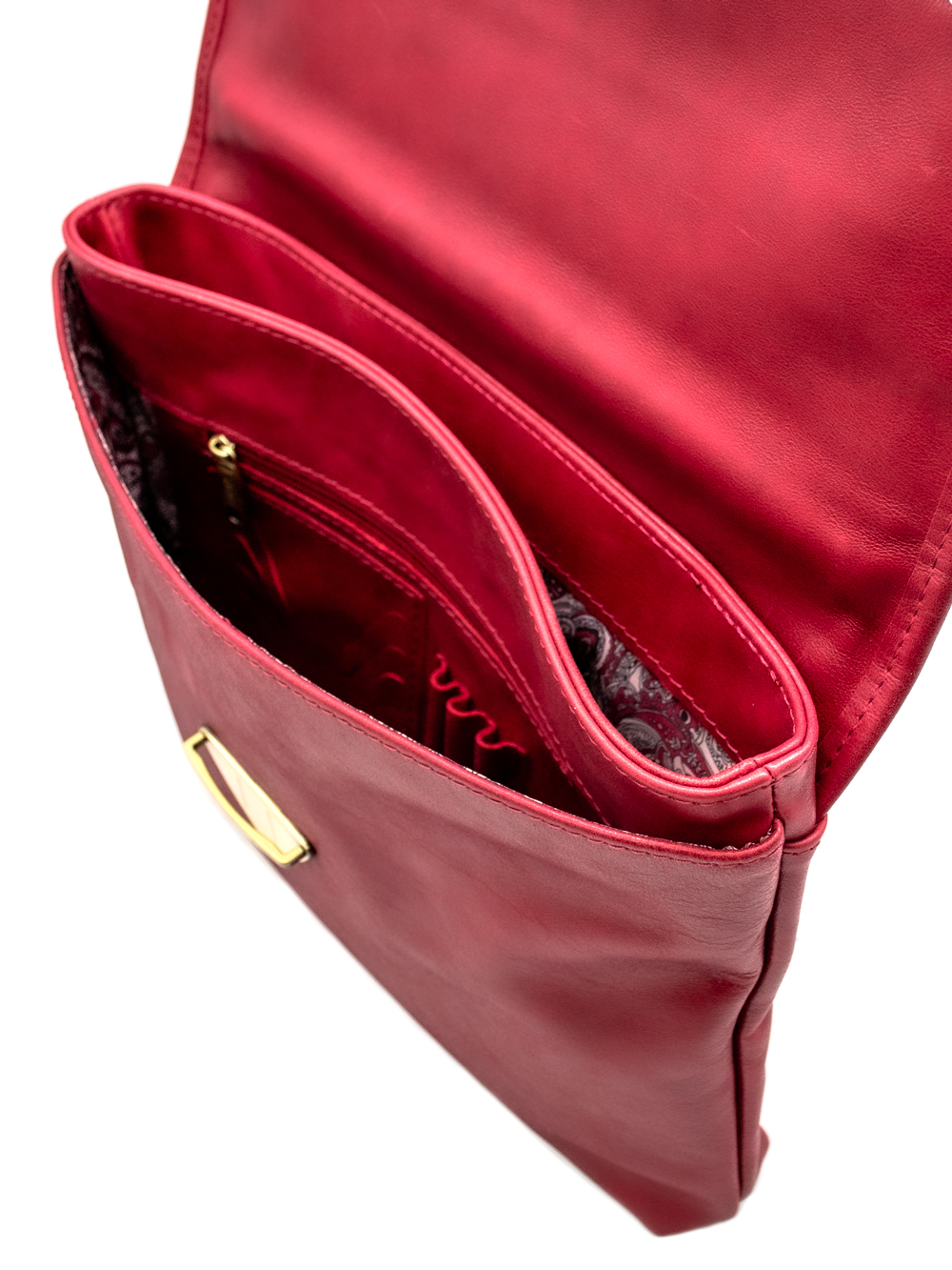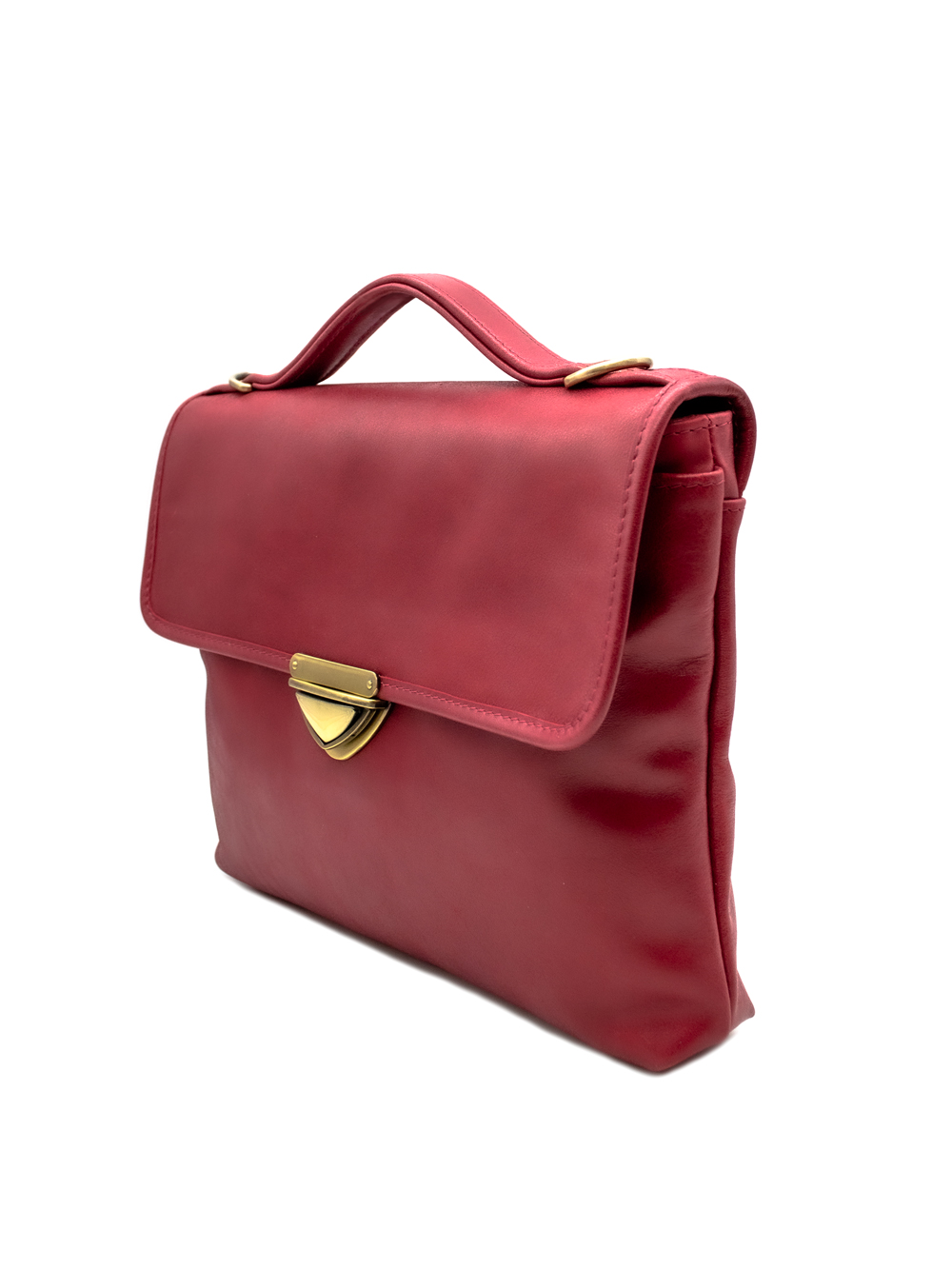 Кожаный женский портфель – это модель, которая нравится с первого взгляда. Портфель “Комфорт” сшит из натуральной европейской кожи вишневого цвета, подходит для офиса и повседневной жизни – в любой ситуации он будет выглядеть достойно и красиво. Внутри портфеля два отделения. Одно основное под формат А4, ноутбук до 14 дюймов, второе с карманом на молнии для мелочей, слотами под ручки и отсеками для визиток. Портфель застегивается на стильную портфельную застежку, которая придает сумке деловой формат. Внутри портфель "Комфорт" на красивой износостойкой подкладке. Длинный съемный кожаный ремень позволяет носить портфель на плече.