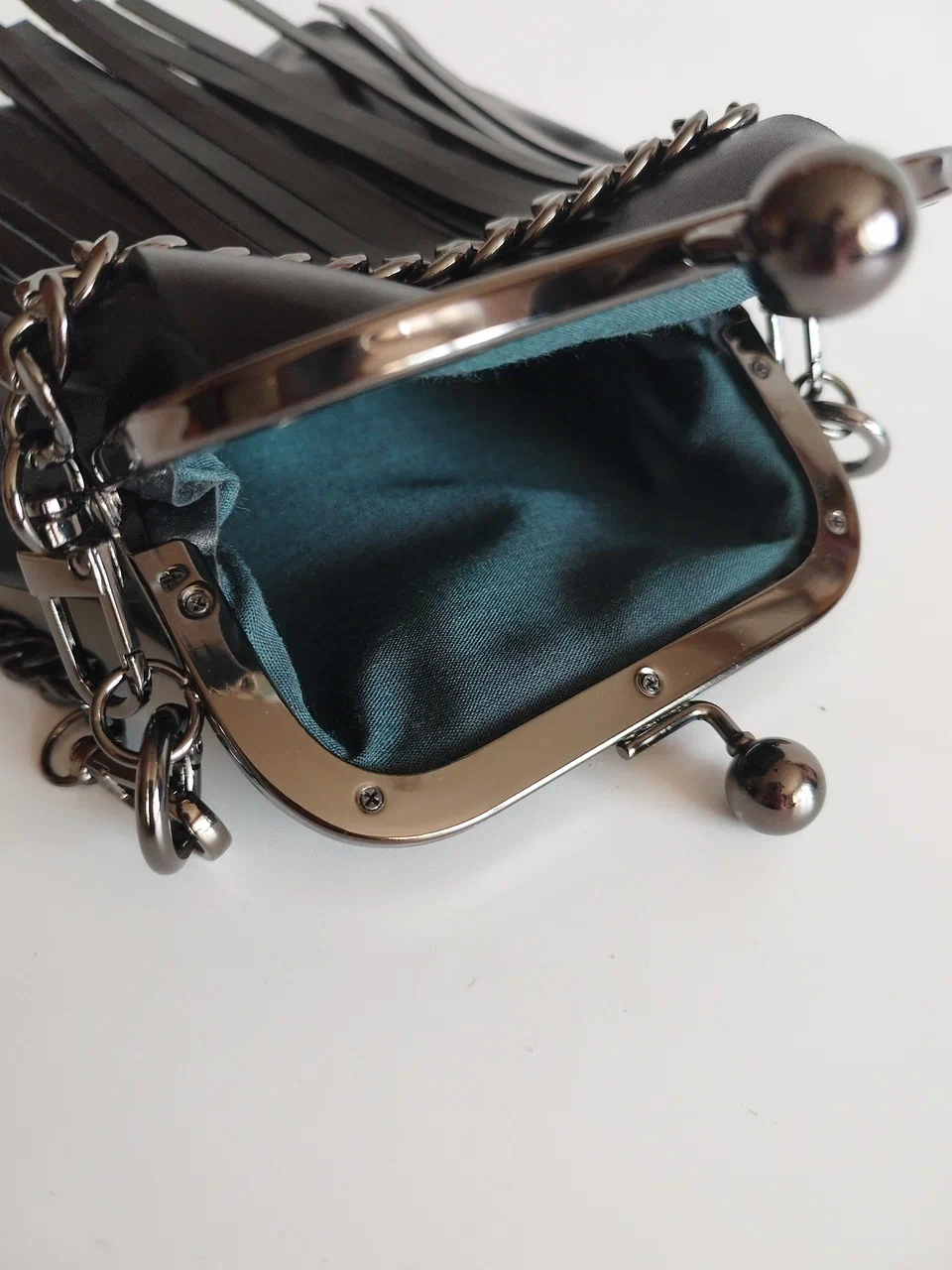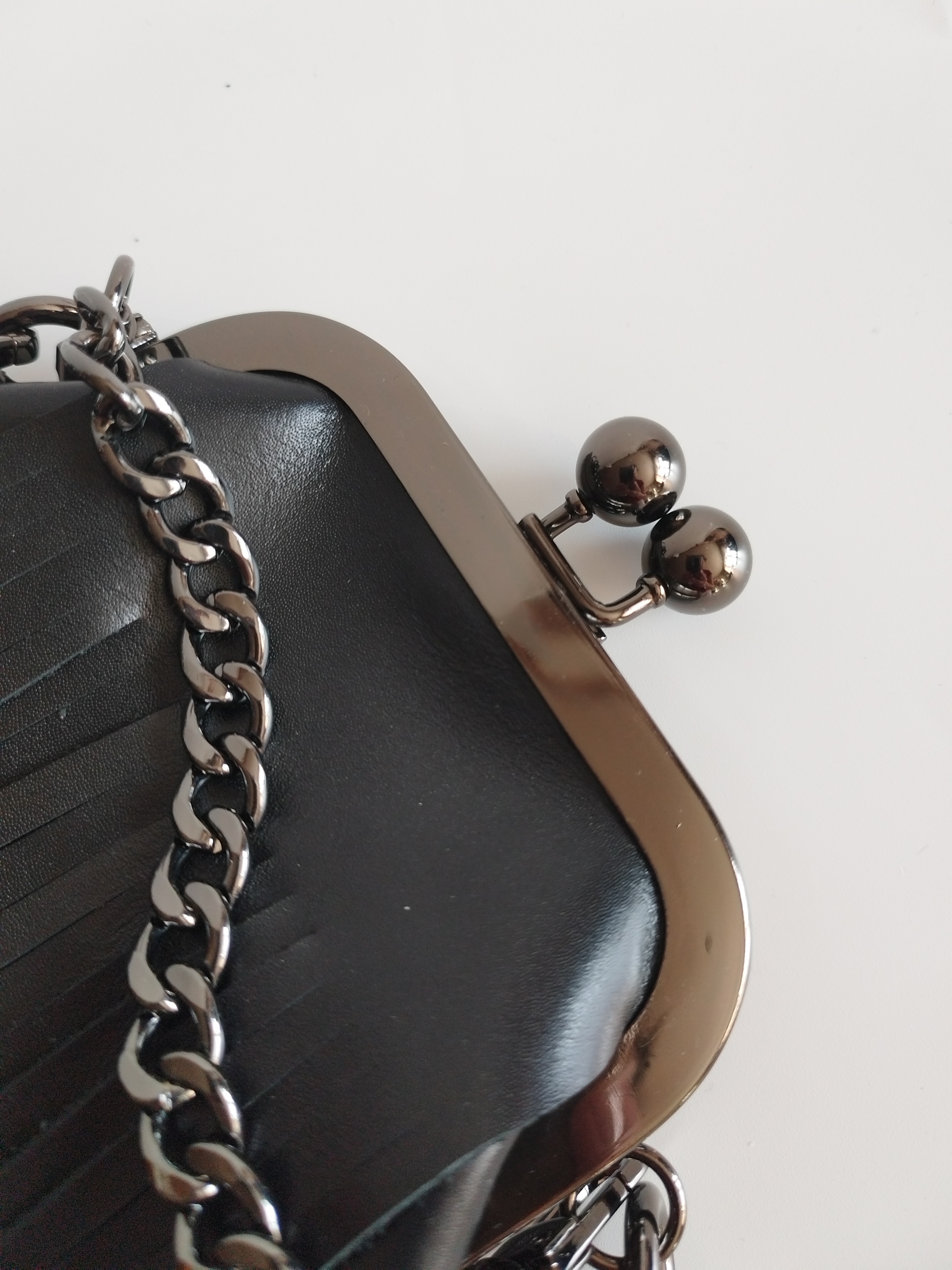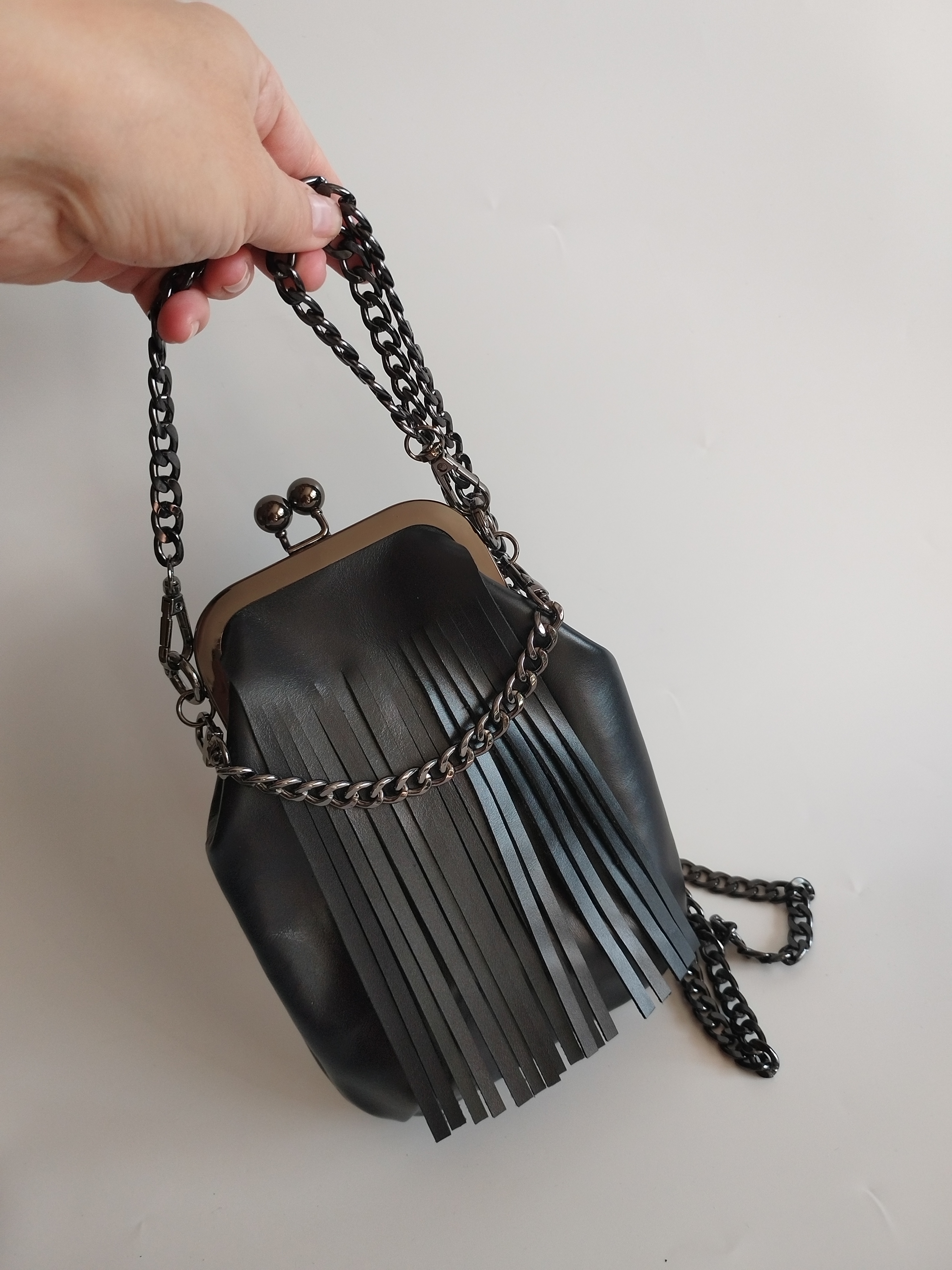 У сумочки очень удобная застежка - фермуар ("поцелуйчики"). Открывать и закрывать сумочку Вы сможете легко одной рукой.