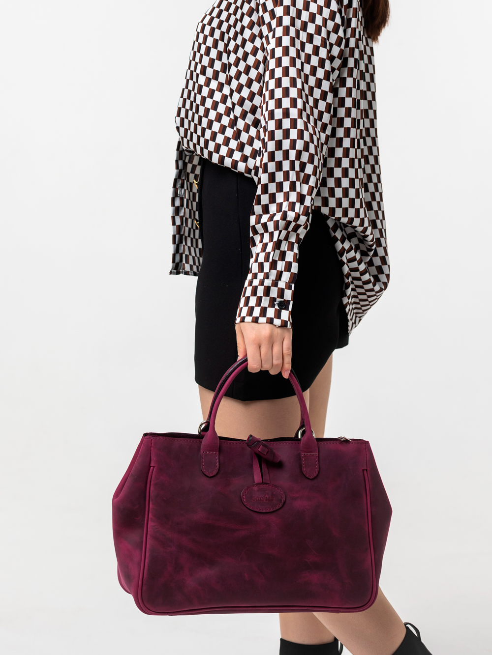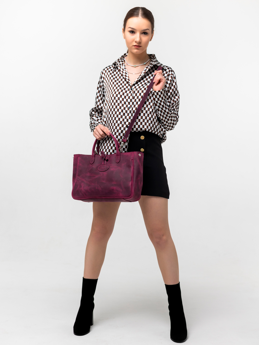 Сумка выполнена в коже крейзи хорс — в процессе носки сумка будет приобретать винтажный эффект. Сумка «Шампань» имеет одно основное вместительное отделение, красивую подкладку и внутренний карманом