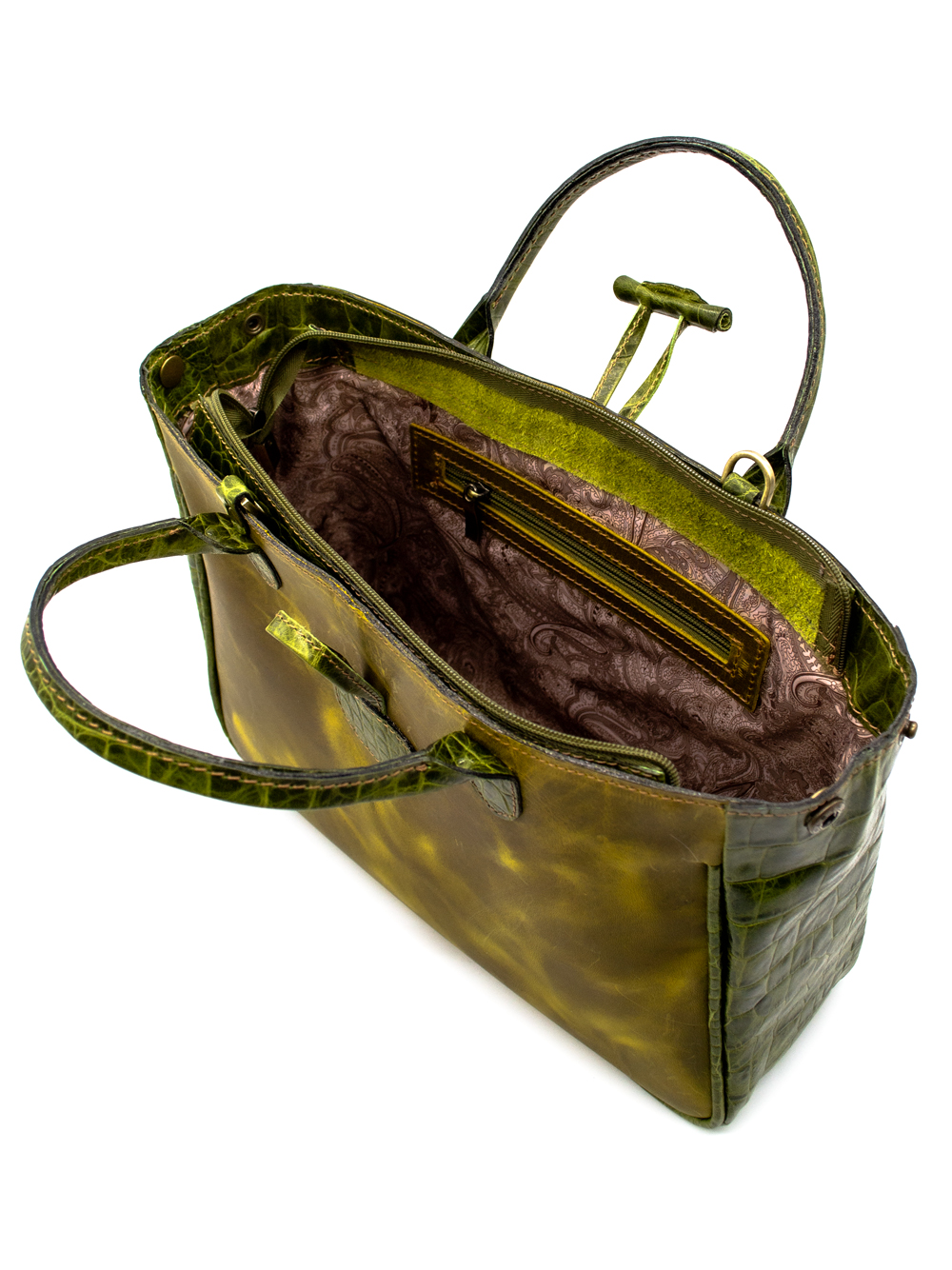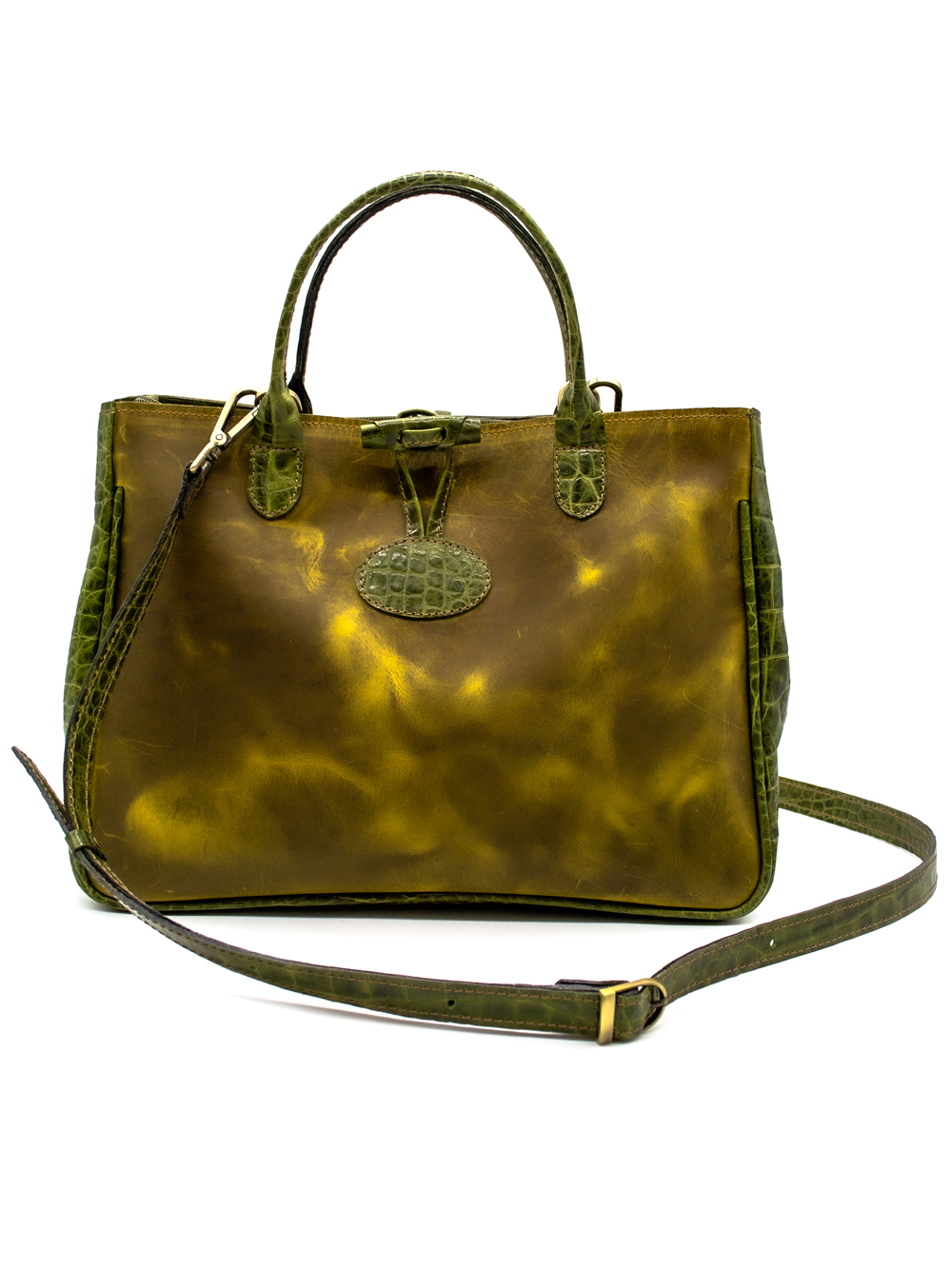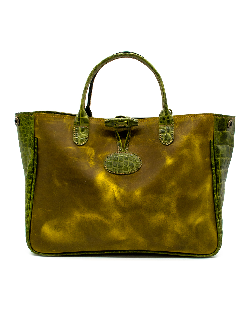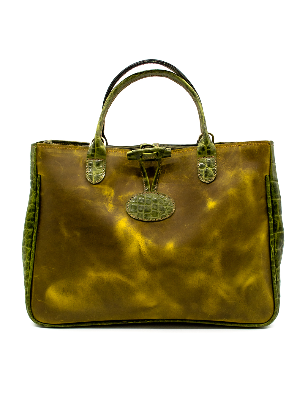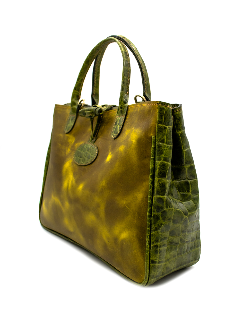 Очень элегантная женская сумка тоут от мастерской Sachet «Шампань» в уникальном исполнении — натуральной коже цвета лайм.