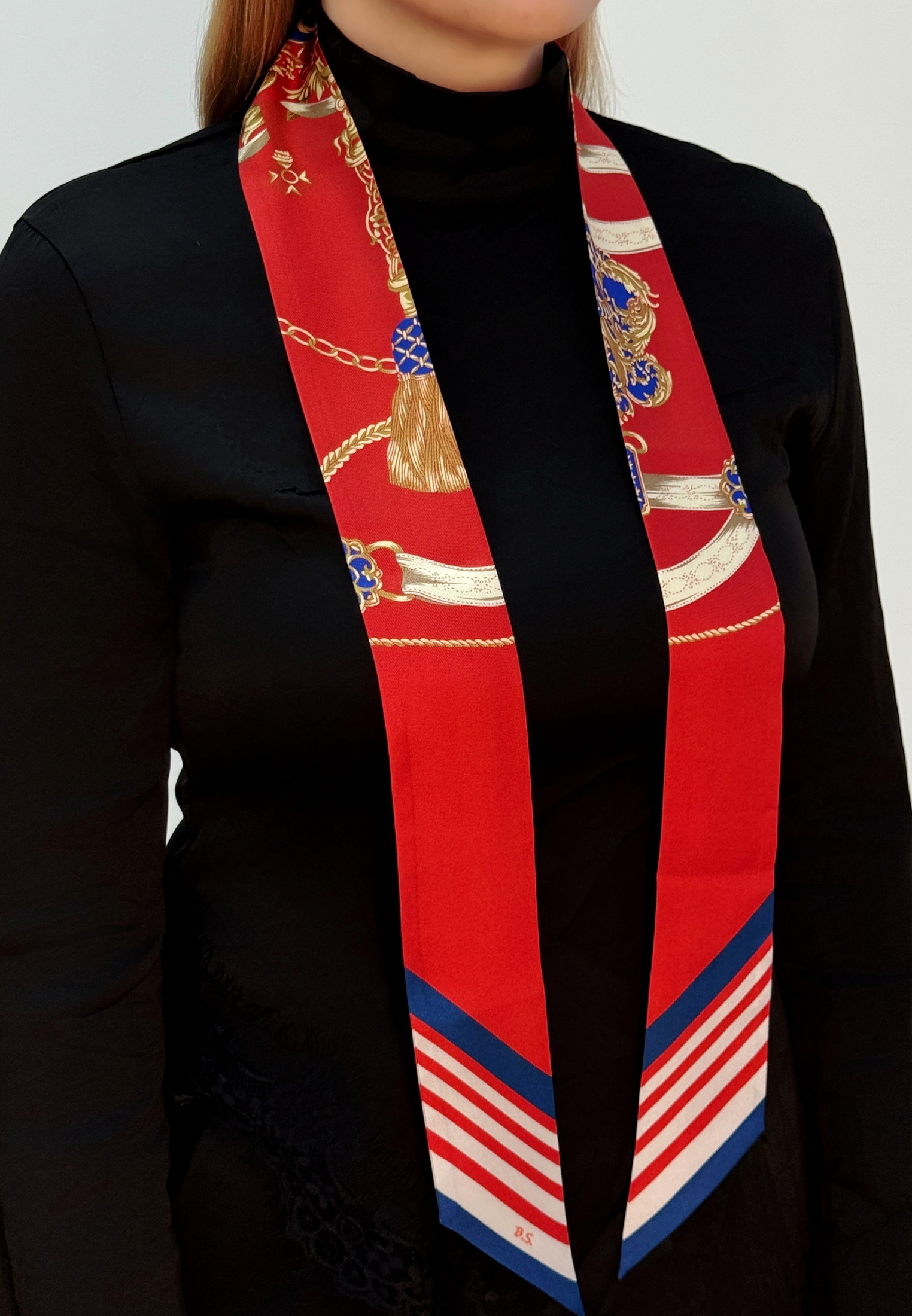 Шёлковый шарф твилли Bjanka Silk из коллекции «Echos de Gala»(Эхо Гала), созданной как дань известному культовому платку Brides de Gala. Мы сохраняем дух классики, переводя его в эстетику бренда: винтажный шик, унисекс-дизайн, премиальный шёлк малбери (16 момми) и лимитированный выпуск.
