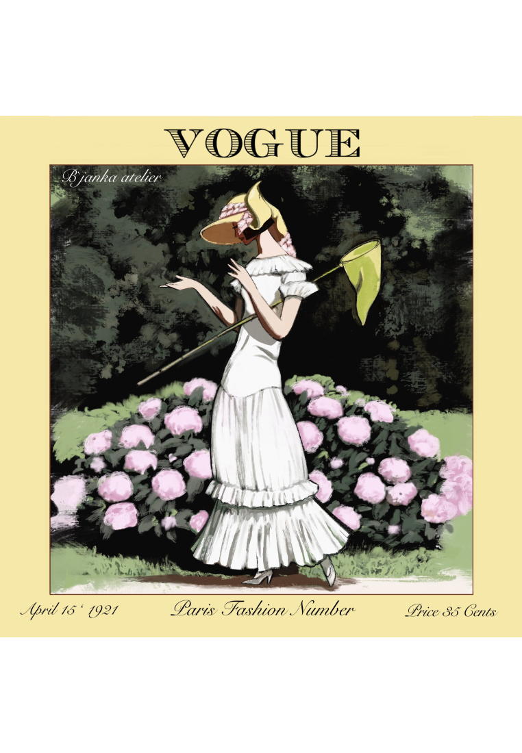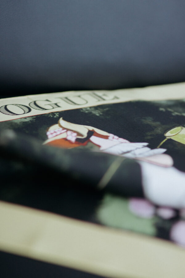 Шейный платок из коллекции "Golden Vogue 20th", которая вдохновлена "Золотыми двадцатыми" прошлого столетия. Это время бурного развития культурной и социальной жизни после Первой мировой войны, символом которого стал журнал "Vogue". Коллекция воссоздает обложки этого легендарного журнала, что придает платку особую атмосферу и уникальность. Изготовлен из 100% натурального шелка Mulberry, самого ценного вида шелковых волокон. Для печати используются экологически чистые пигменты.