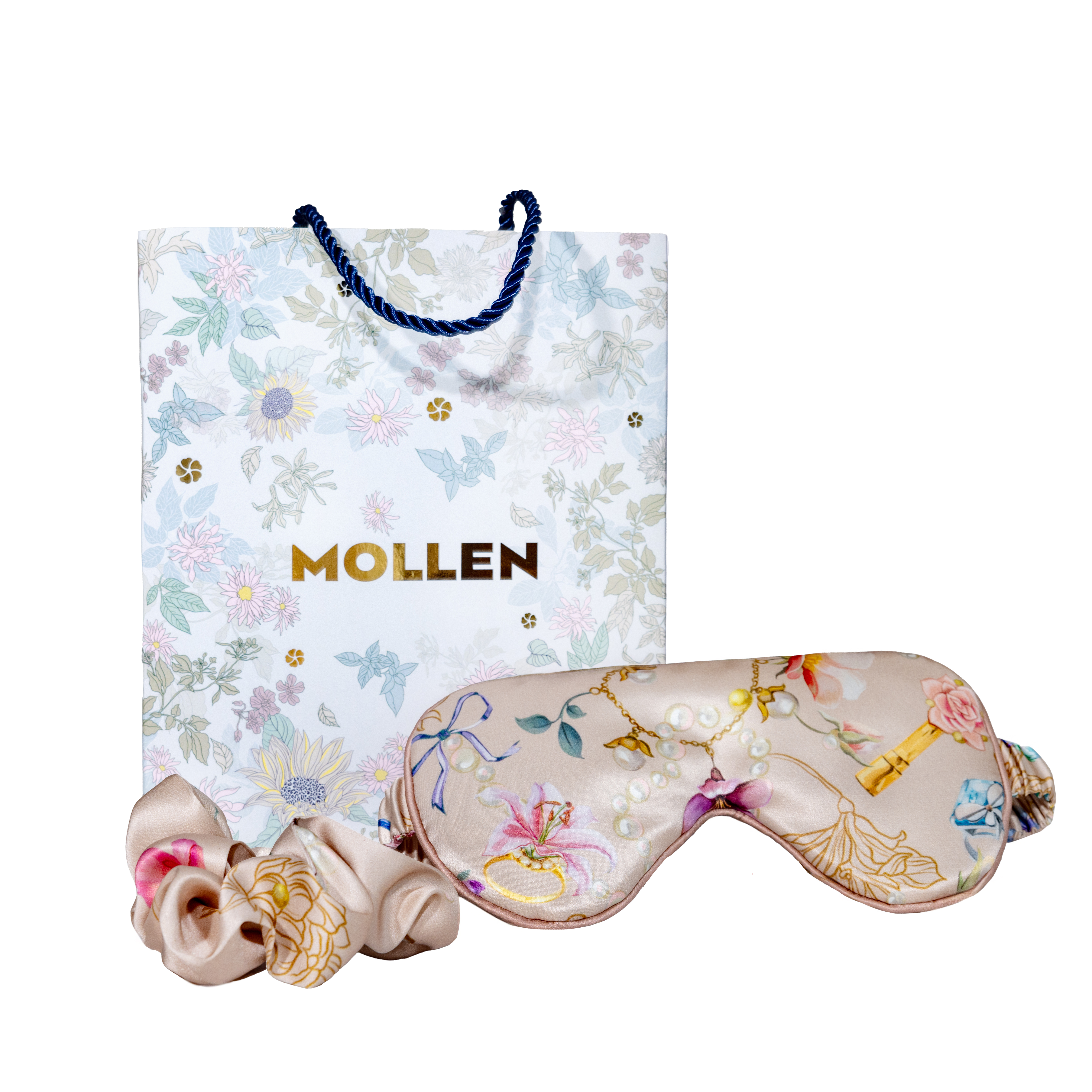 Подарочный шёлковый набор «Забава» состоит из маски для сна и резинки для волос. Состав: 100% шёлк Вид плетения: атласное Сорт: Mulberry Плотность: 22 момми Размер маски: обхват 54 см, ширина 11 см Размер резинки: обхват 18 см, ширина 5 см