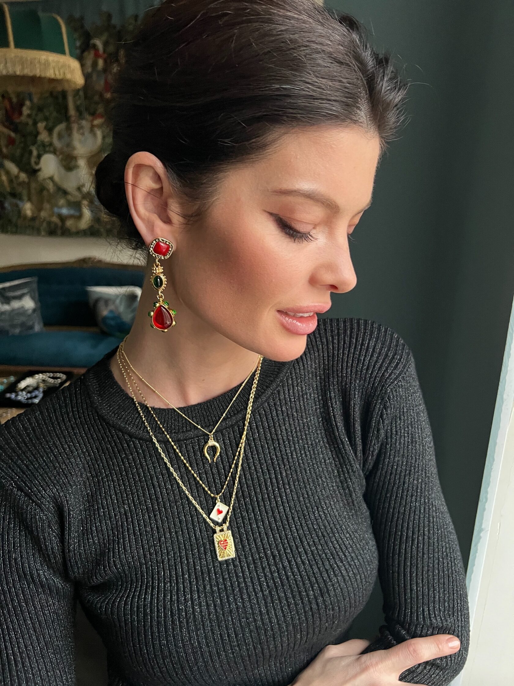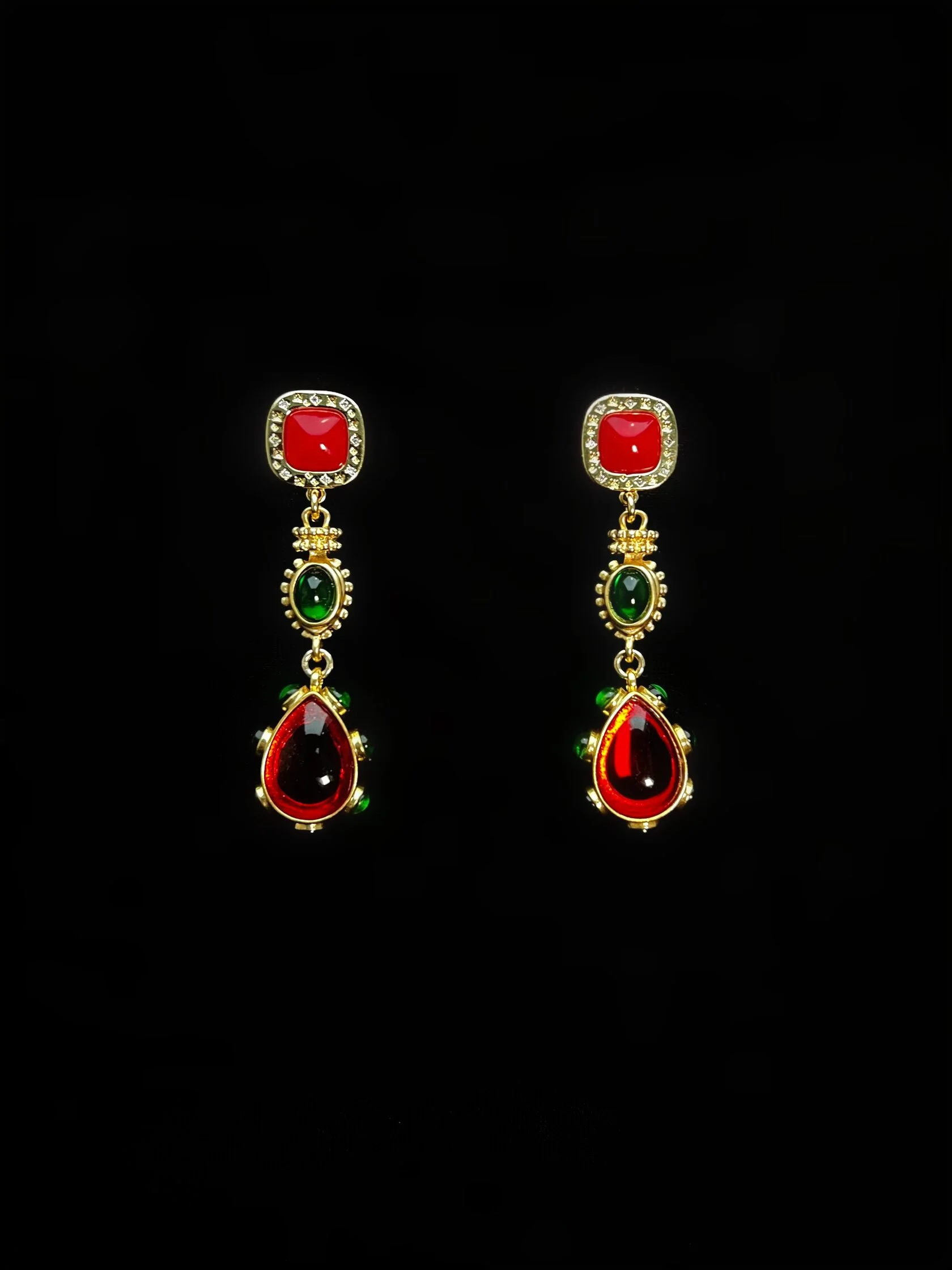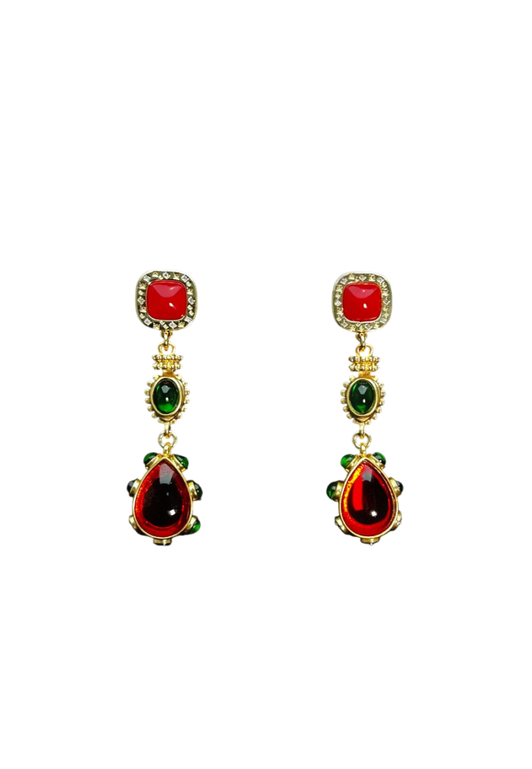 Барочные серьги украшены цветными кабошонами и вставками богемского стекла.