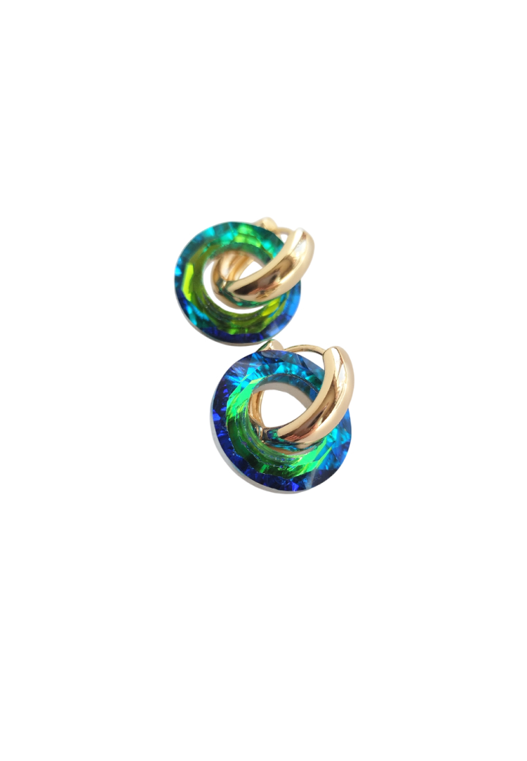 Серьги-кольца украшены цветными съемными подвесками «перчиками». Замок кликстер Сплав: латунь, позолота