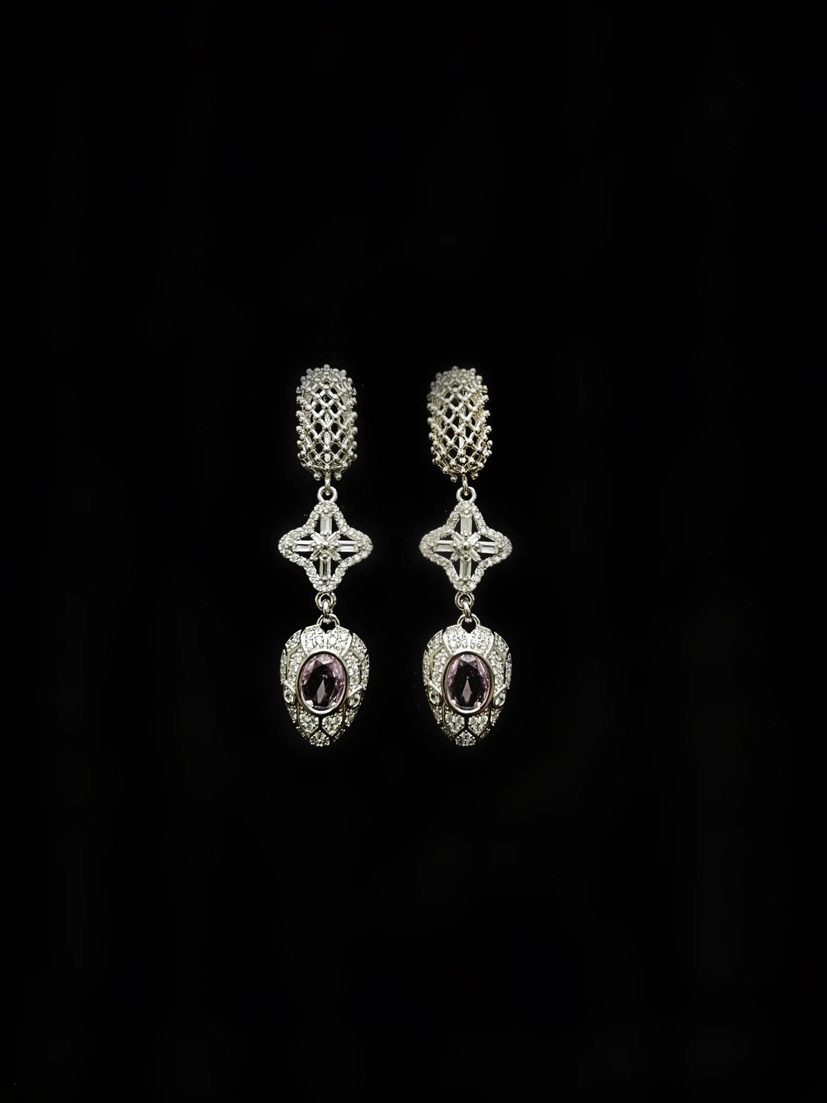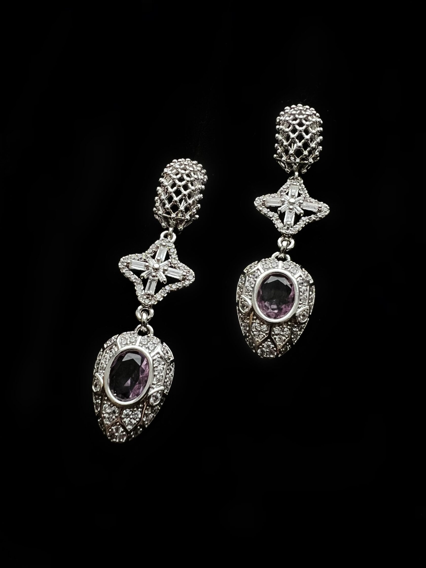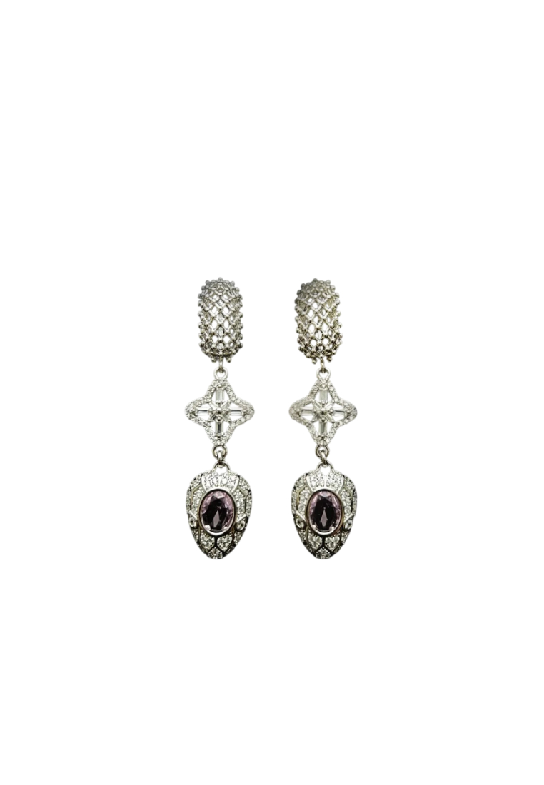 Коктейльные серьги украшены декоративными вставками с ювелирным стеклом и дополнены подвесками в виде голов змей с кристаллами «Swarovski». Английский замок