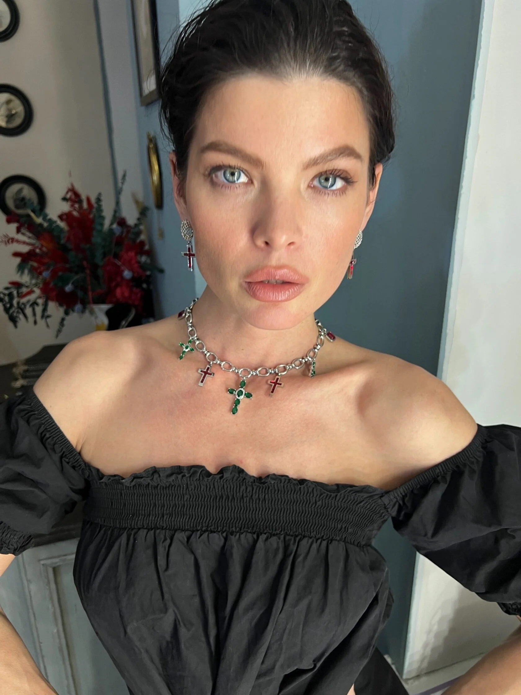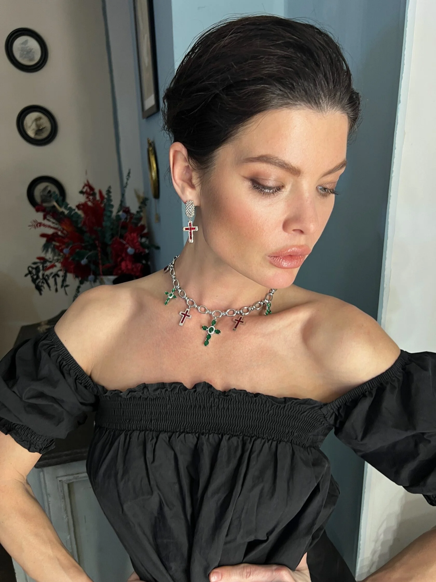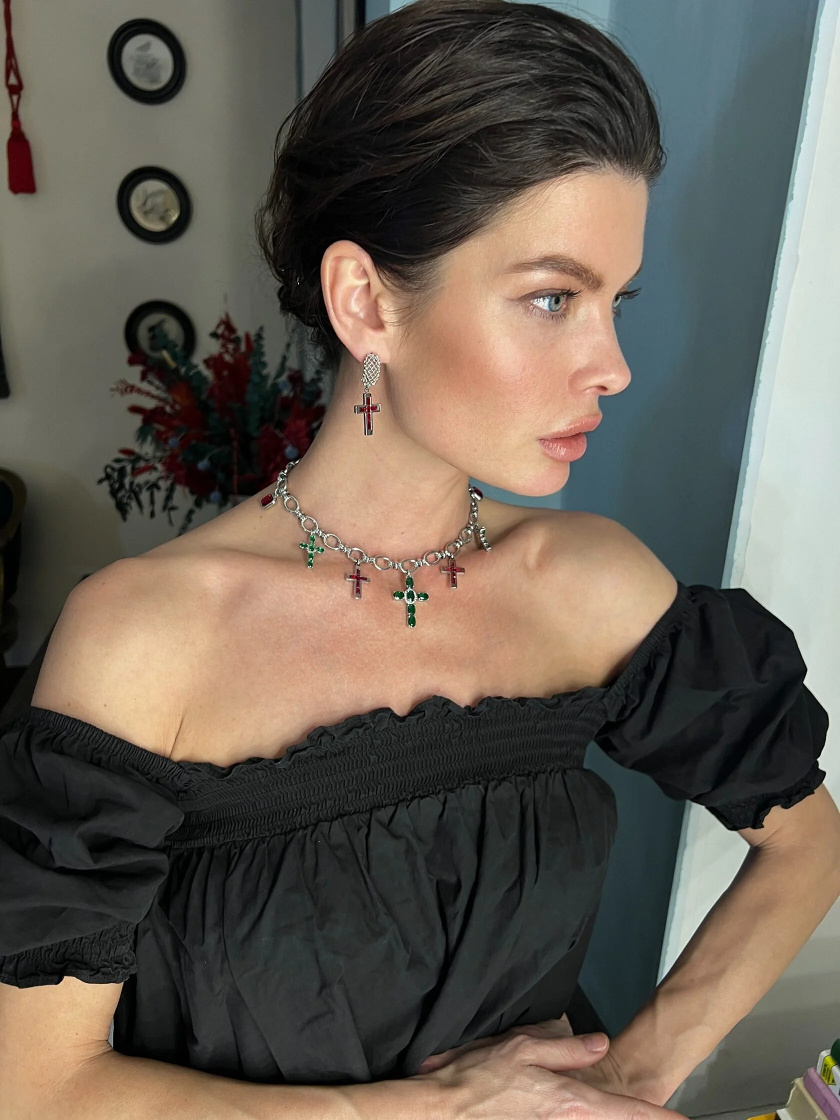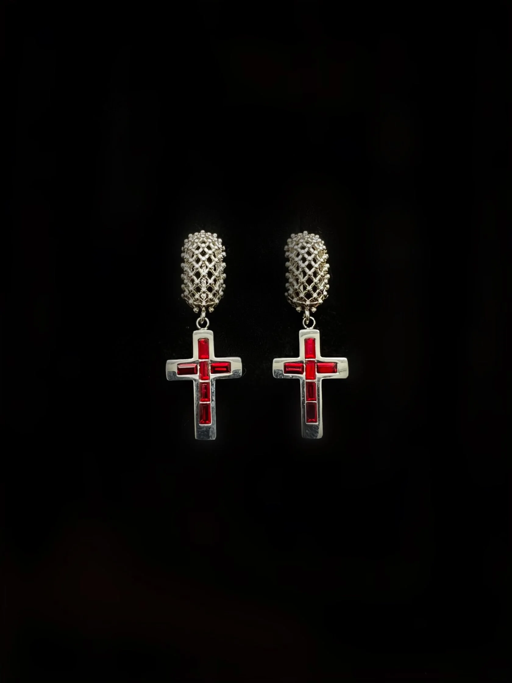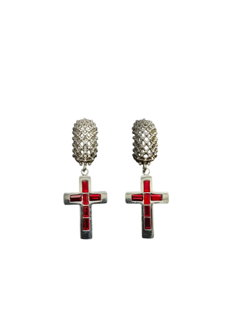 Изящные серьги украшены подвесками декоративных крестов с вставками ювелирного стекла. Английский замок