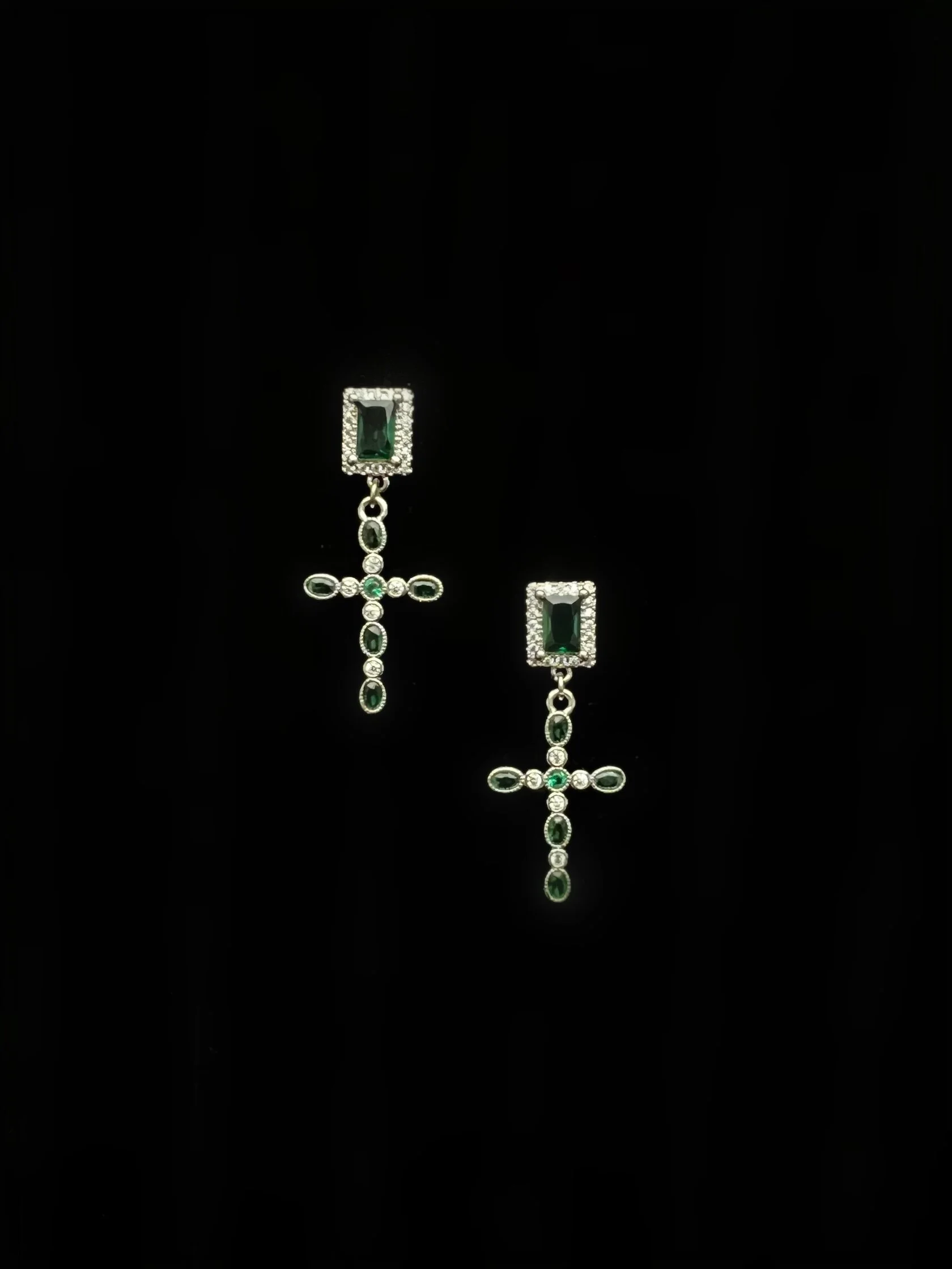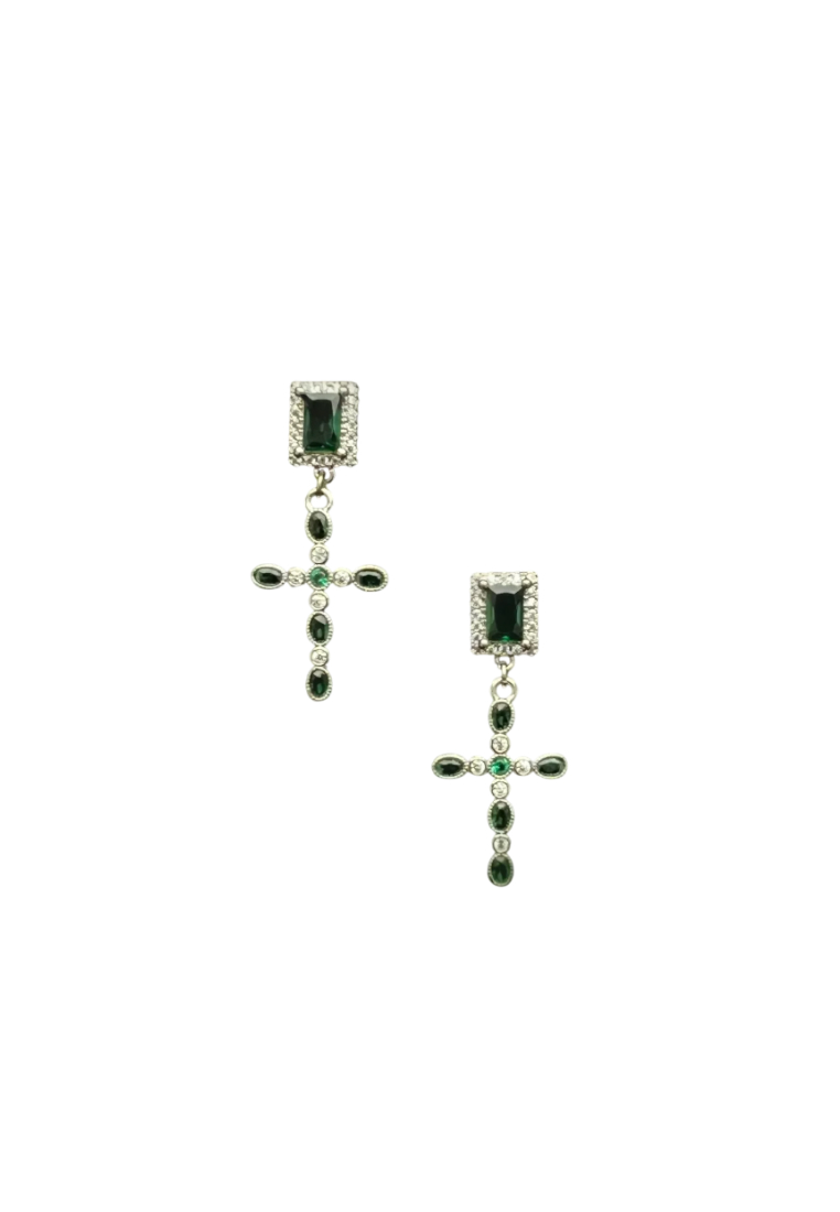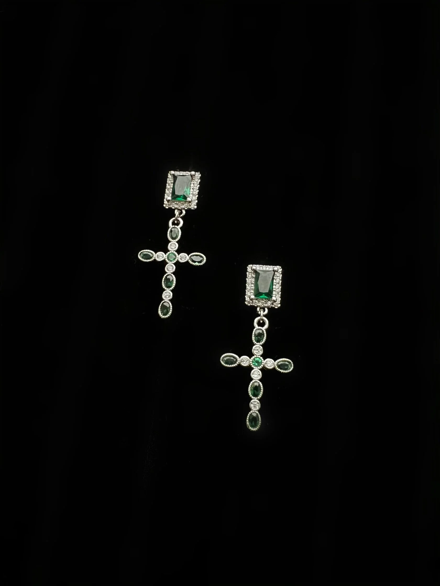Миниатюрные серьги украшены подвесками декоративных крестов с кристаллами “Swarovski».