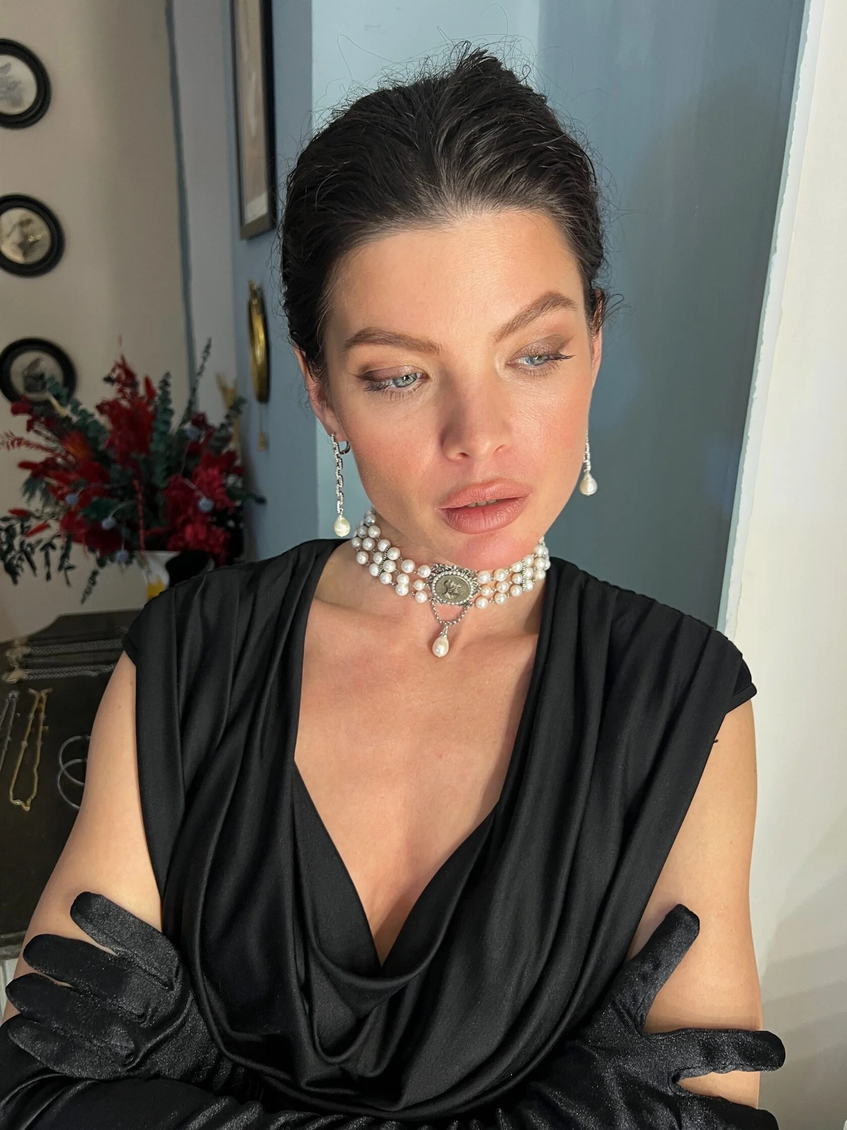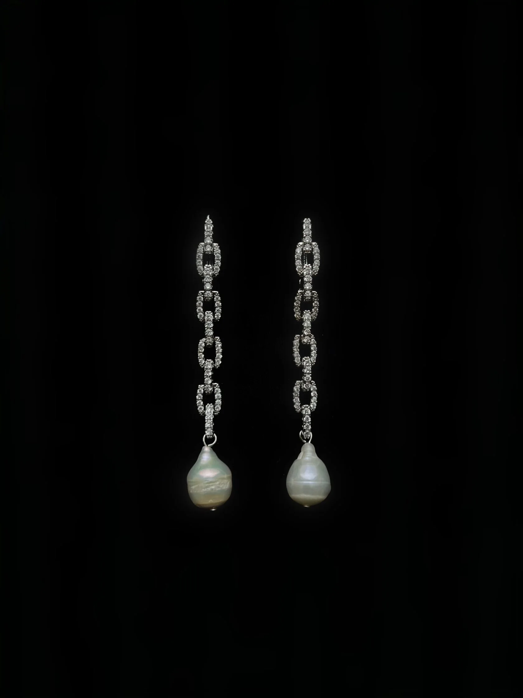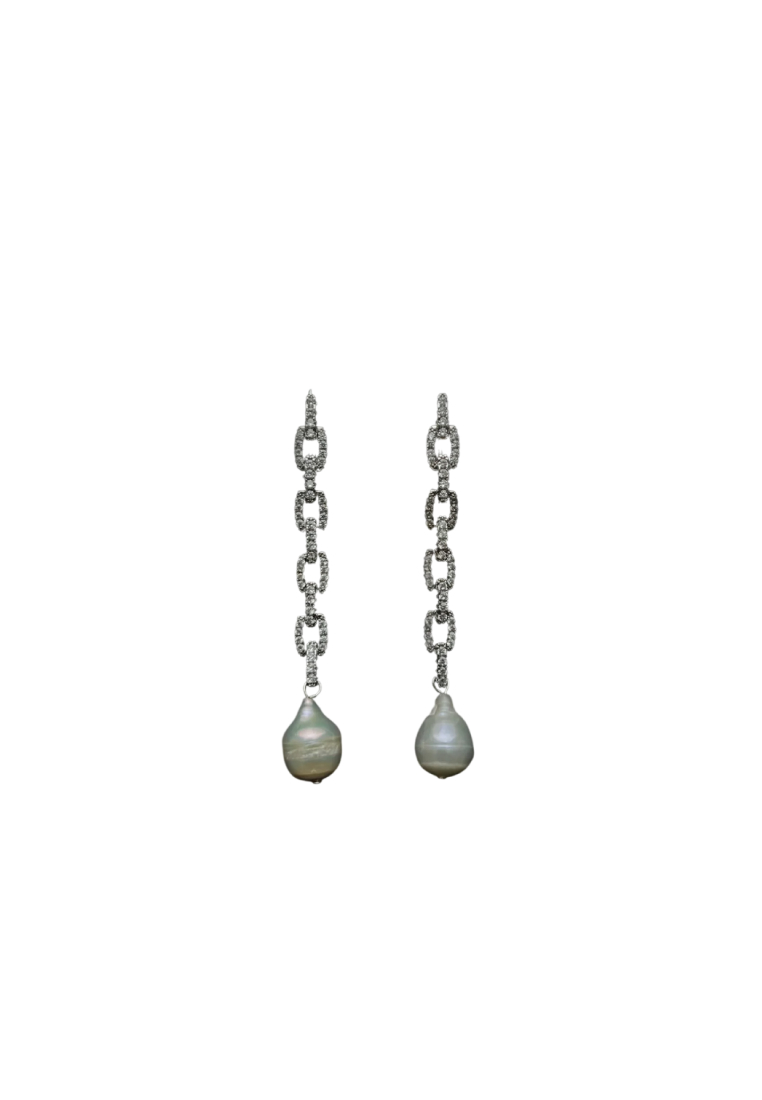 Коктейльные серьги выполнены в стиле ар-деко из инкрустированных цепочек и дополнены подвесками натурального жемчуга. Замок-гвоздики