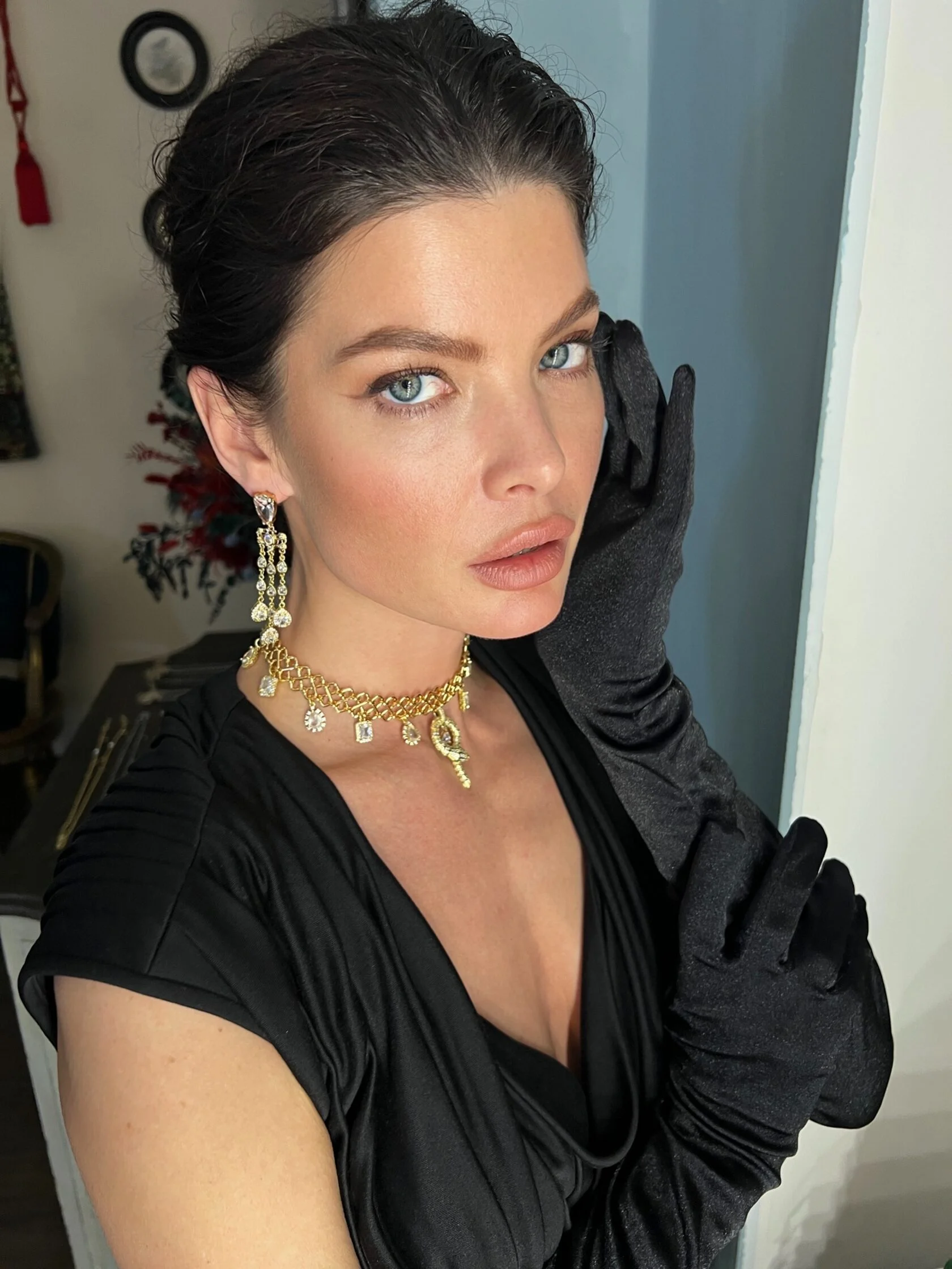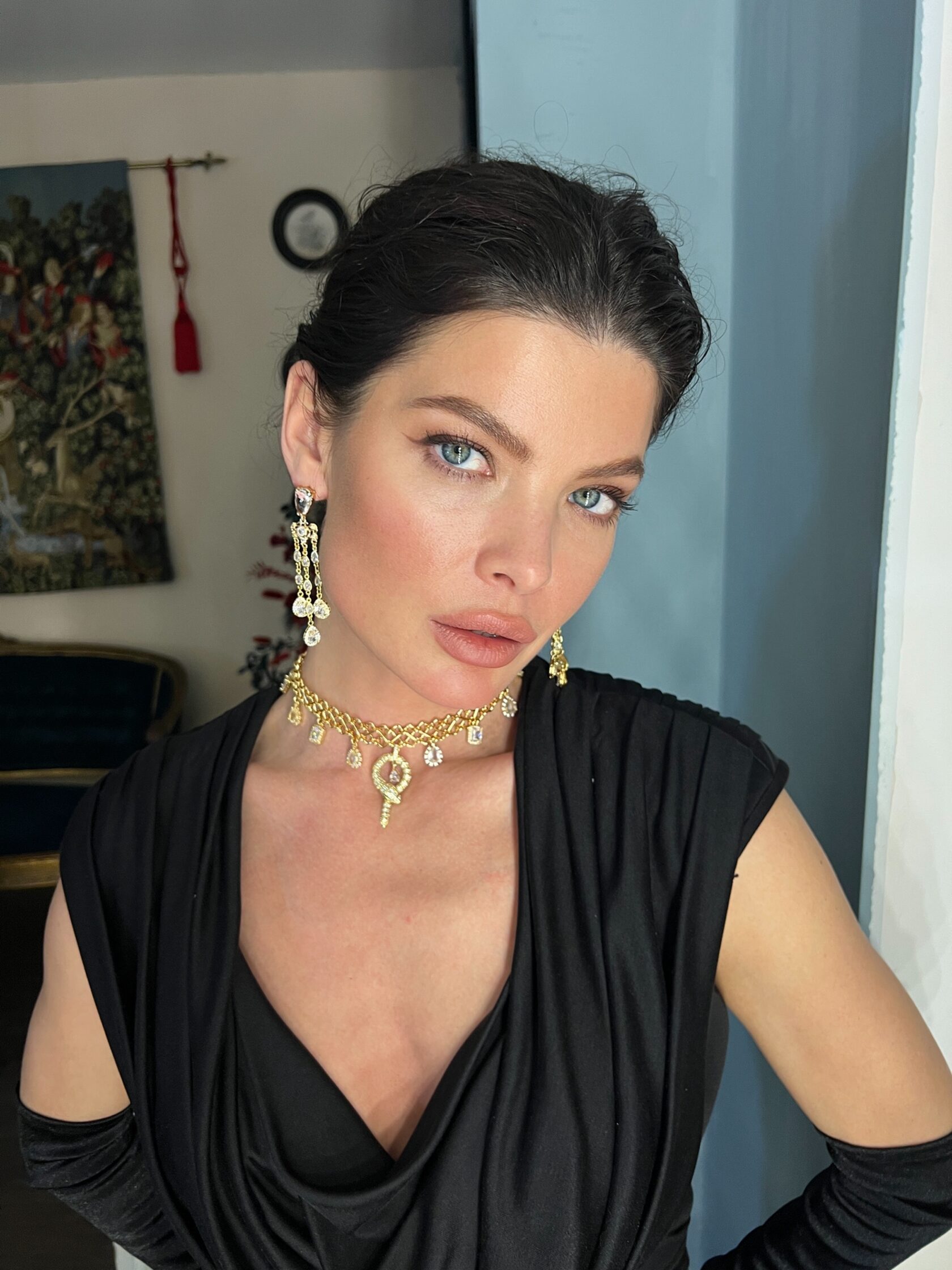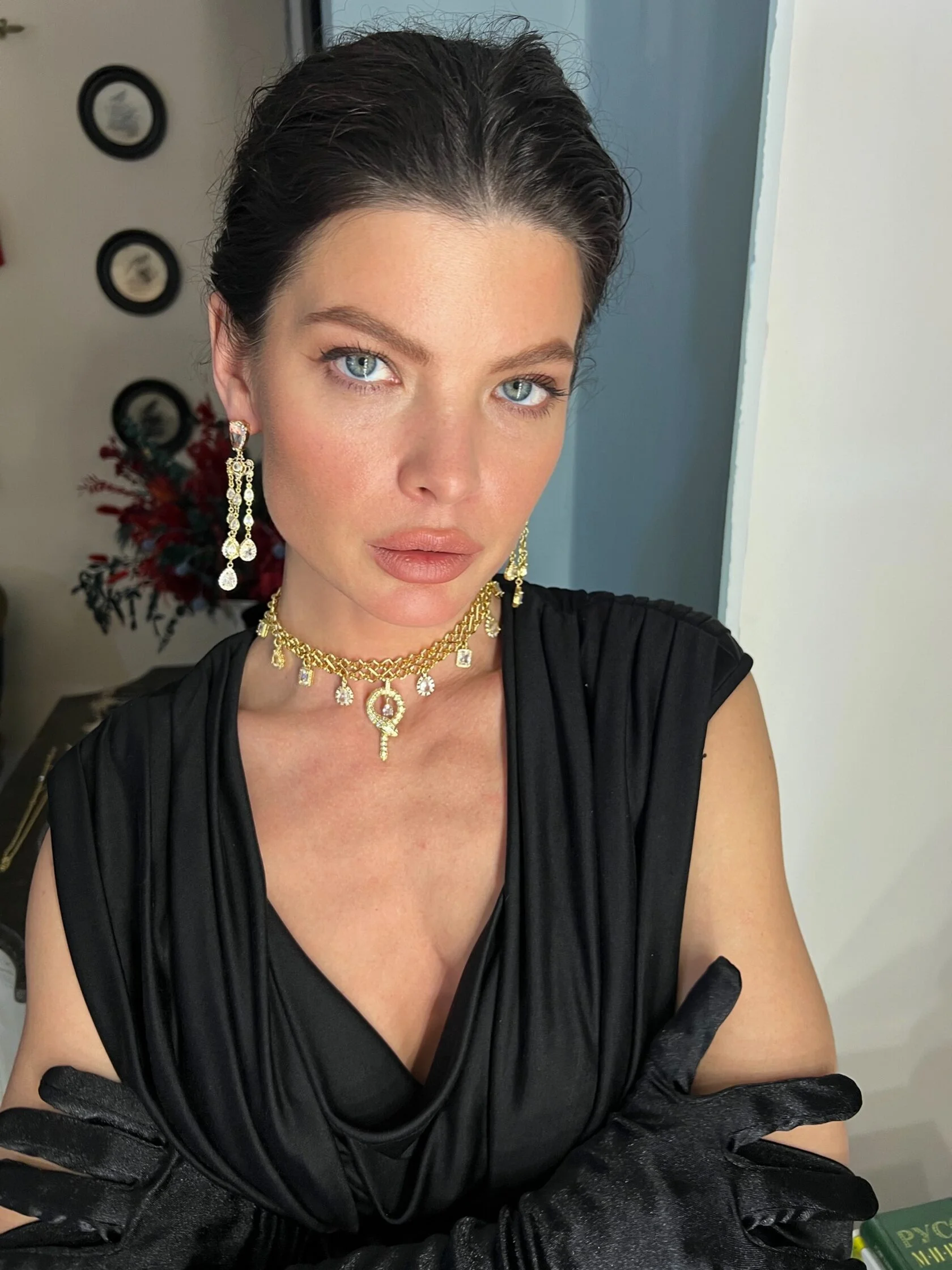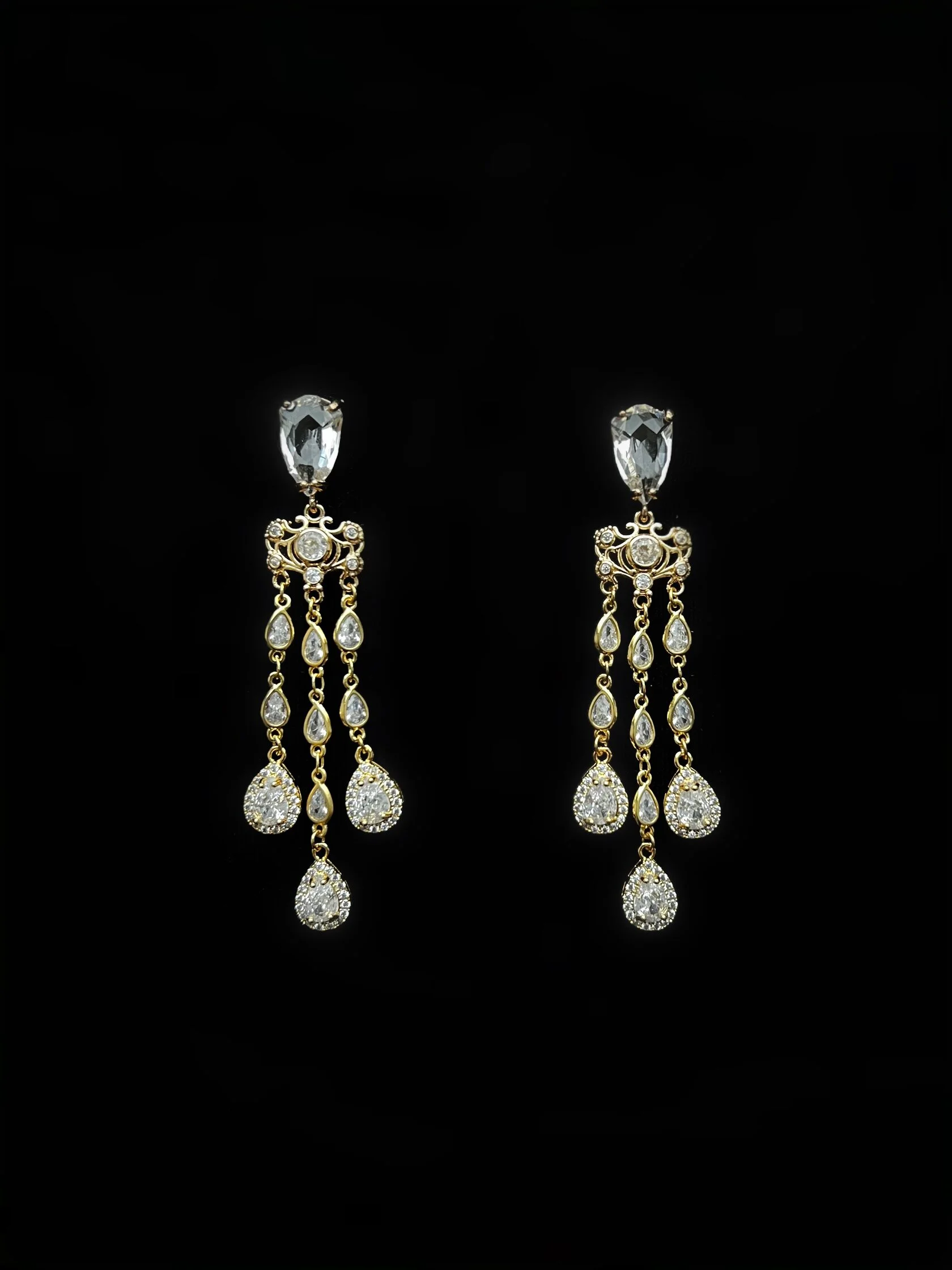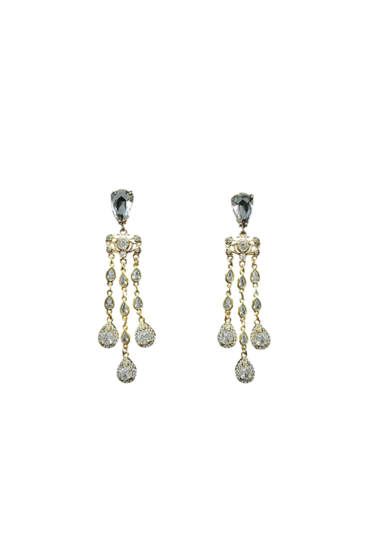 Серьги-жирандоли украшены кристаллами «Swarovski» и кристаллами декоративного стекла. Замки-гвоздики