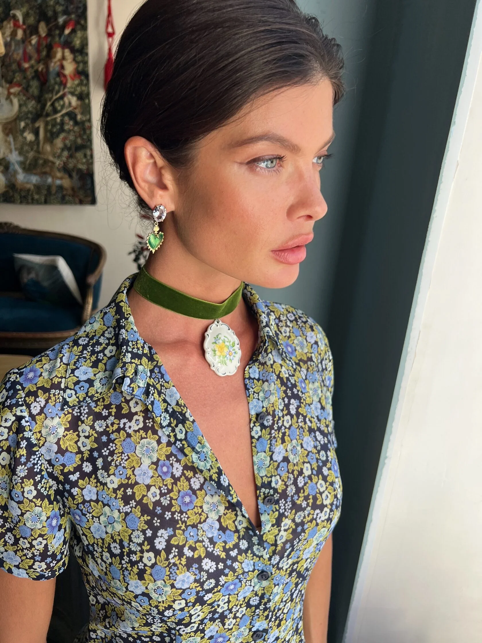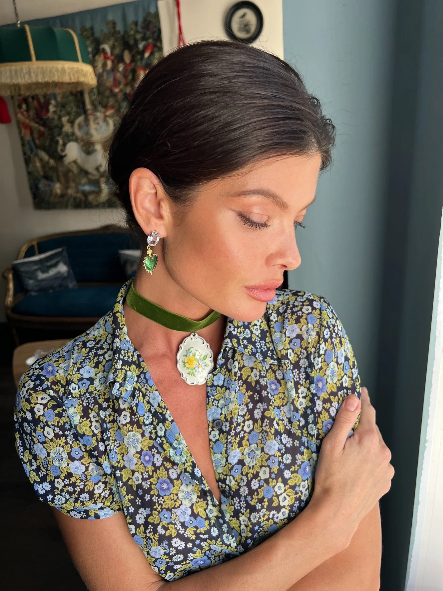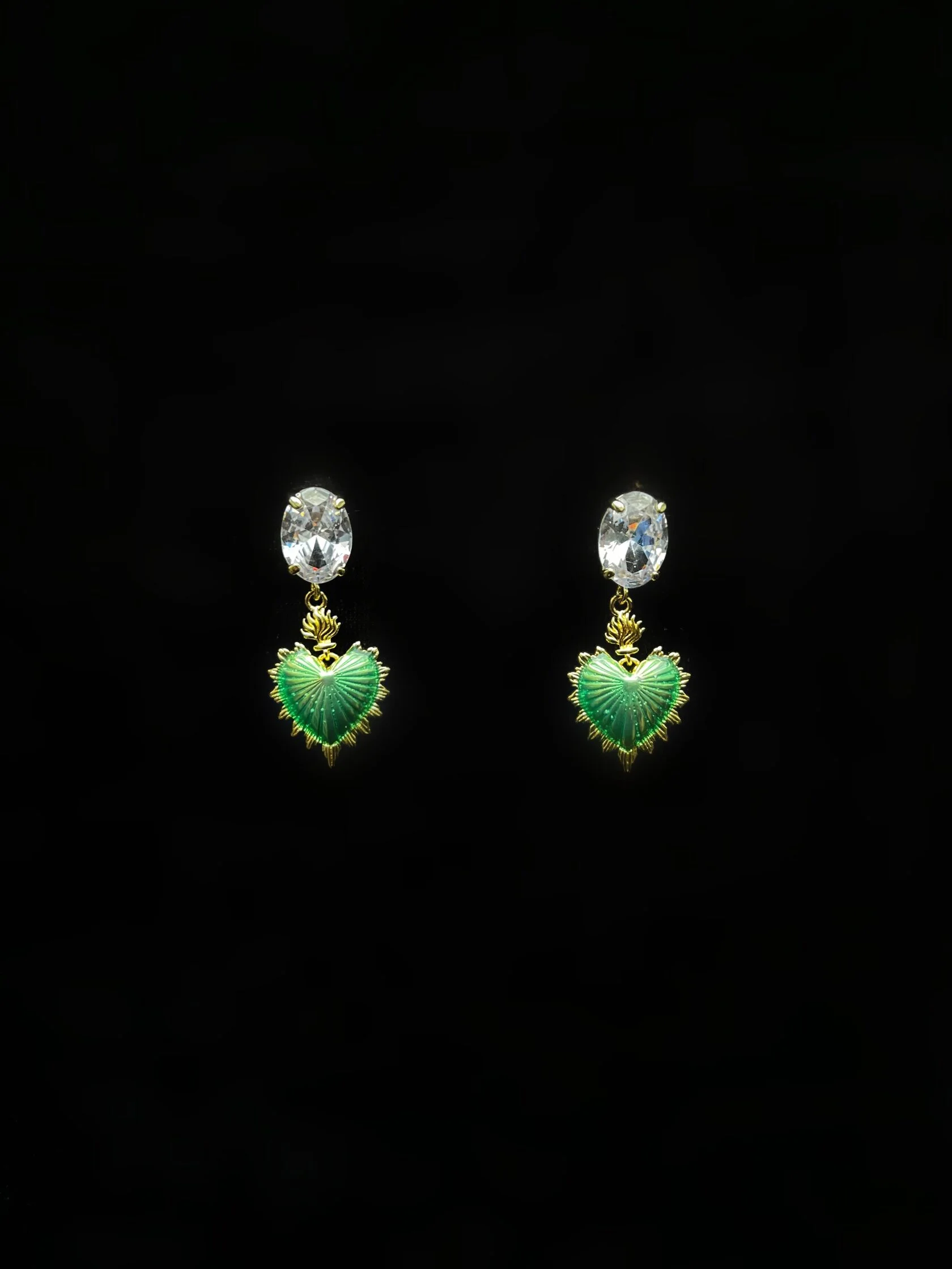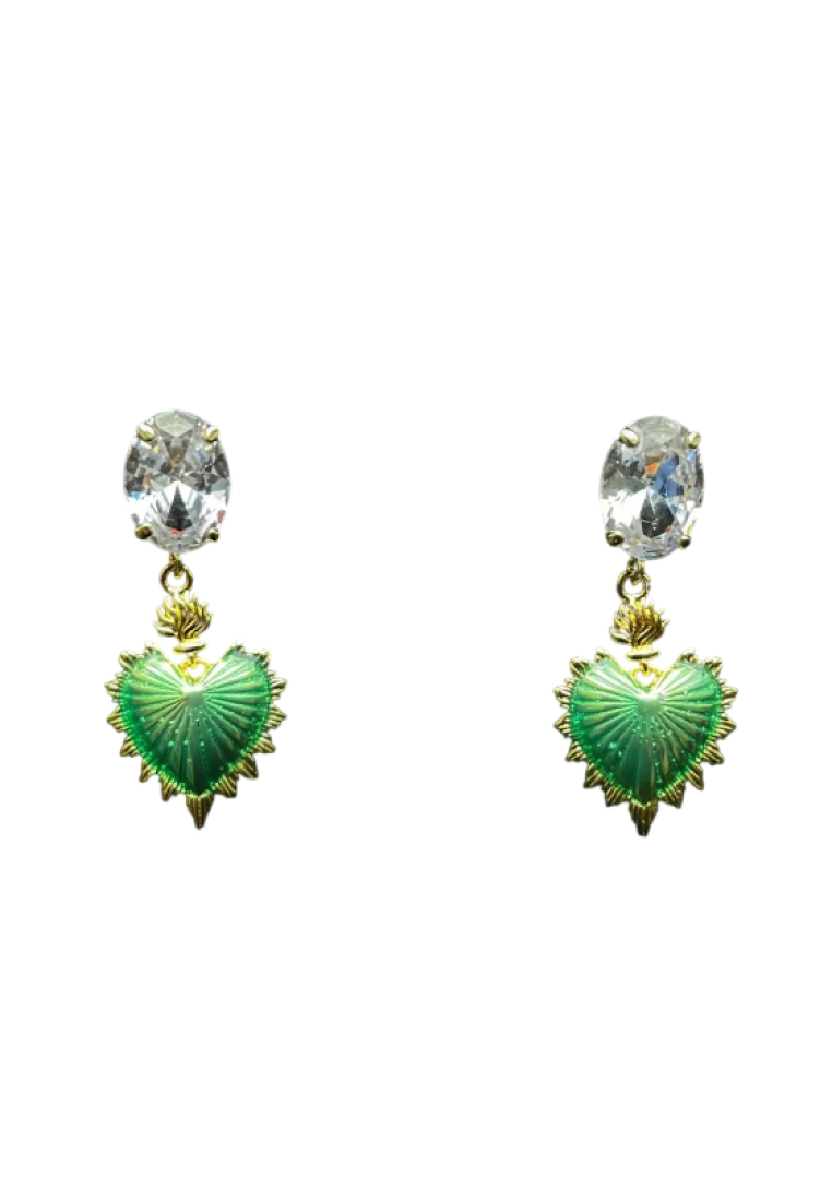 Коктейльные серьги украшены кристаллами «Swarovski» и декоративными подвесками в виде сердец с цветной эмалью.