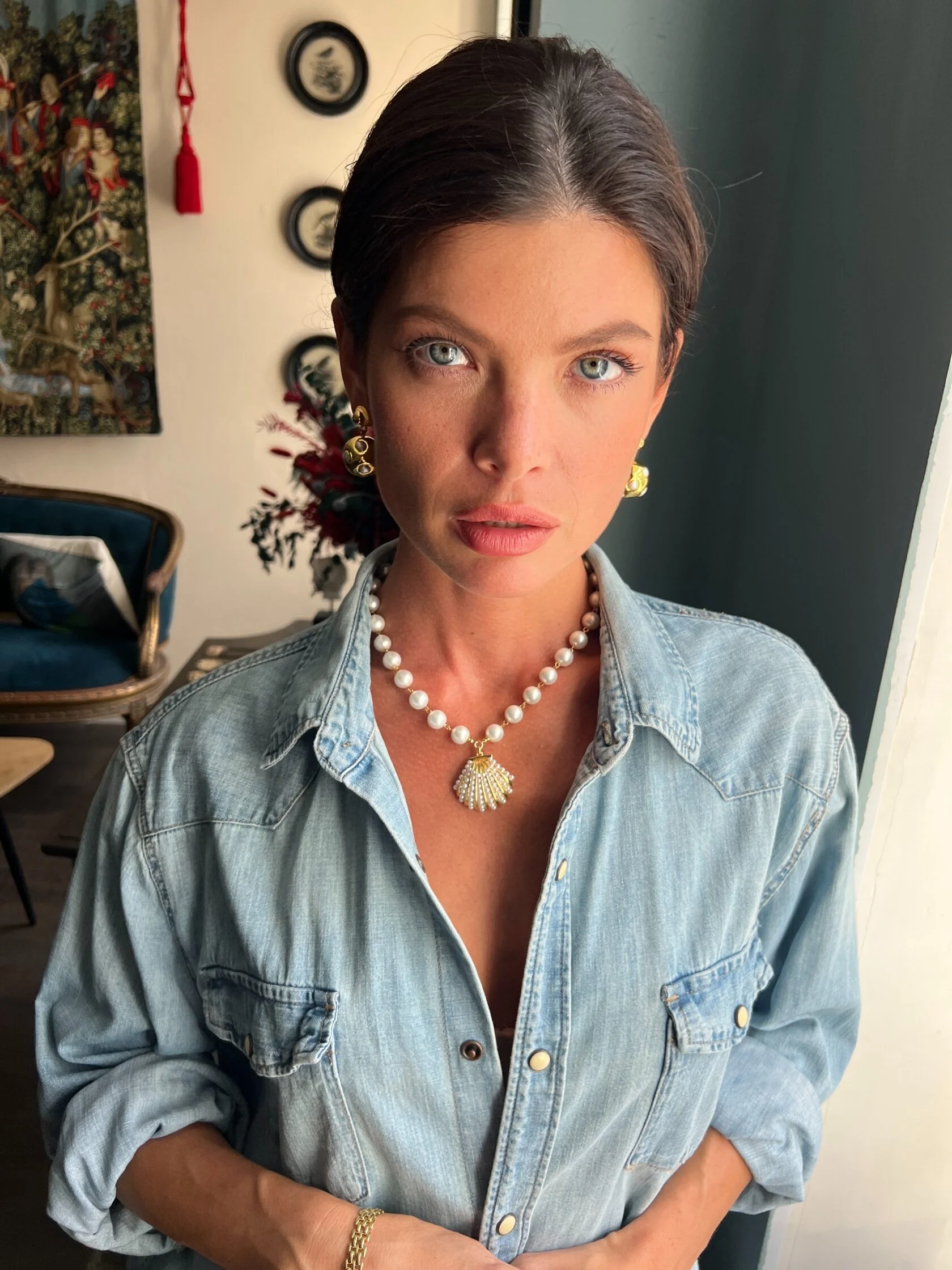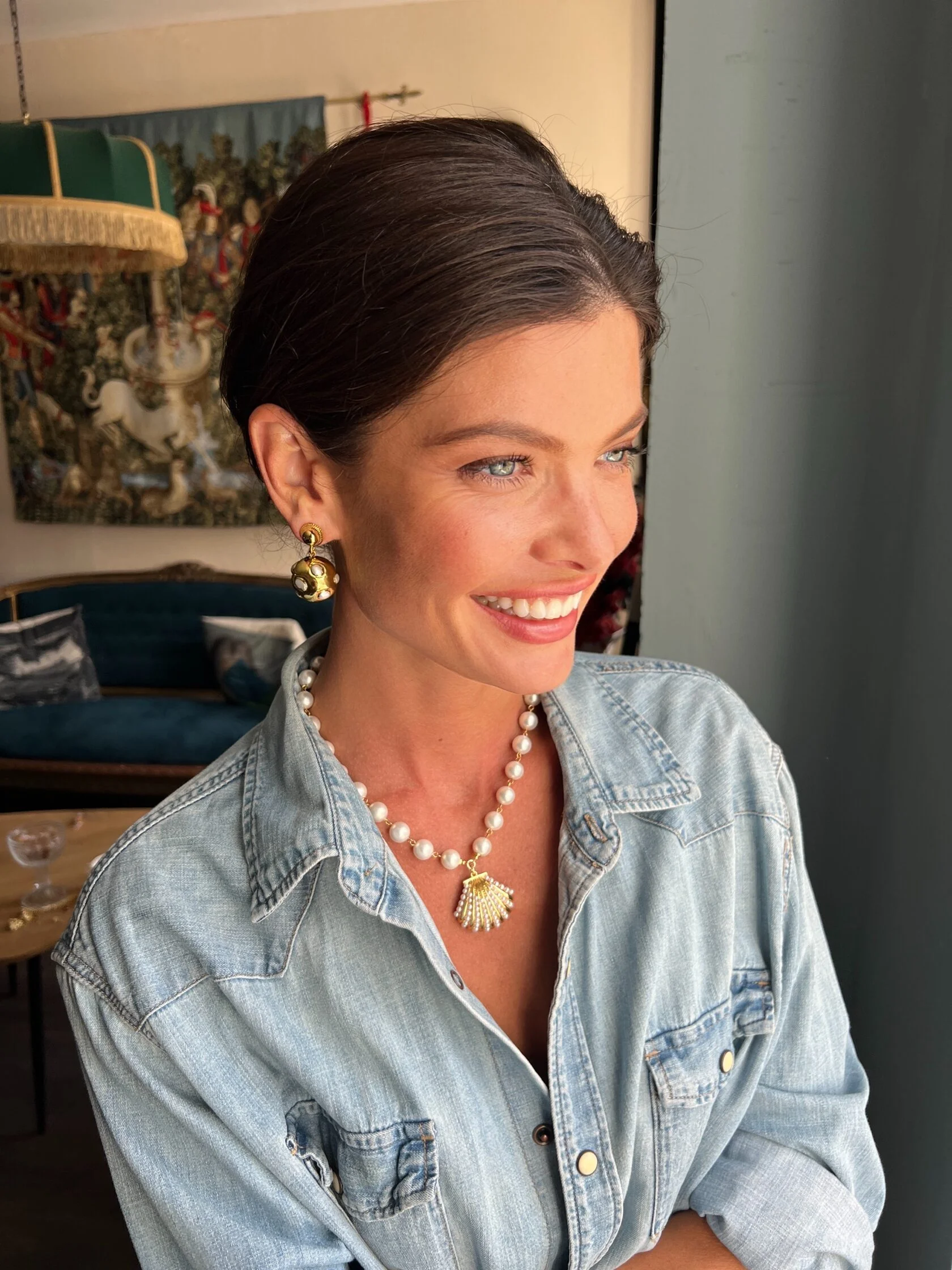 Минималистичные серьги дополнены подвесками сферами со вставками искусственного жемчуга