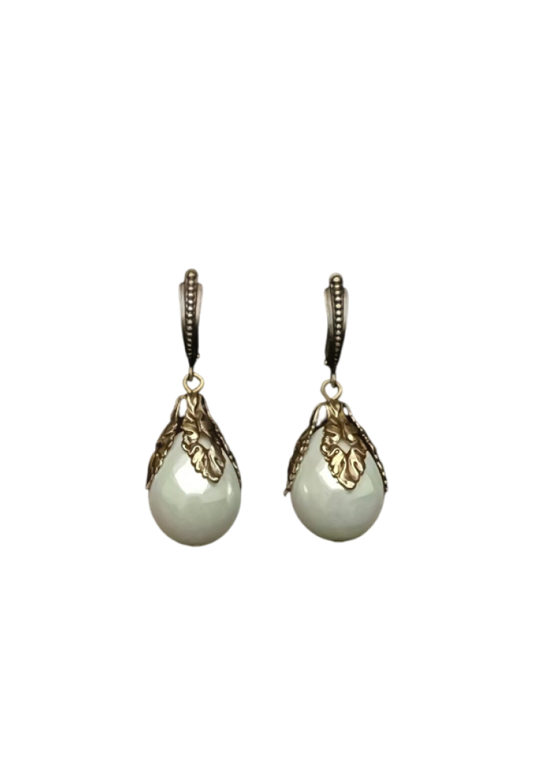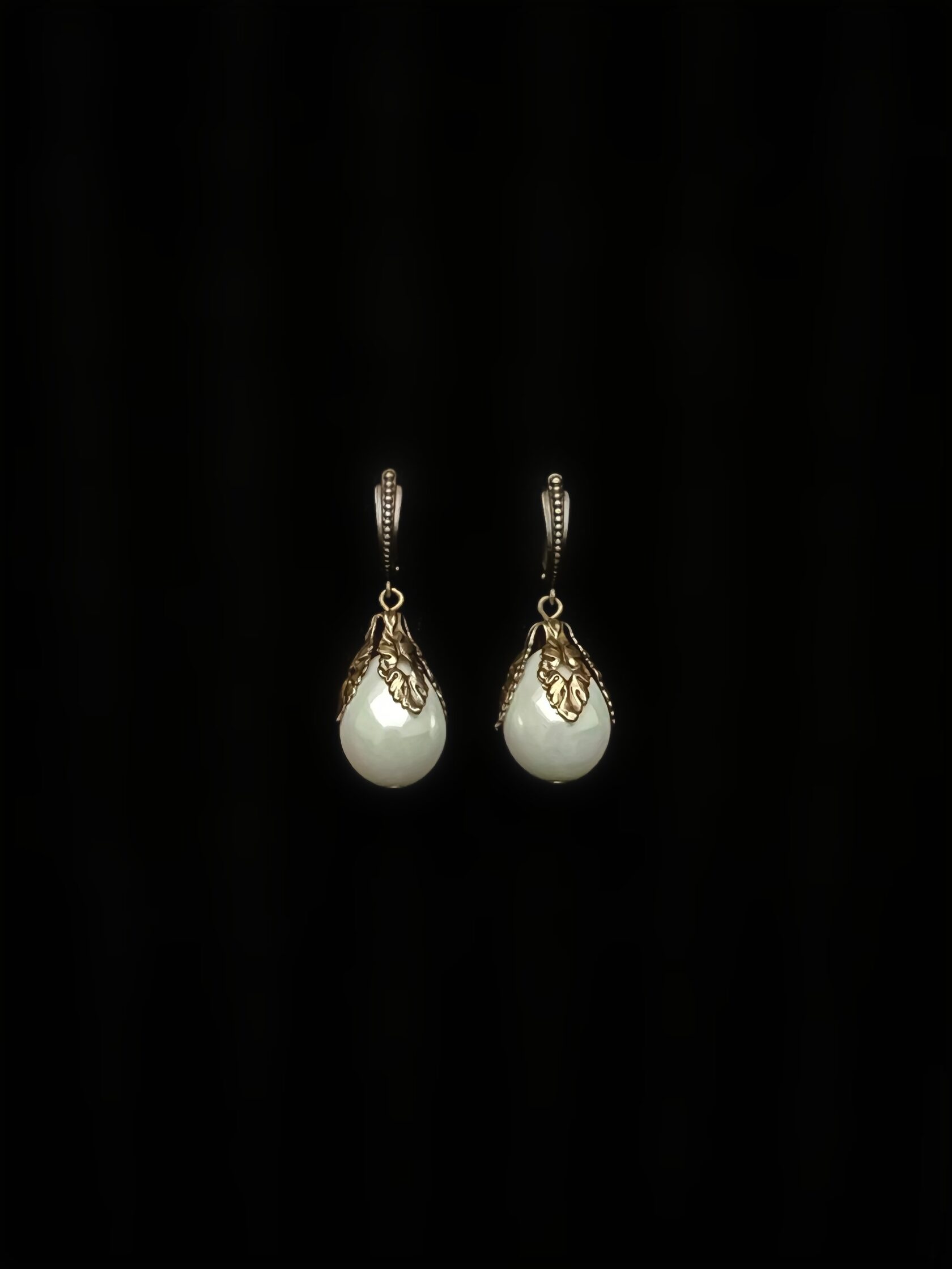 Классические серьги с ажурной застежкой украшены подвесками-каплями майорики. Английский замок