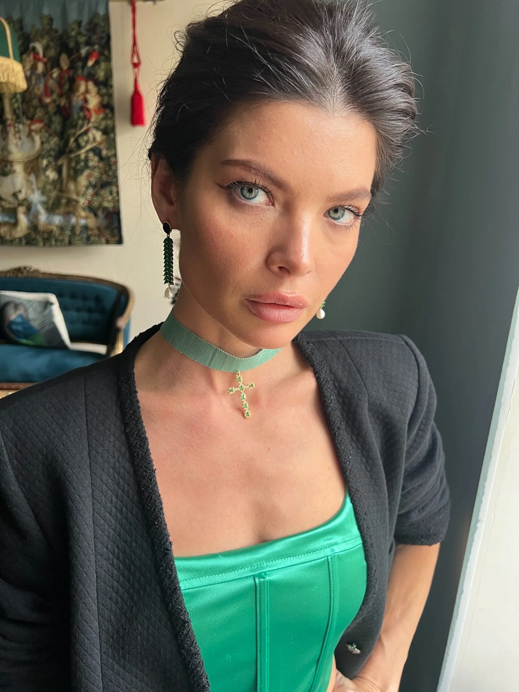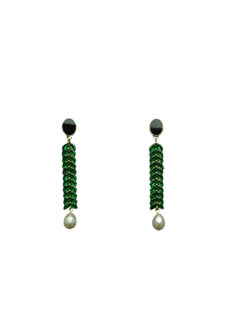 Коктейльные серьги украшены подвесками в виде колосьев с цветными кристаллами и дополнены каплями натурального жемчуга