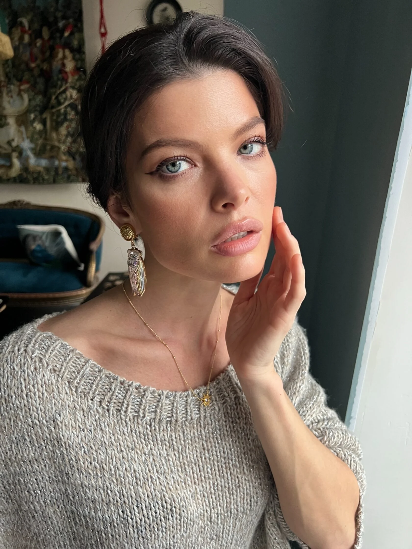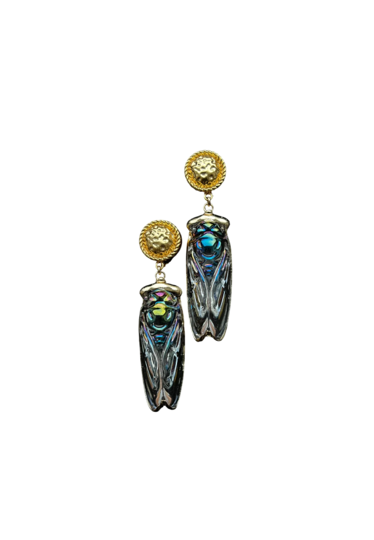 Роскошные серьги-клипсы в форме цикад, выполненные из литого стекла с позолотой.