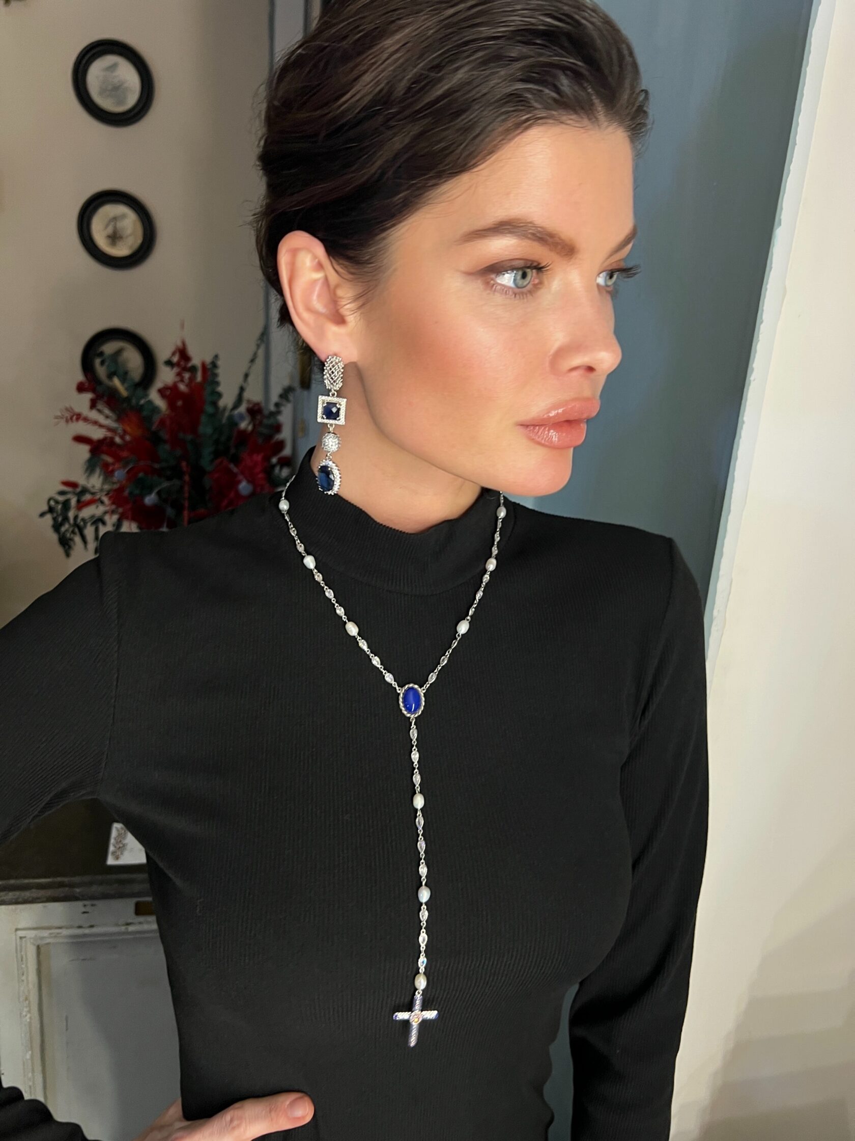 Коктейльные серьги украшены декоративными вставками ювелирного стекла и кристаллов «Swarovski». Английский замок