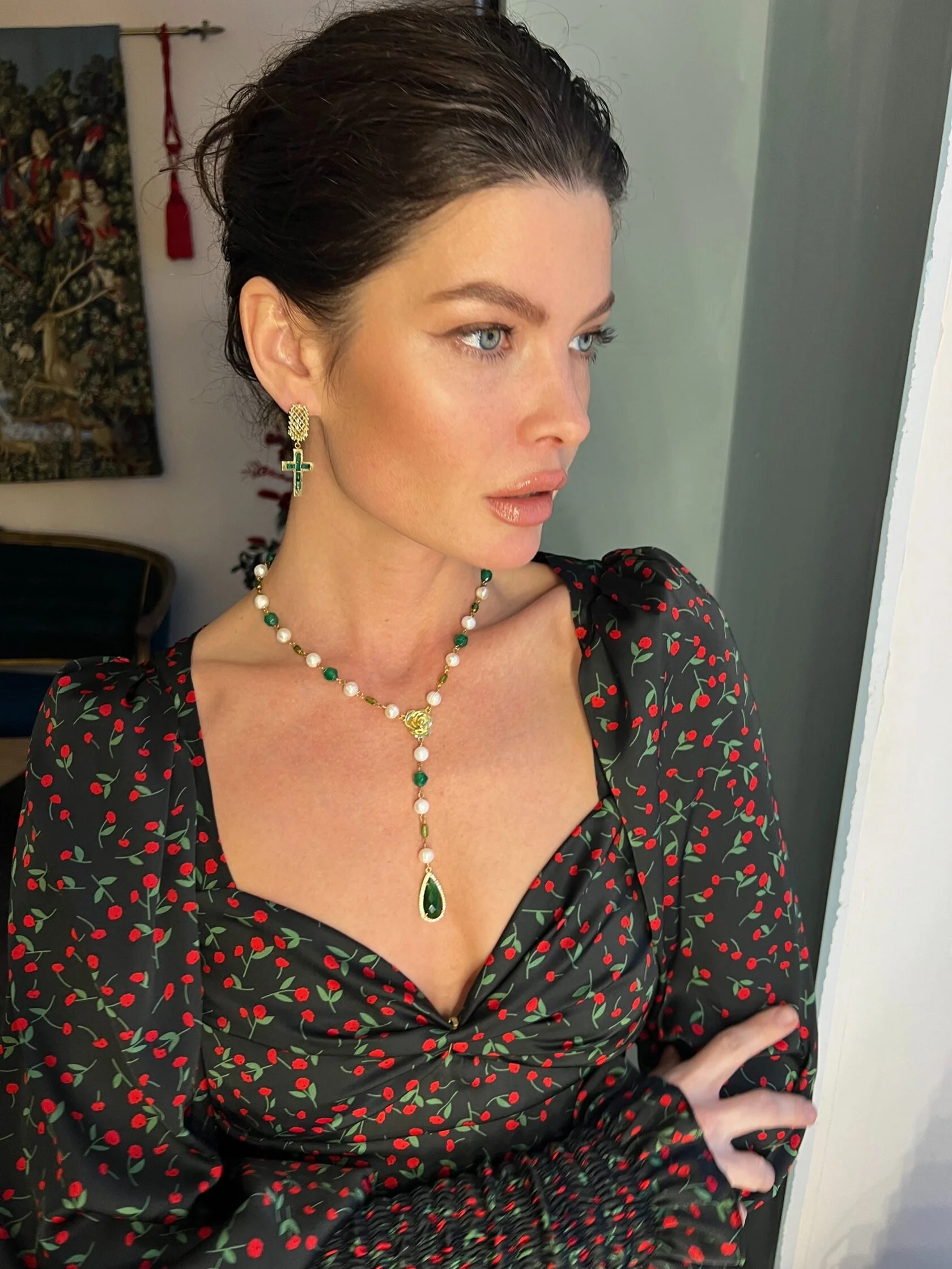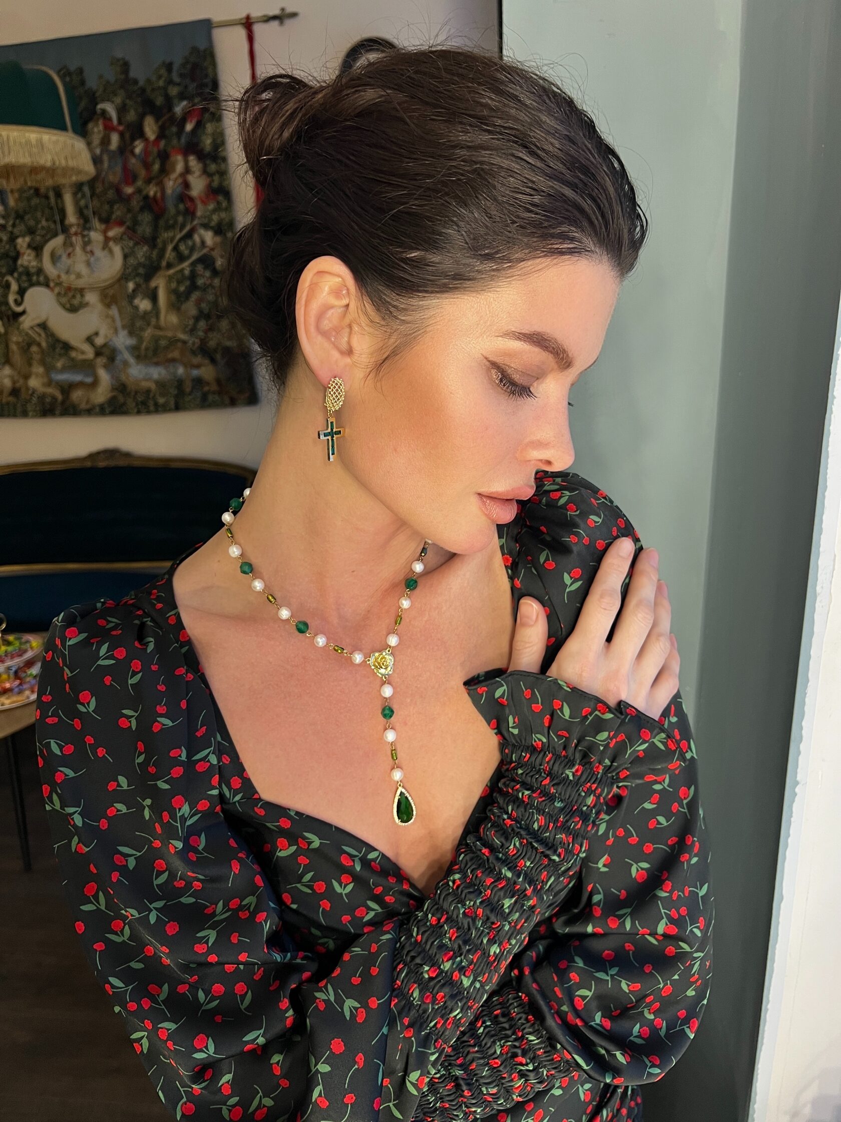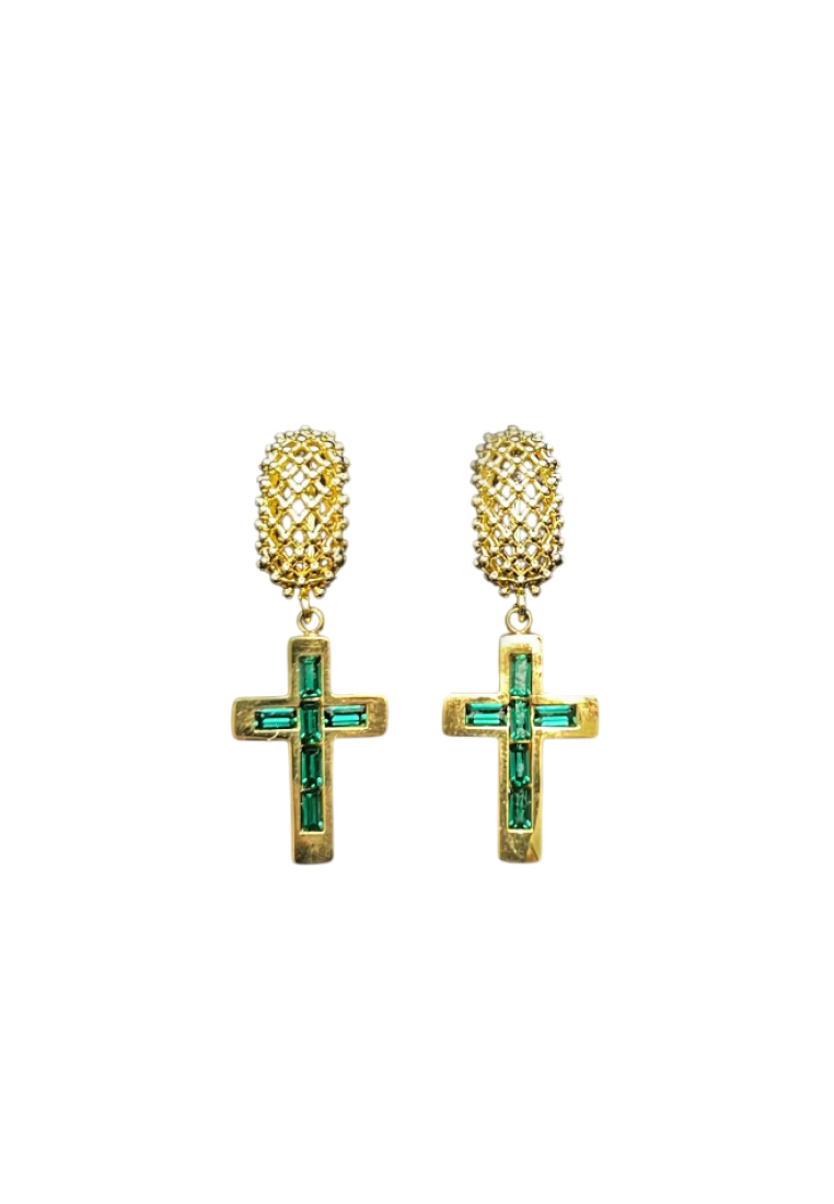 Изящные серьги украшены подвесками декоративных крестов с вставками ювелирного стекла. Английский замок