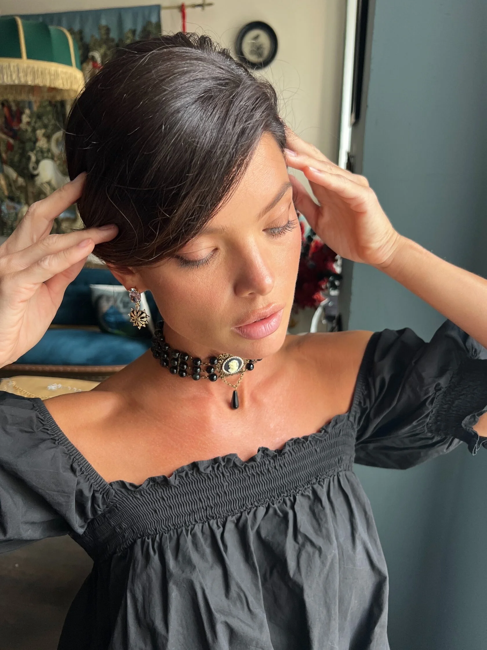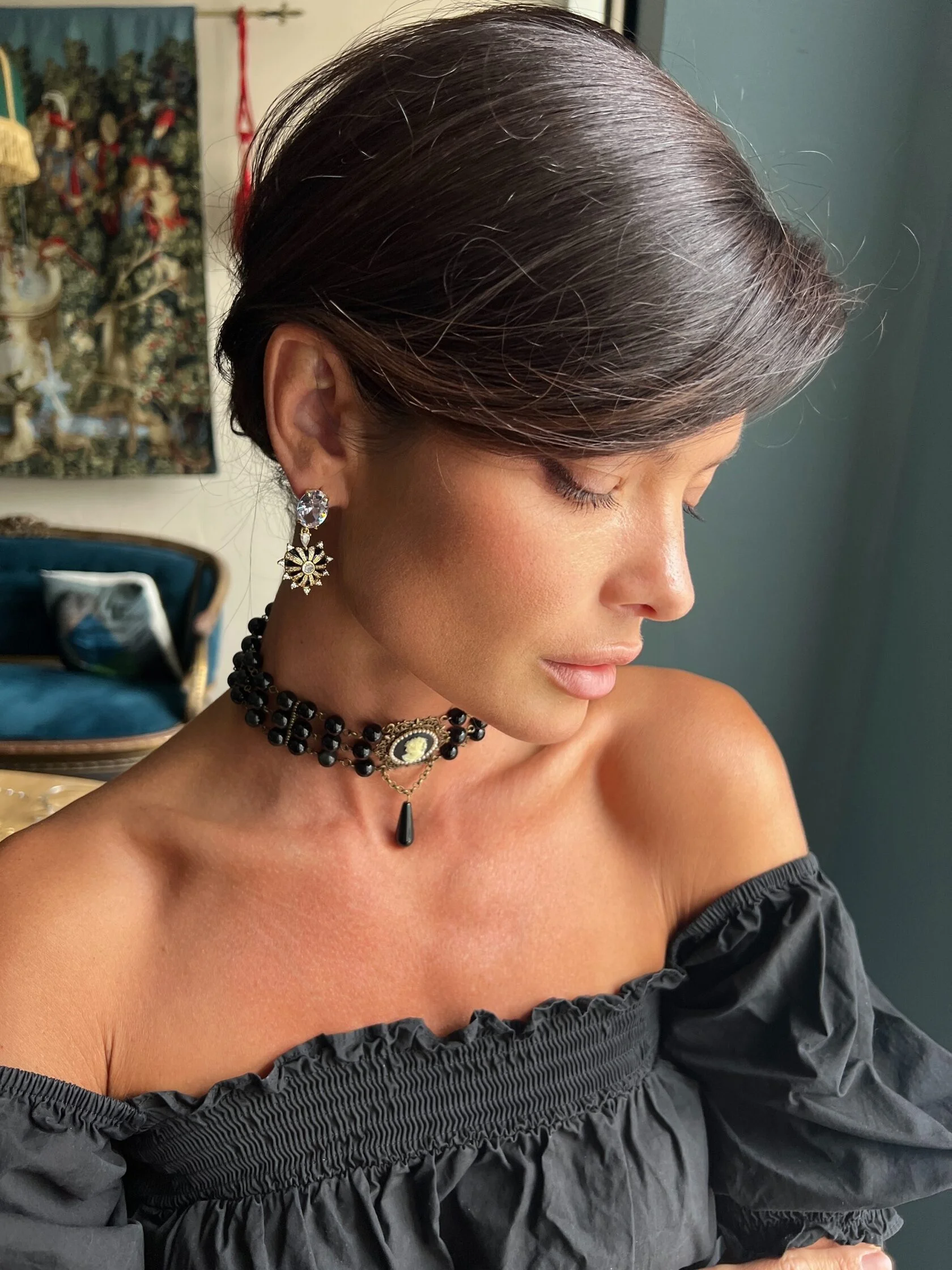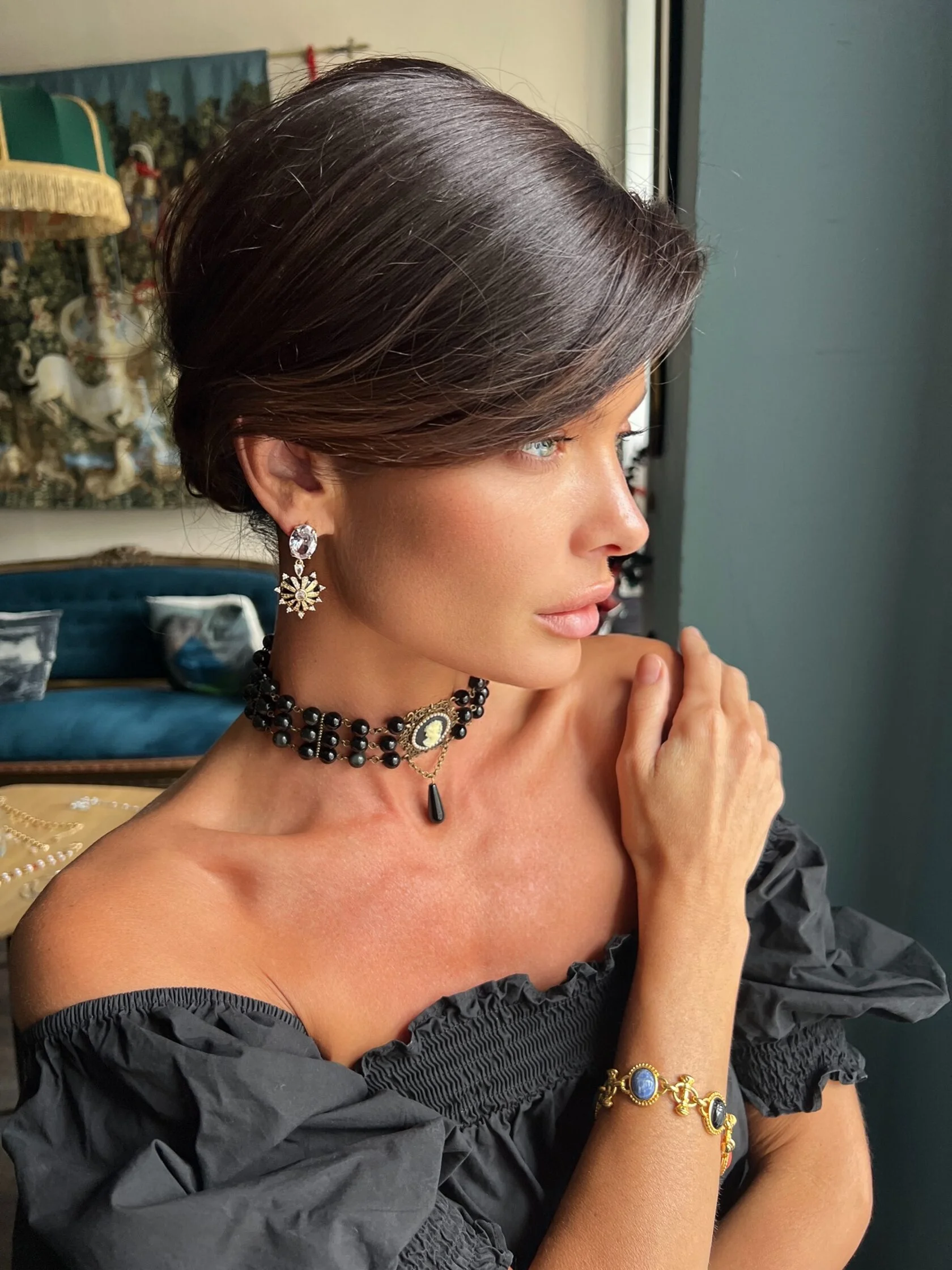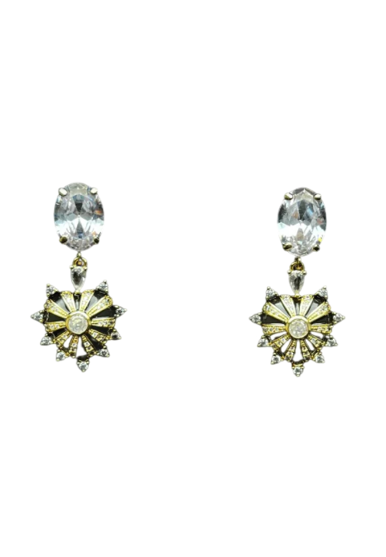 Коктейльные серьги украшены кристаллами «Swarovski» и декоративными подвесками в виде сердец с цветной эмалью.