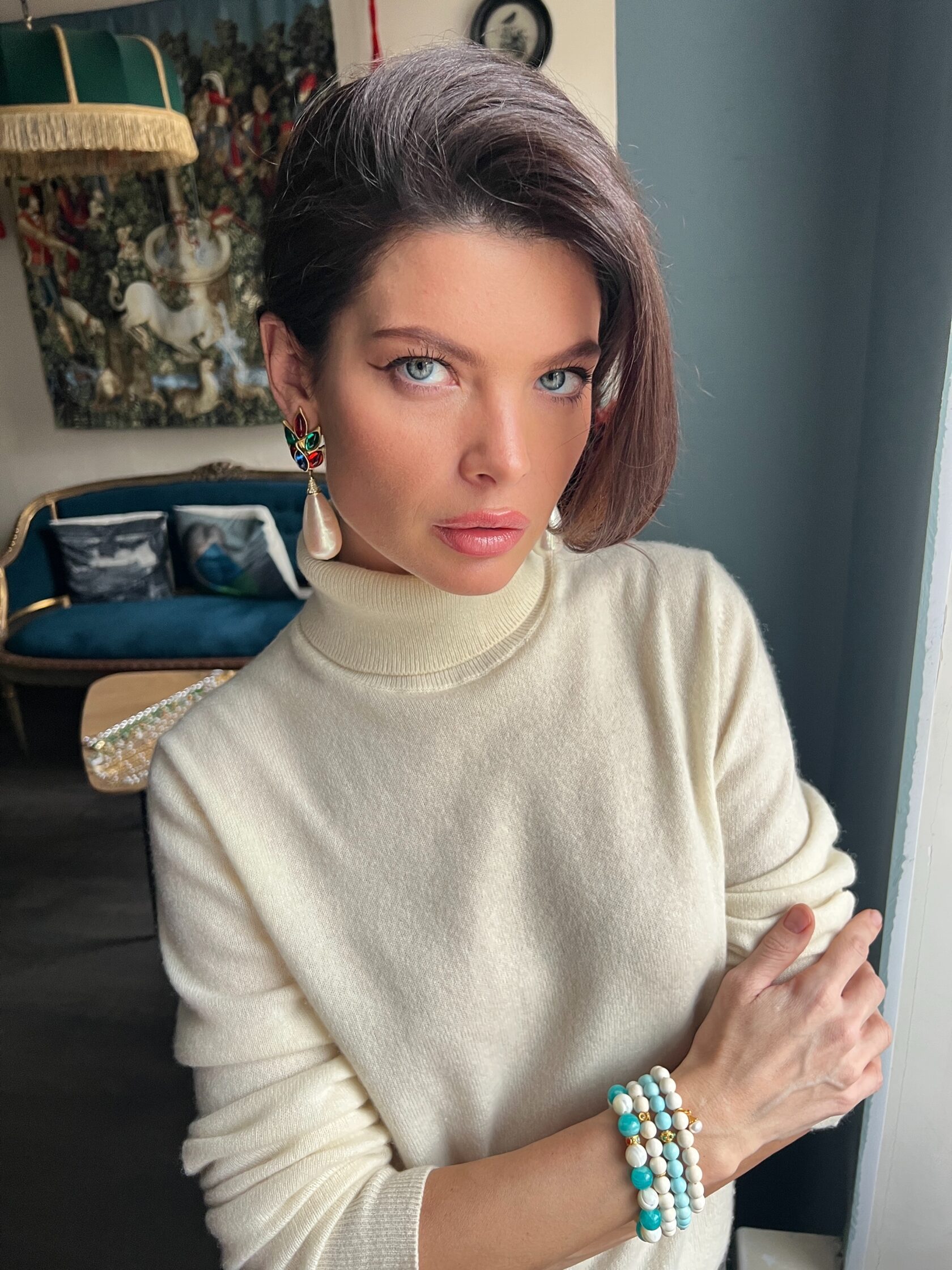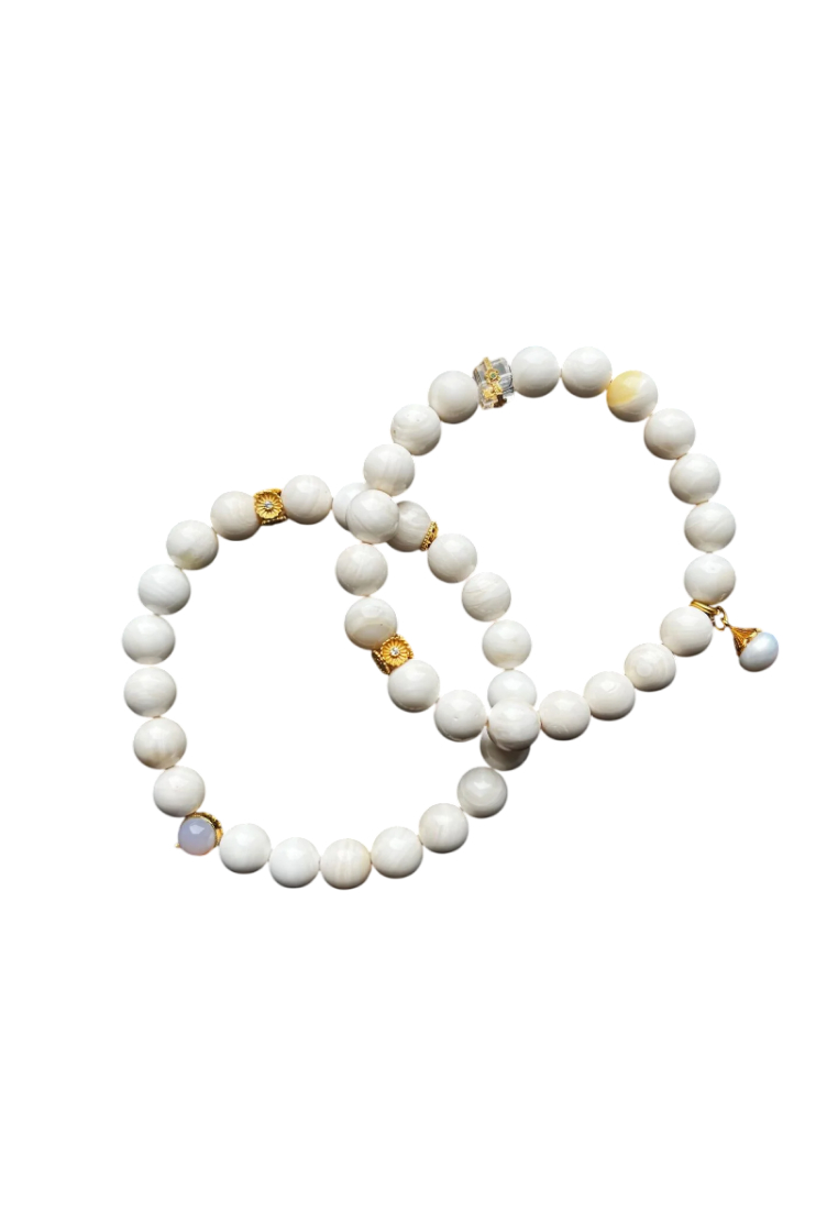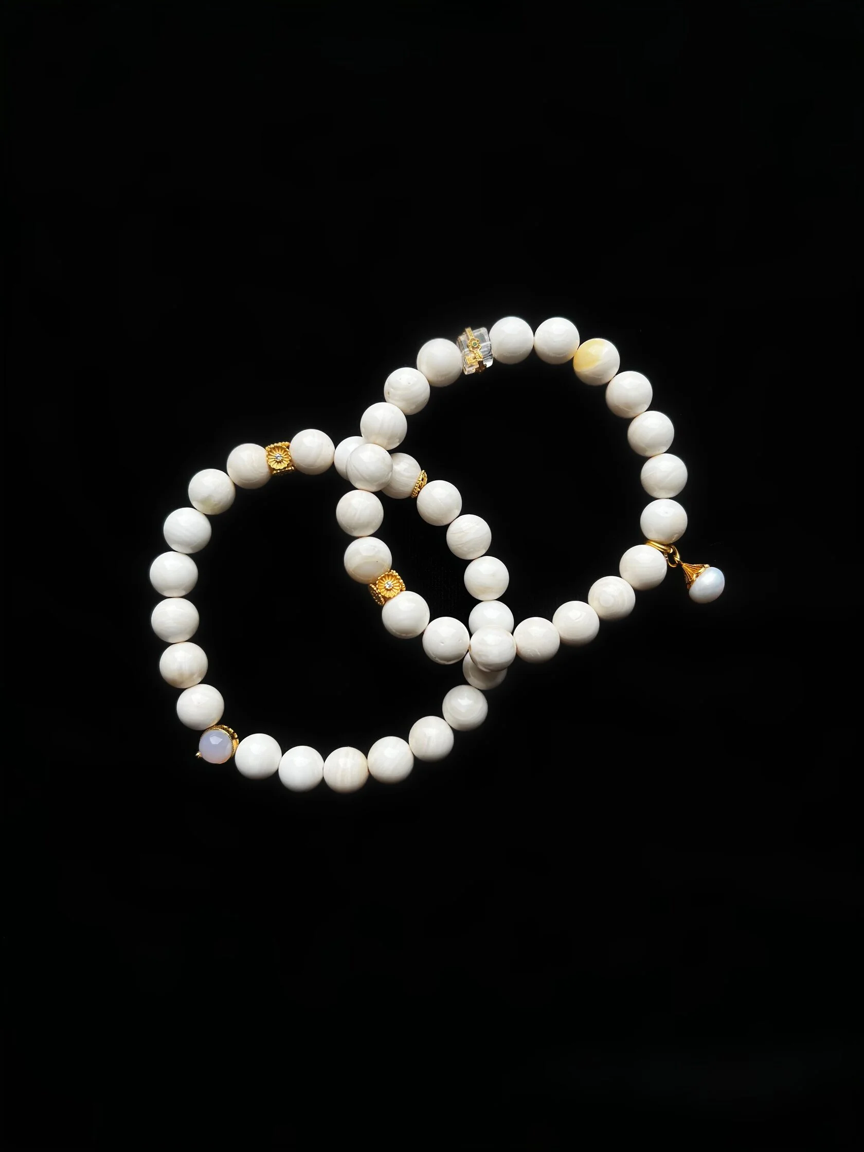 Браслет собран из бусин натурального некрашеного коралла и украшен декоративными вставками (серебро 925, позолота).