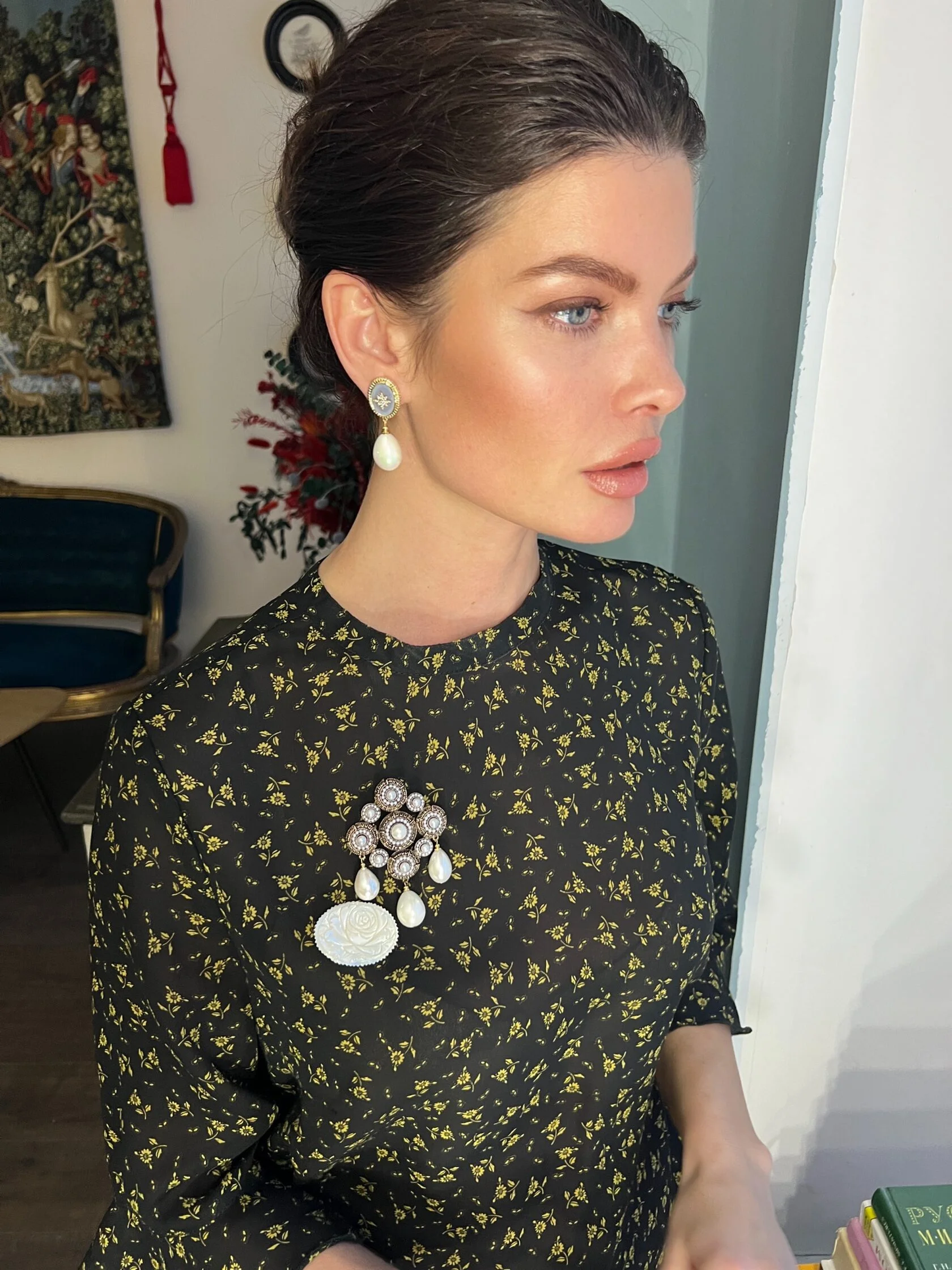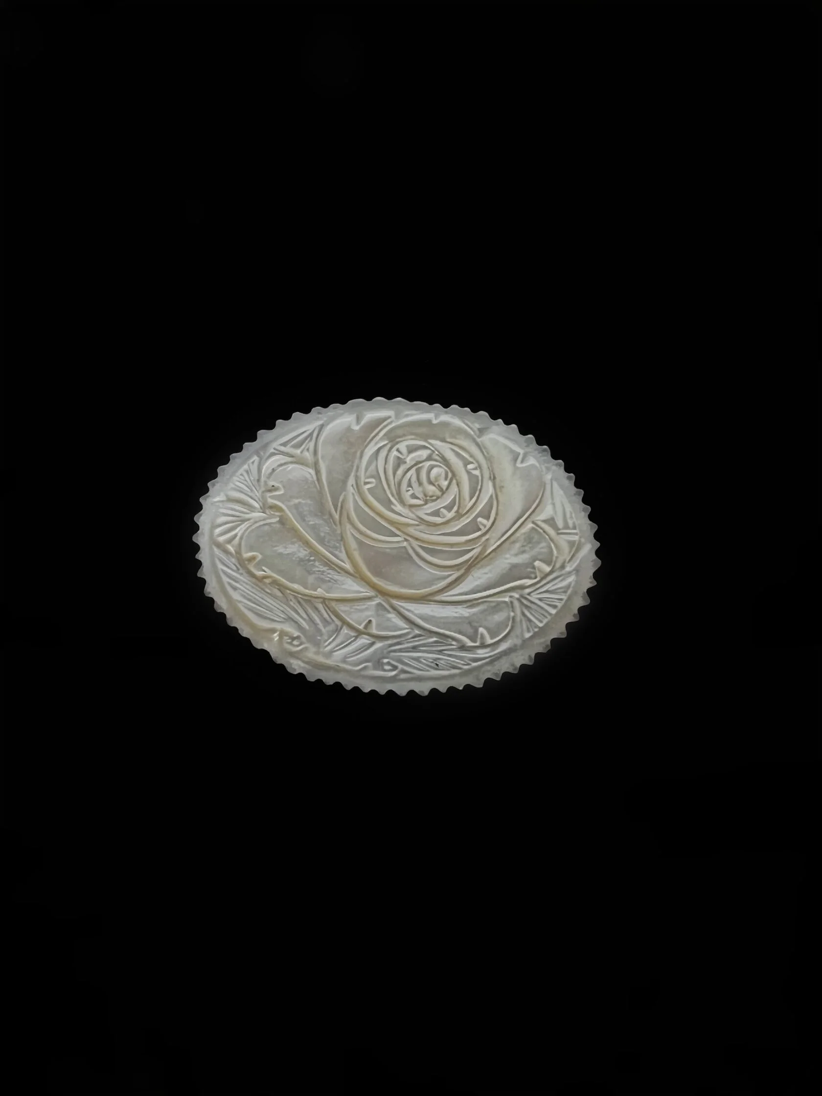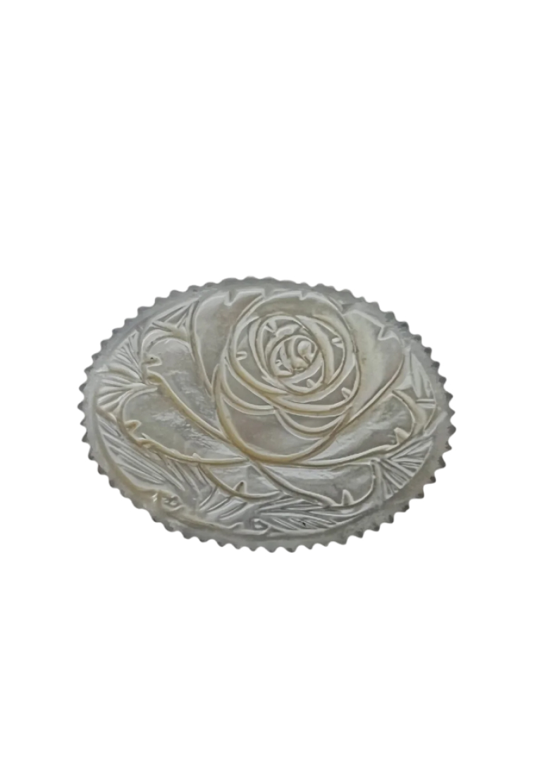 Миниатюрная винтажная брошь из раковины перламутра с ручной резьбой.
