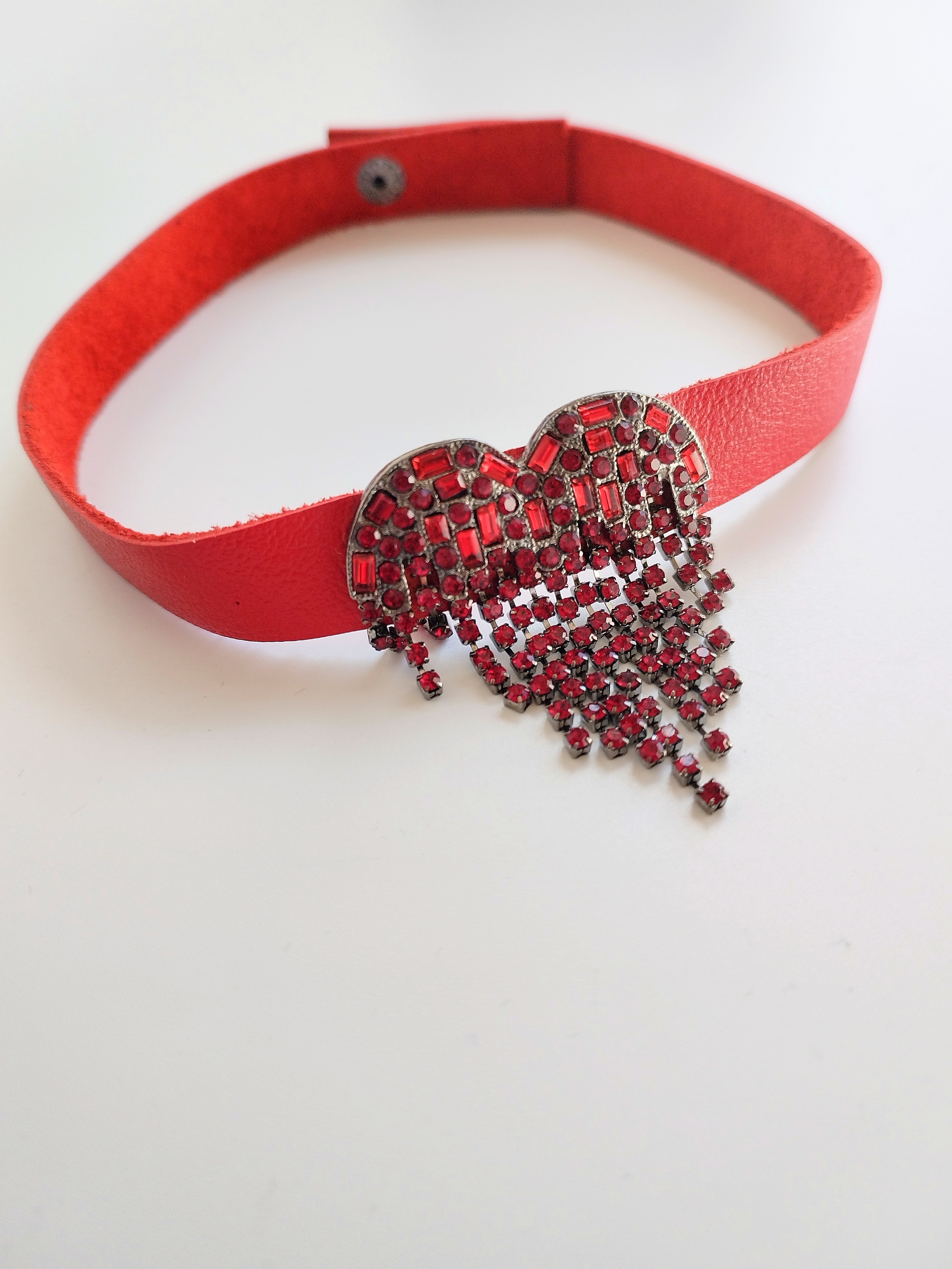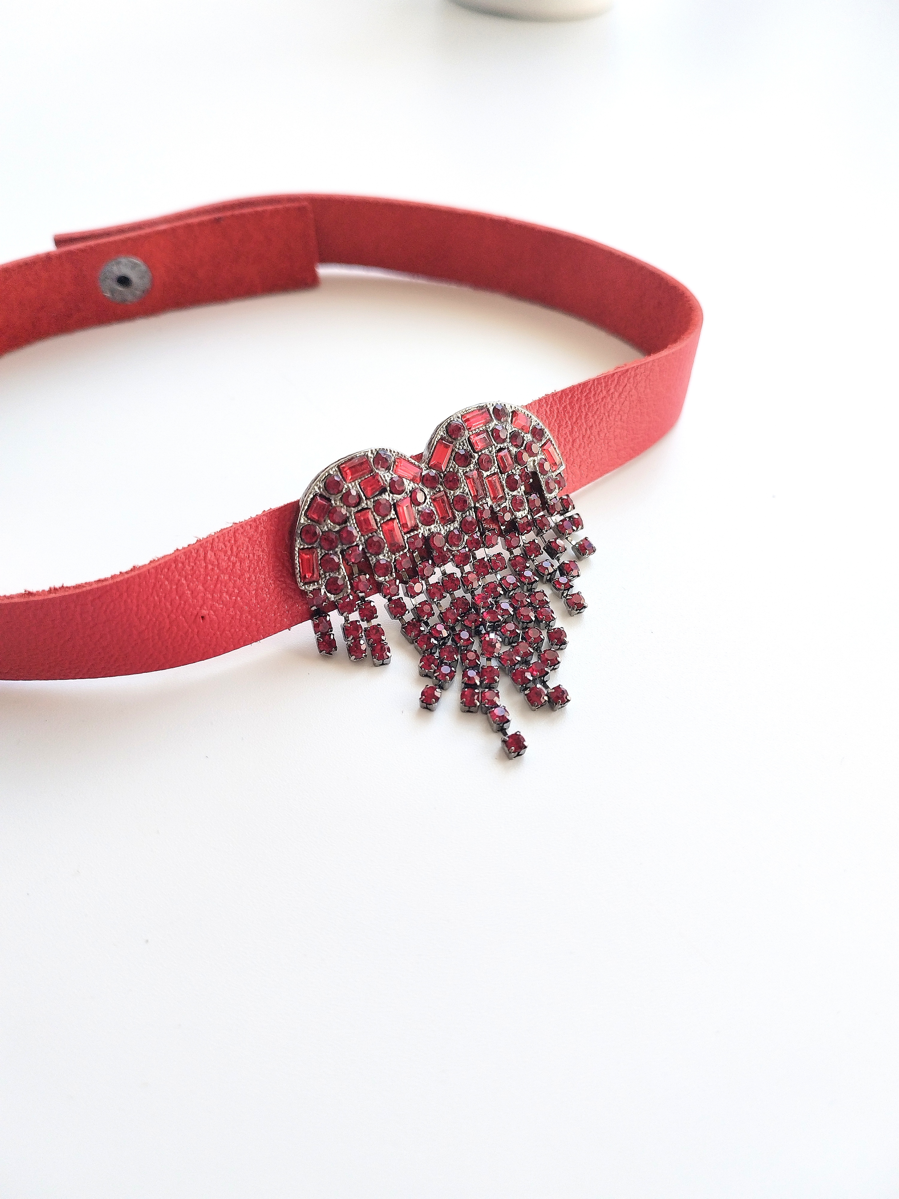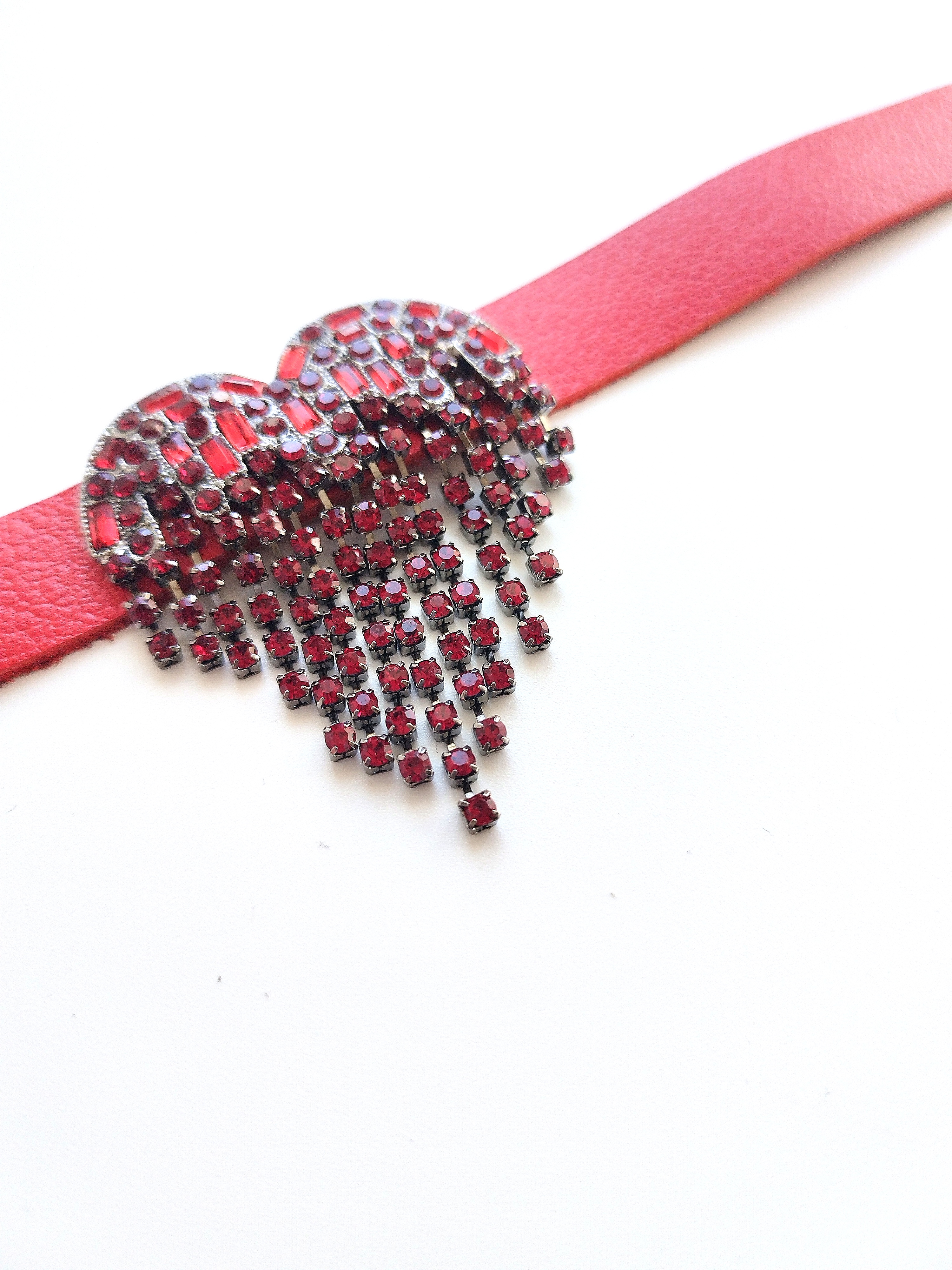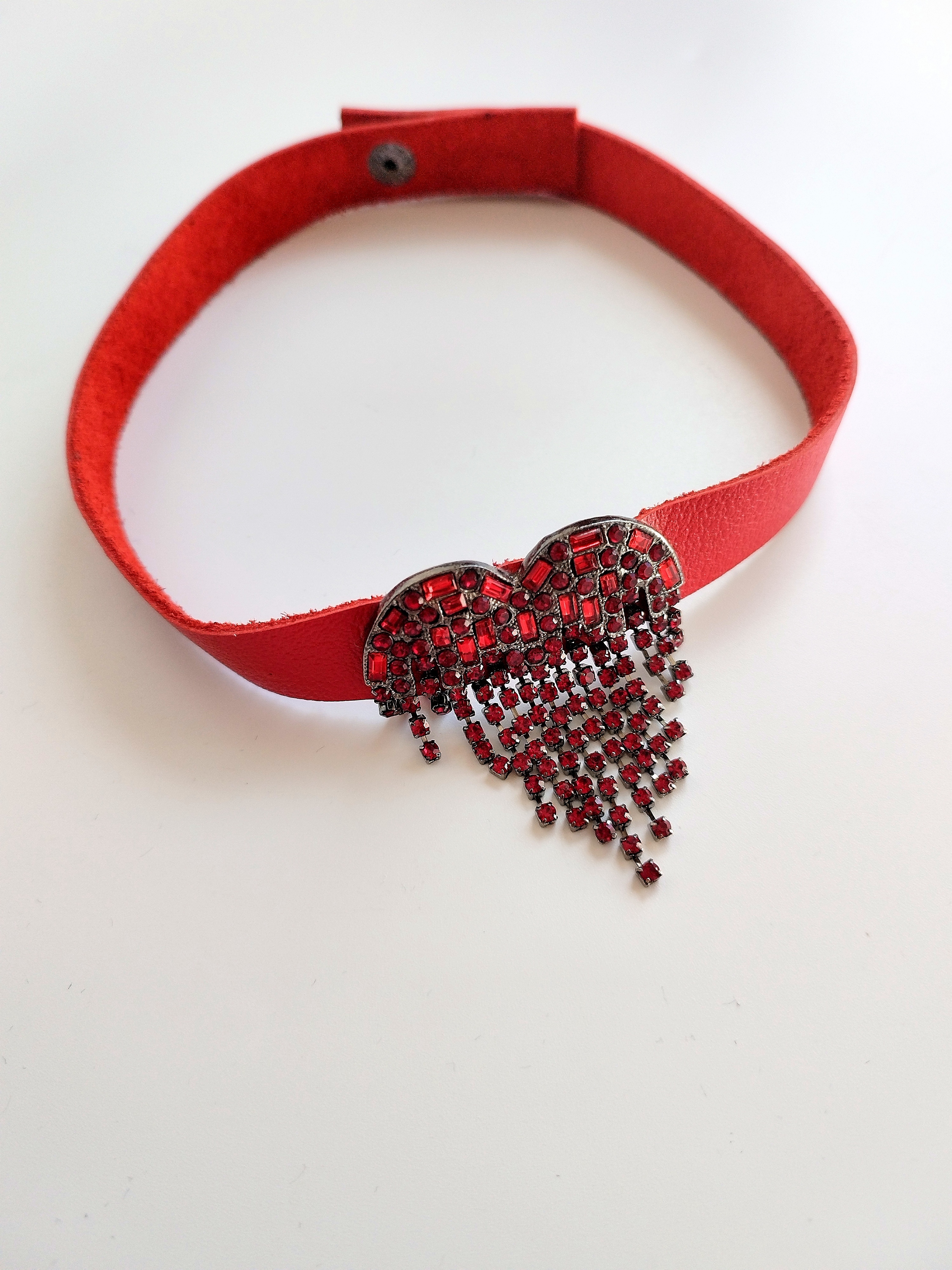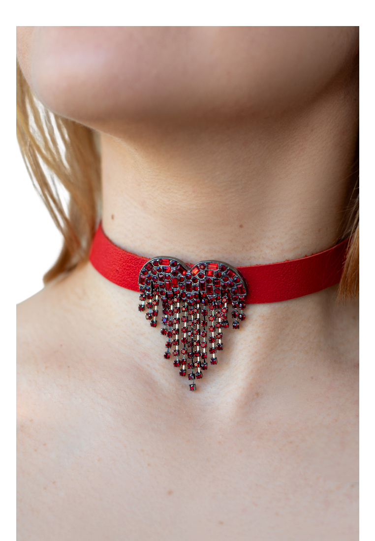 Чокер из кожи с динамичным кулоном в форме сердца из страз.
