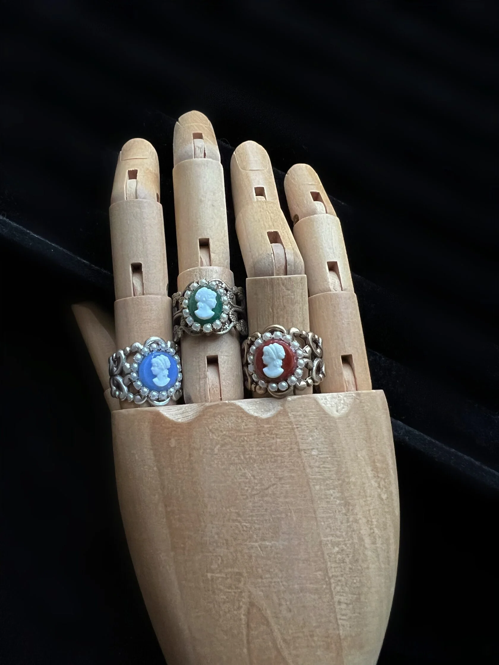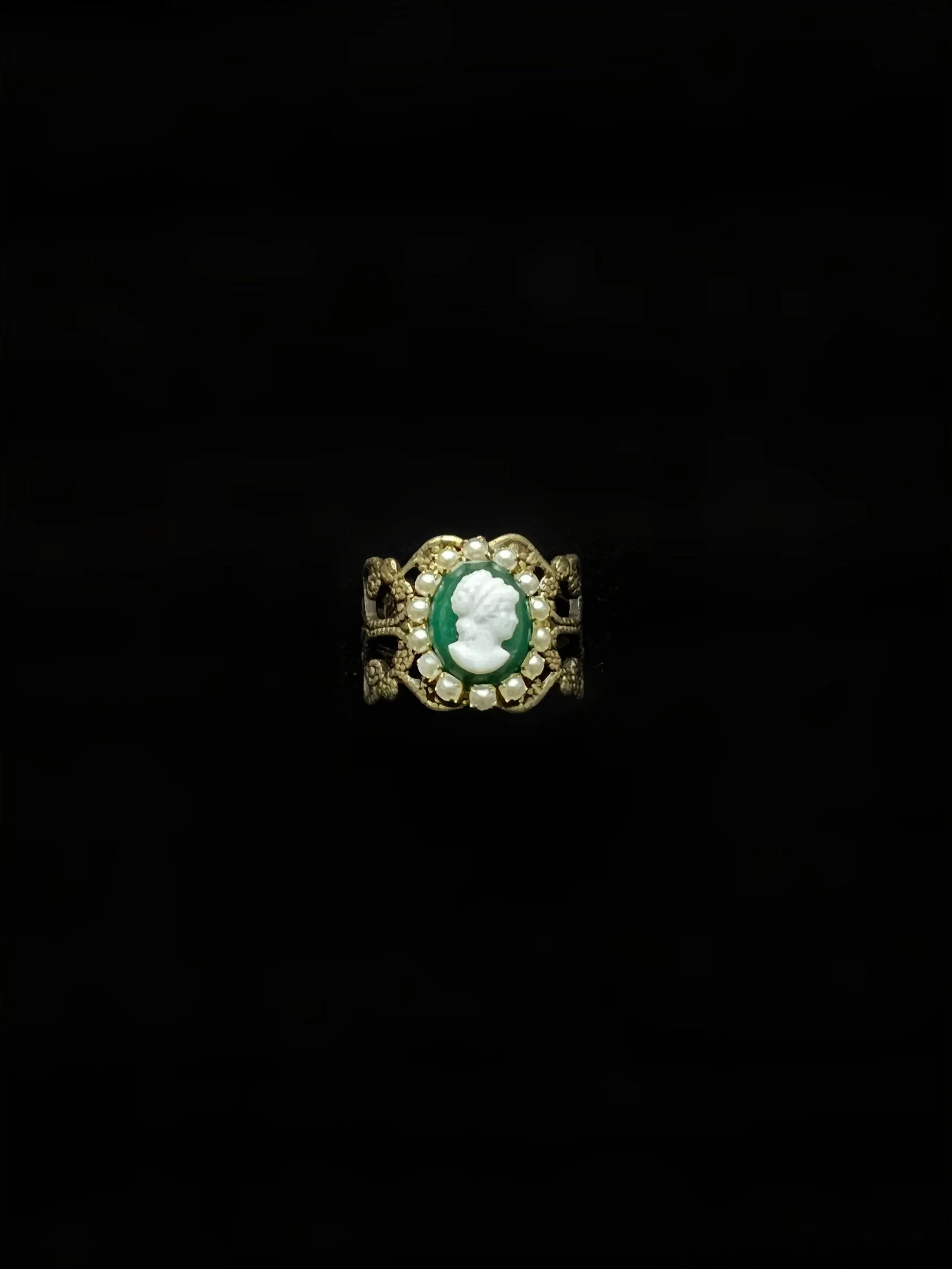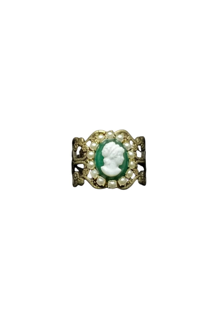 Барочный перстень украшен винтажной камеей (Яблонец, Чехия) и декорирован искусственным жемчугом. Регулируемый размер