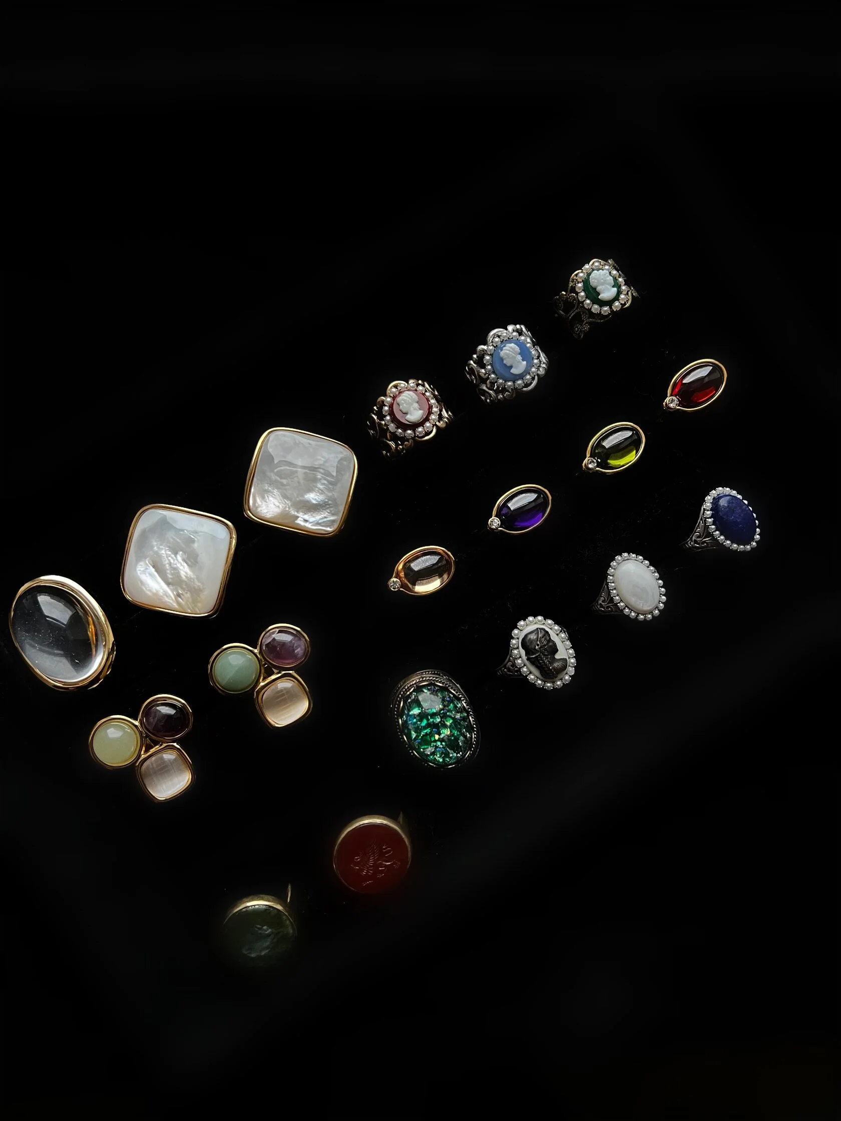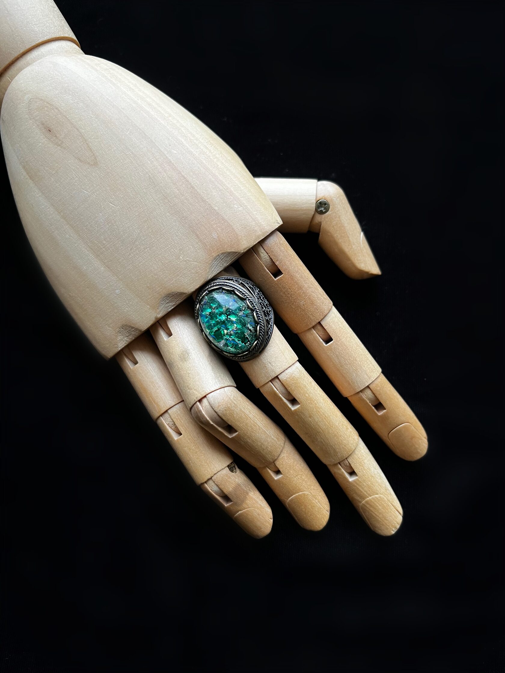 Барочный перстень украшен винтажным кабошоном (Яблонец, Чехия). Размер 16,5, не регулируемый
