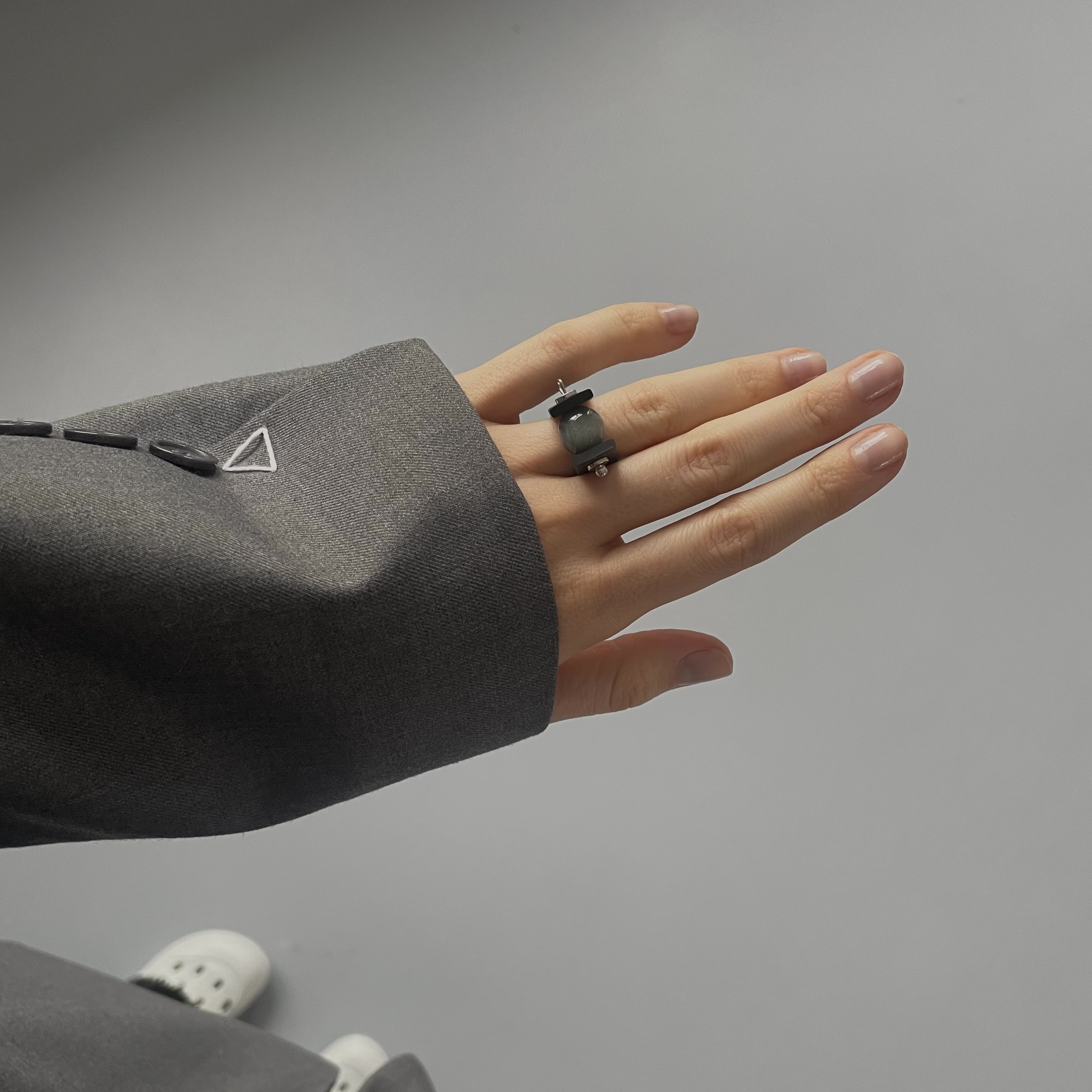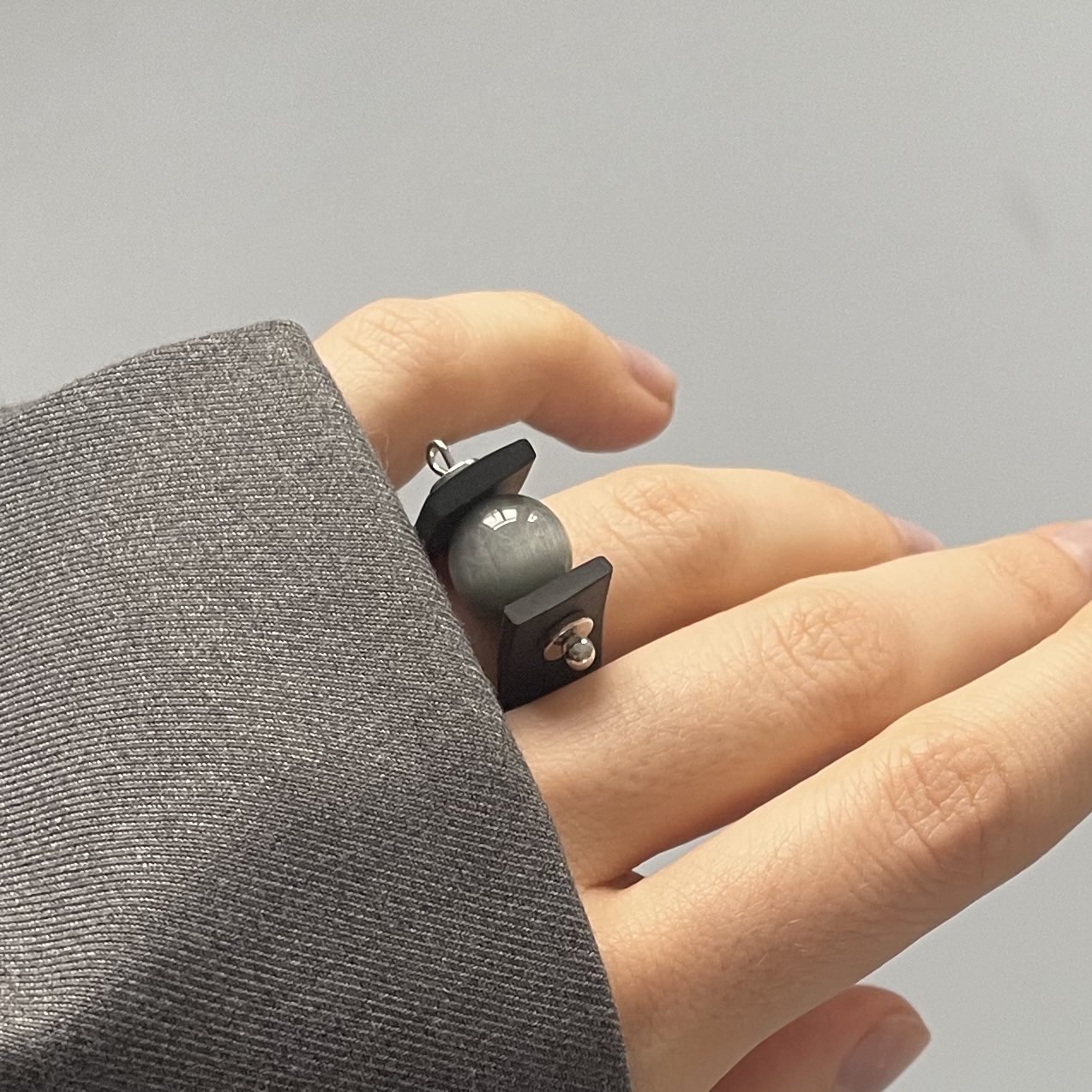 Кольцо с натуральным камнем кошачий глаз. Украшение выполнено вручную из черного каучука и камня. Выполнено из каучука, натурального камня и латуни с родированием, украшение подойдет людям с аллергией на металлы.