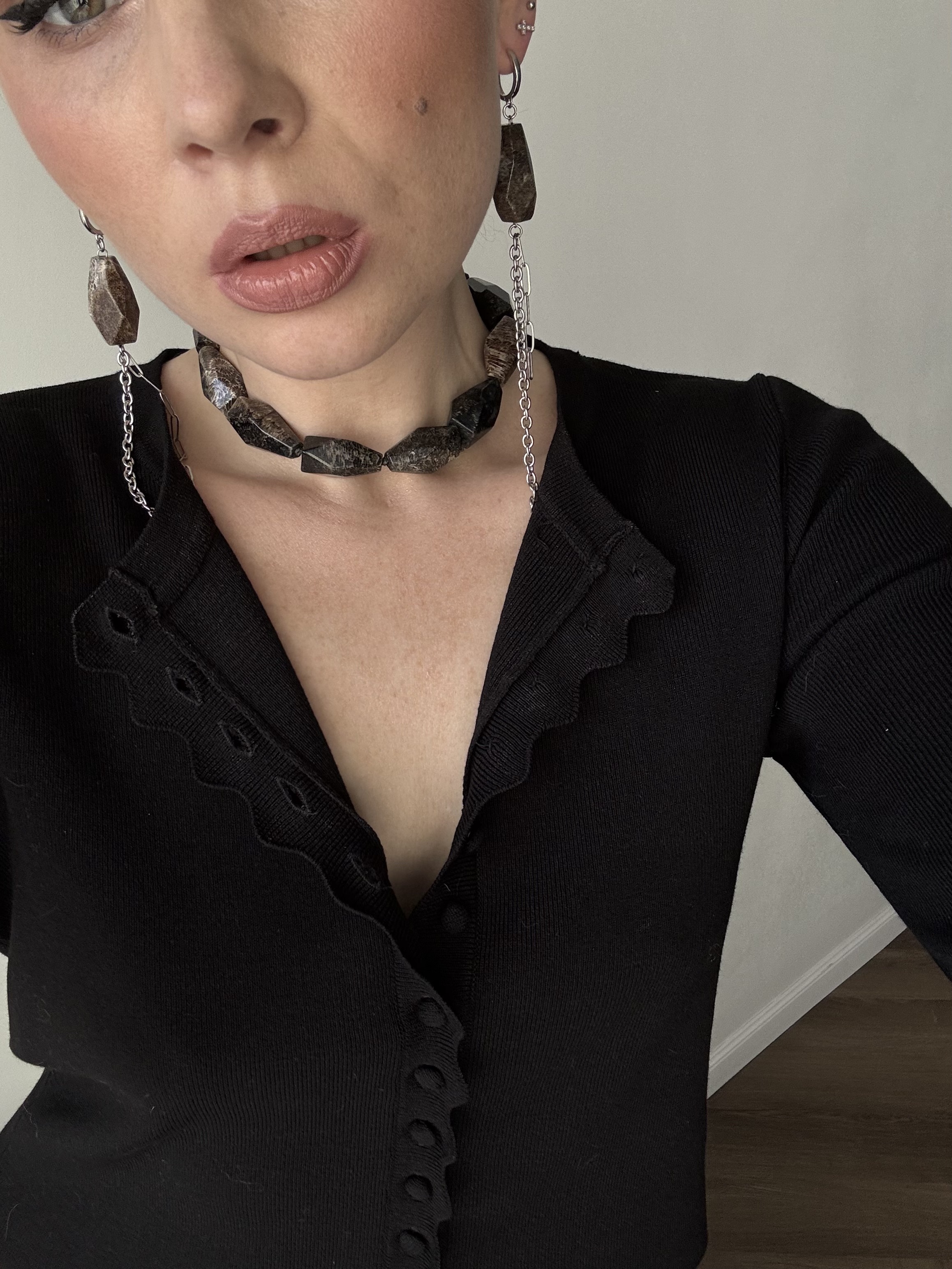 Бусы из крупной яшмы, длина колье регулируется на 7 см.