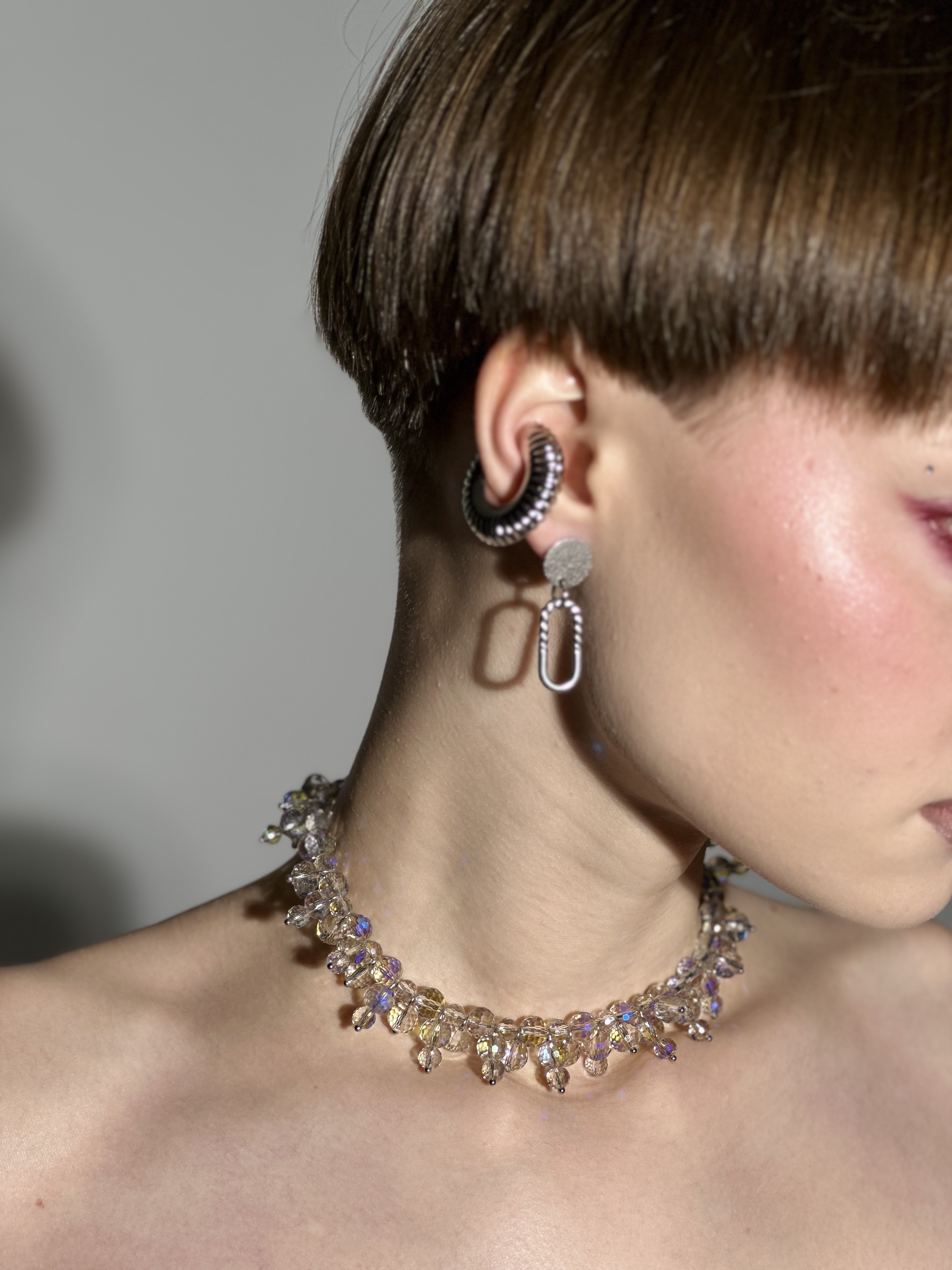 Фактурное колье из сверкающего чешского стекла, длина регулируется на 7 см.