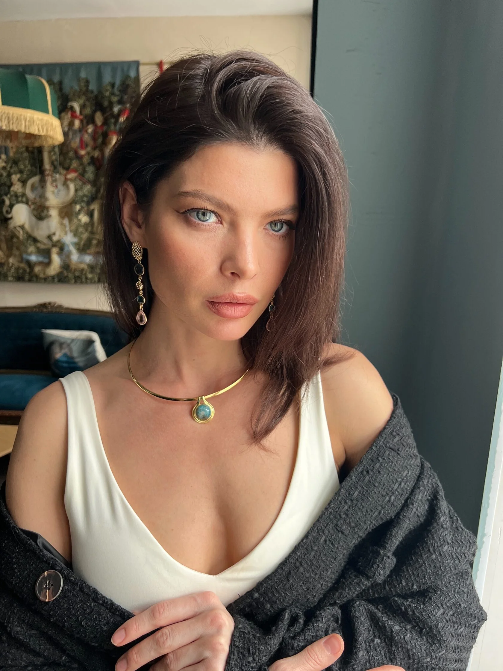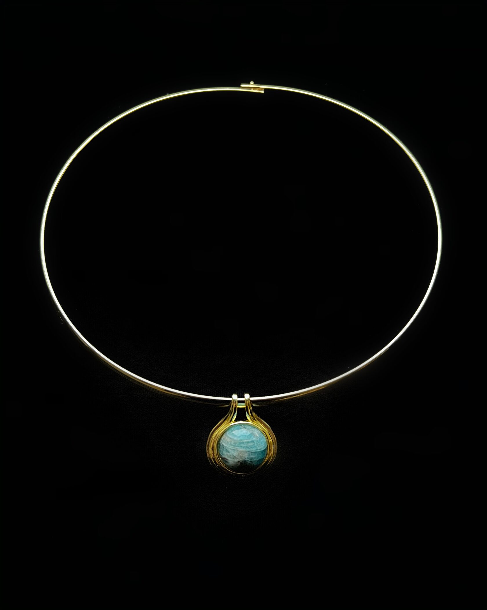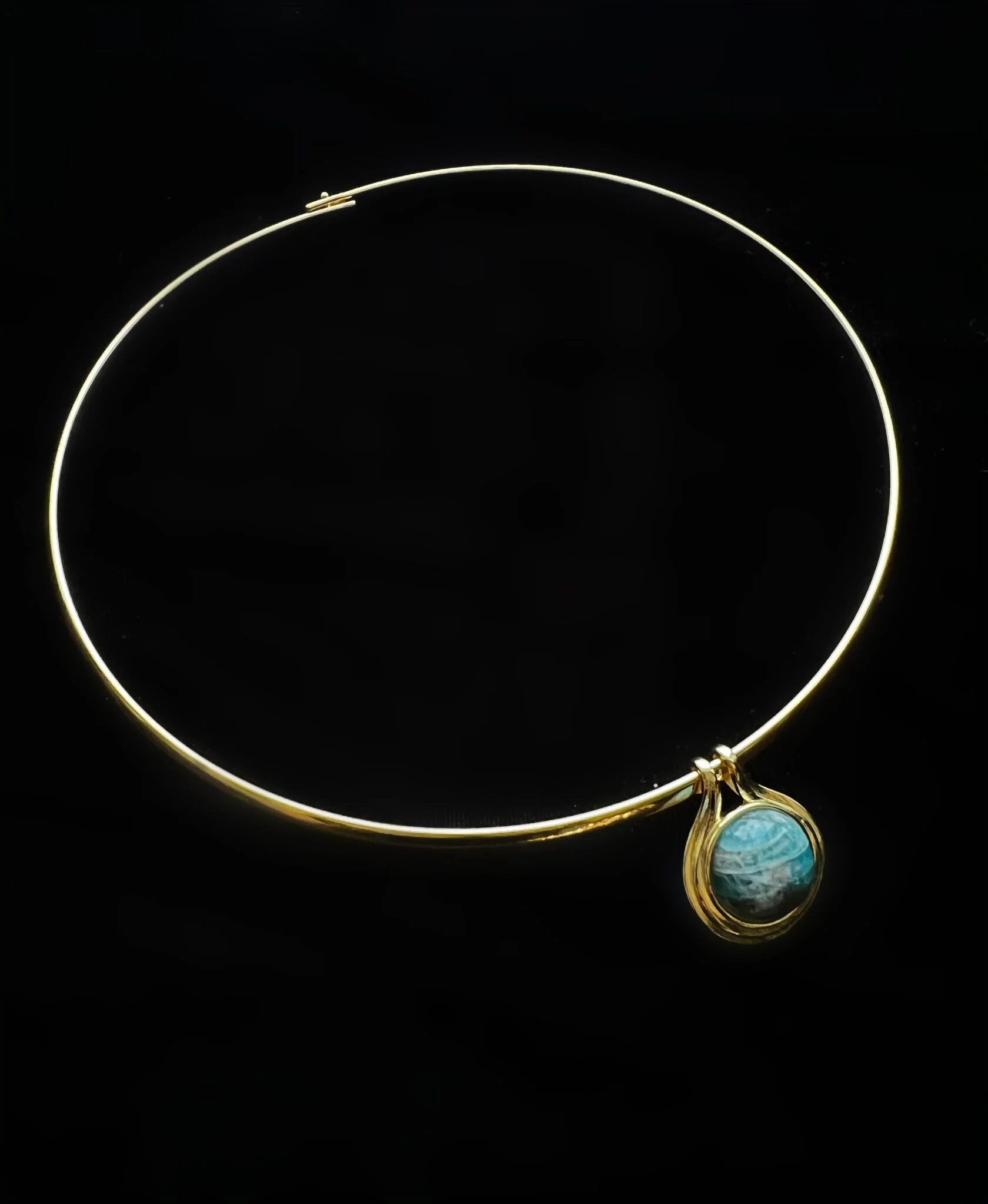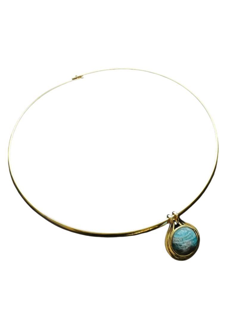 Колье-обруч украшено подвеской в египетском стиле со вставкой амазонита.