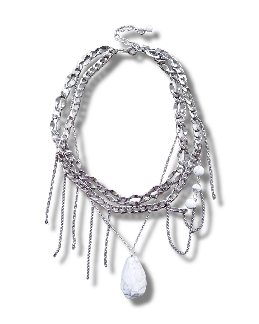Колье из нержавеющей стали и крупной подвесной цепи и кахолонга.