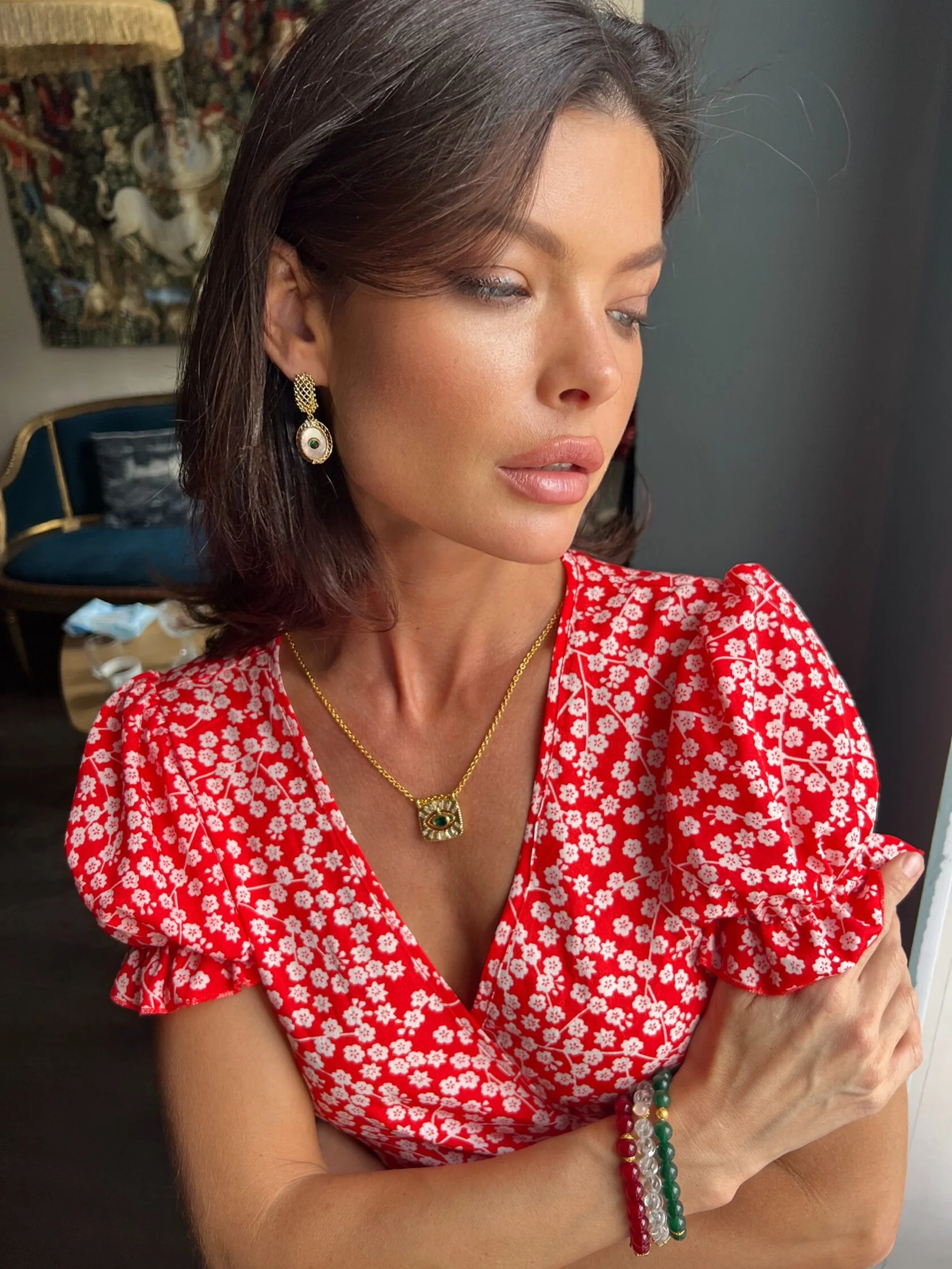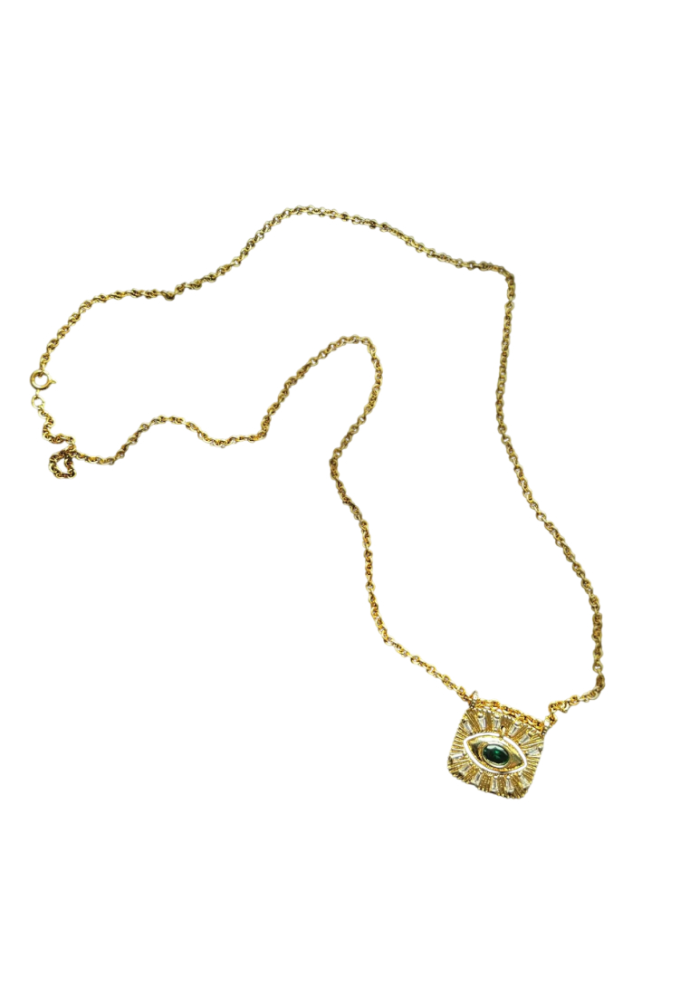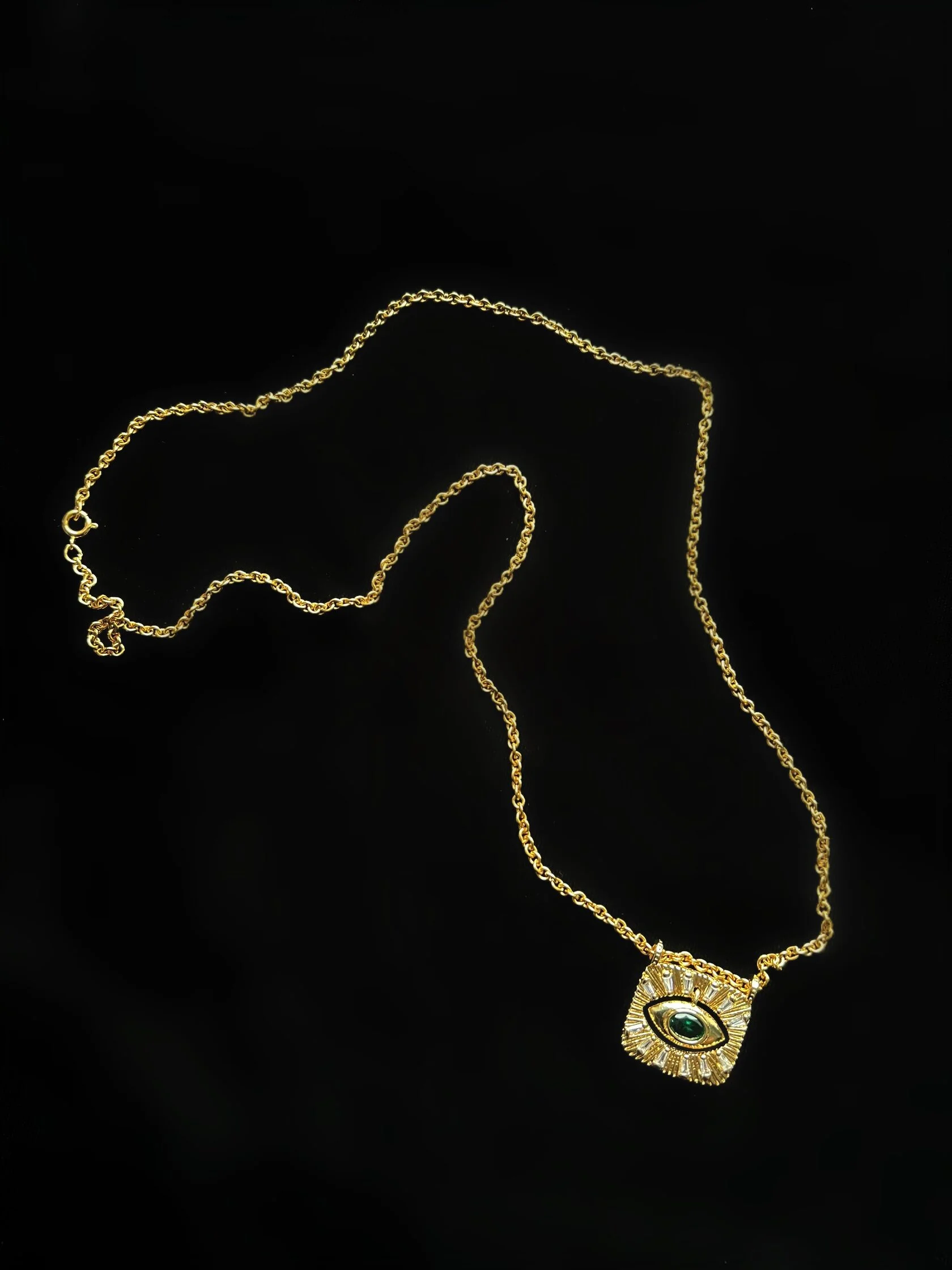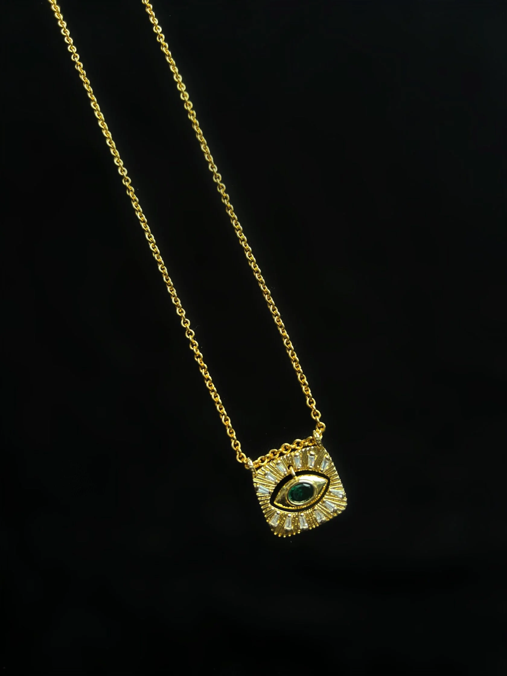 Тонкая подвеска украшена декоративной подвеской «око» с цветными кристаллами