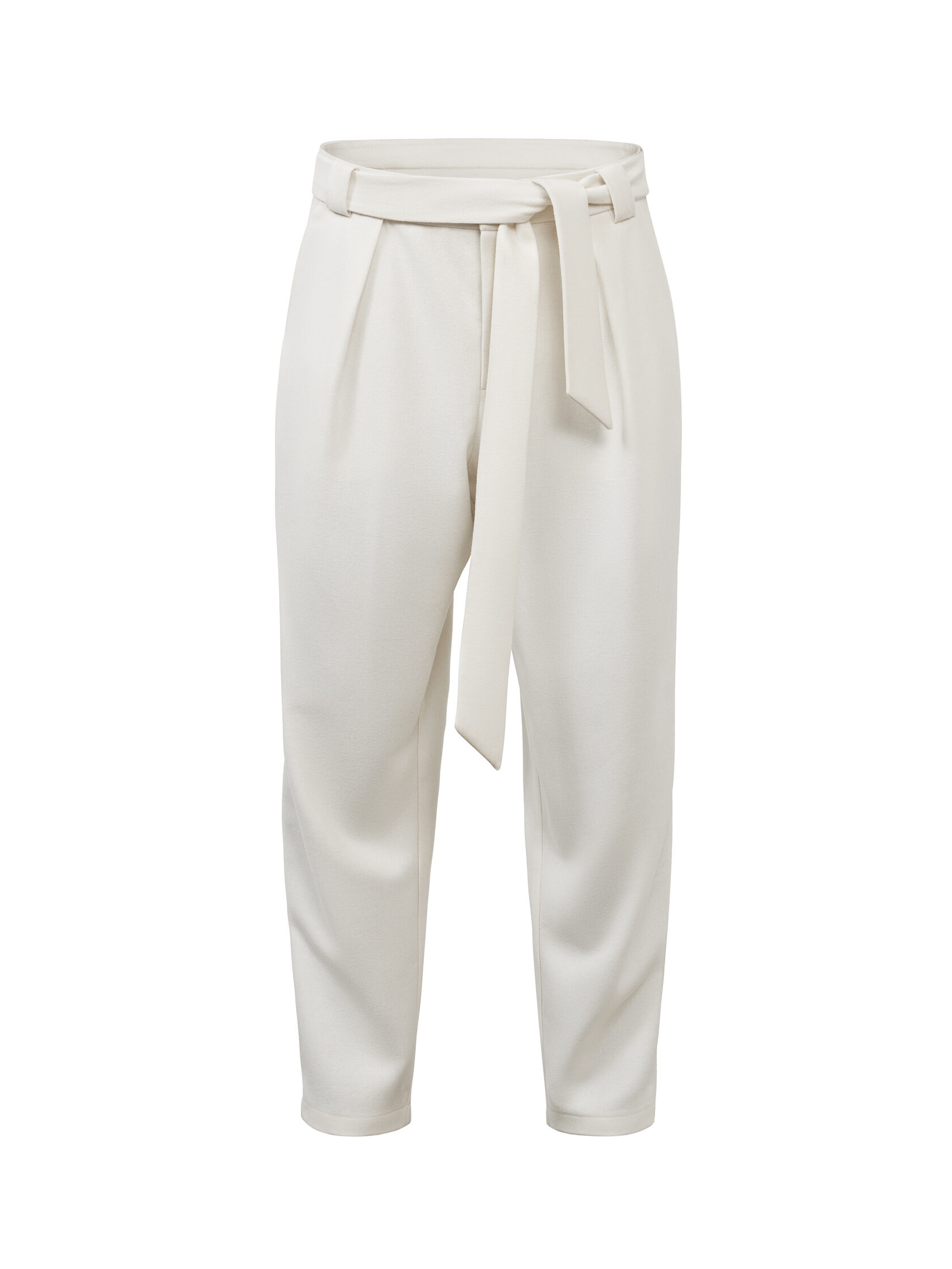 Брюки из шерсти с завязкой-кушаком и защипами.