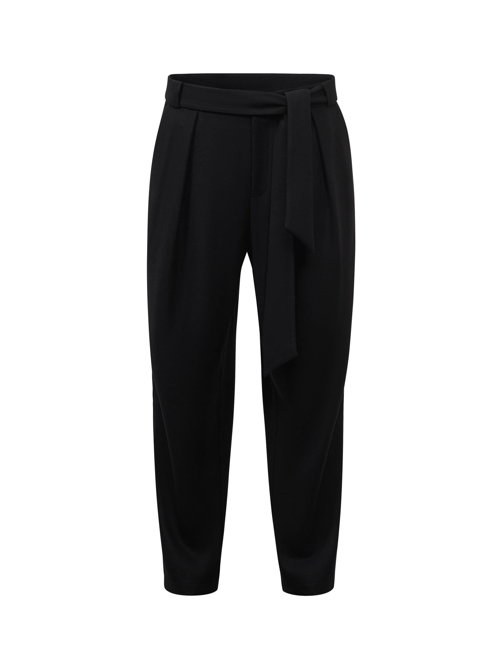Брюки из шерсти с завязкой-кушаком и защипами.