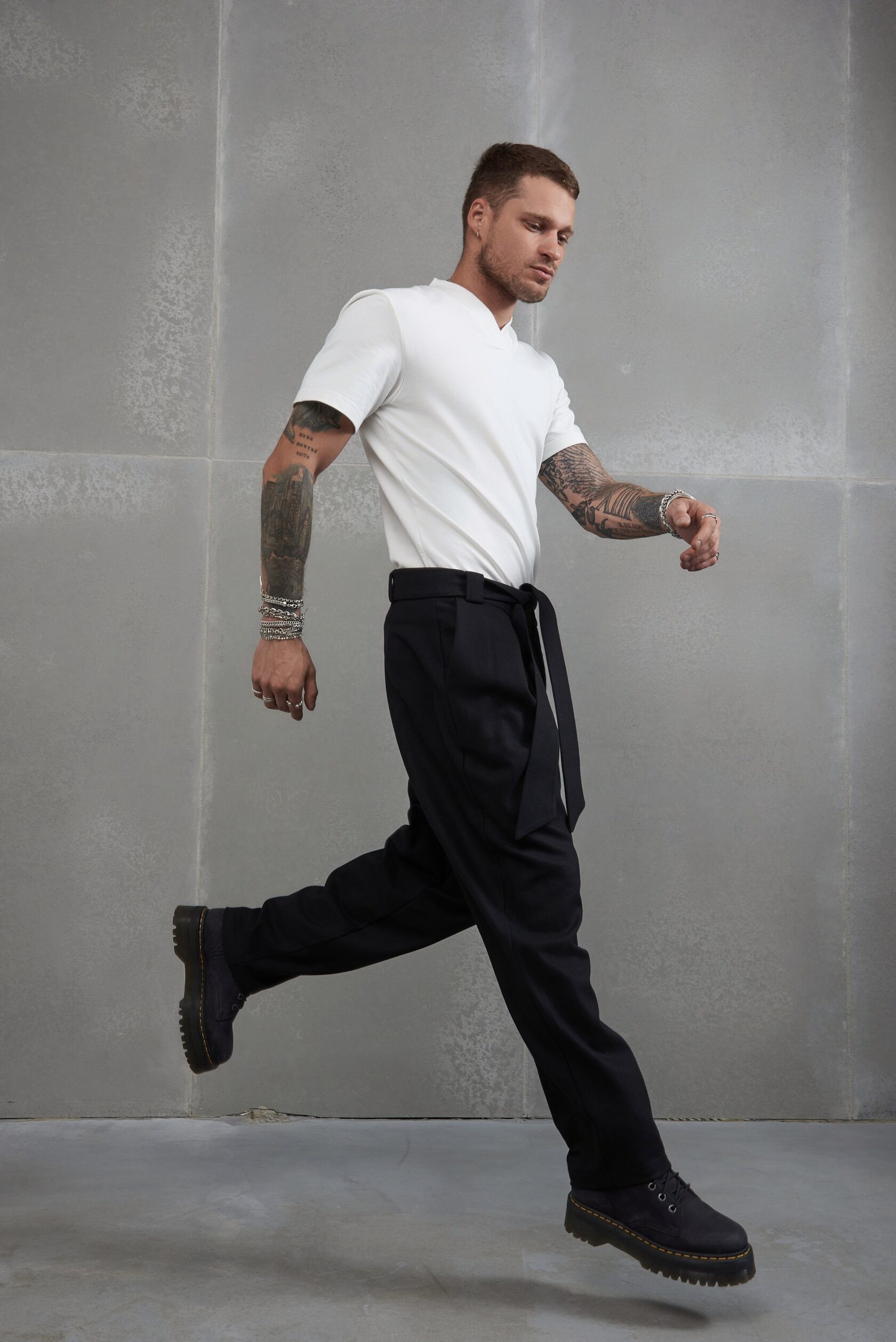 Крой с высокой талией, отлично подчеркивает длину ног. Глубокие защипы добавляют удобства и эластичности брюкам при ходьбе и просто отлично выглядят. Дополнительный обьем в бедрах, чтобы ты смог надеть свои любимые брюки после дня ног. Пояс в стиле русского кушака создает уникальный лук и позволяет легко регулировать посадку и создавать различные стилистические акценты за счет вариативности завязывания.