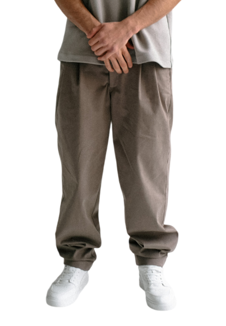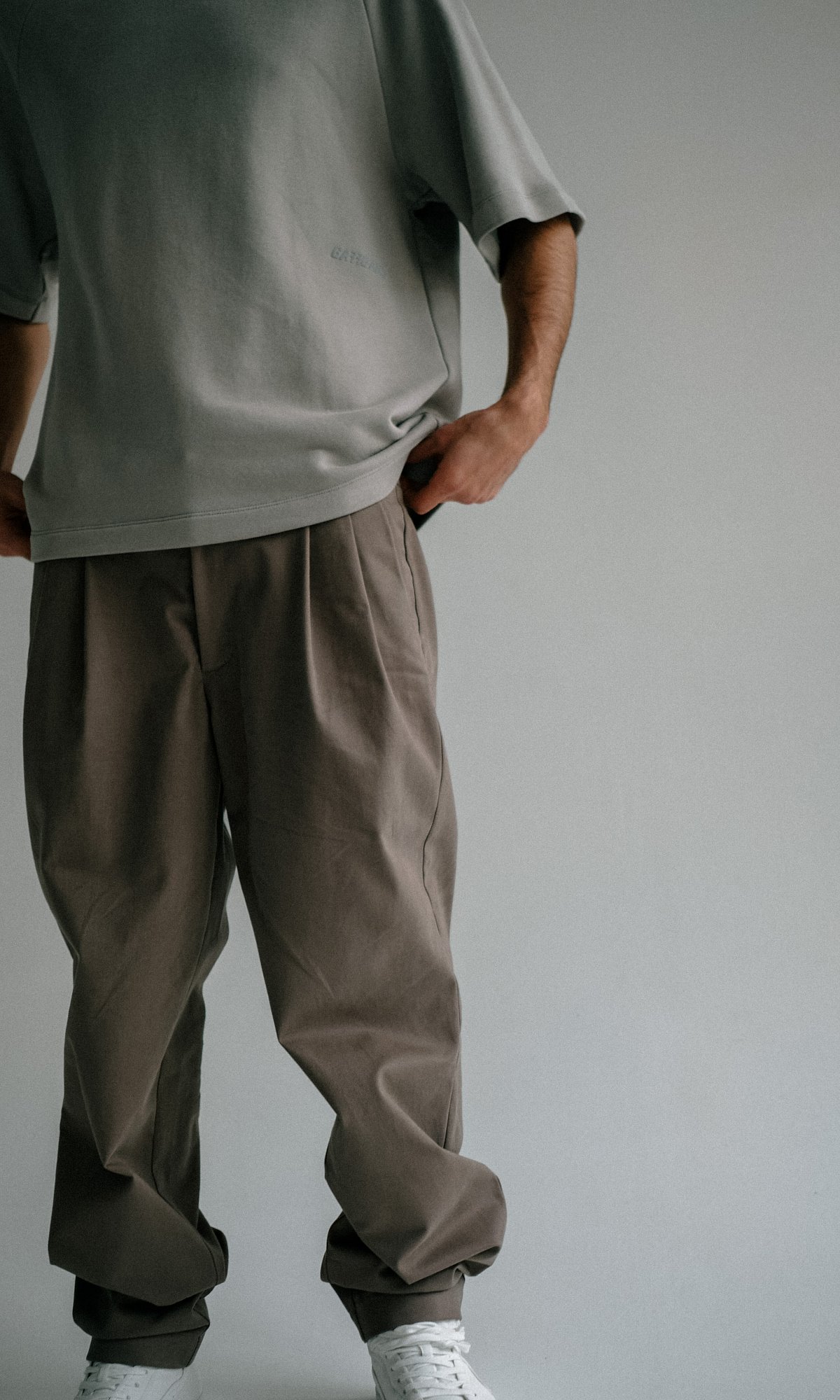 Мужские брюки из твила в окрасе пепел. Свободного кроя, типичные представители спортивной классики. Сзади прорезные карманы на пуговице. Универсальный фасон и базовый цвет позволяют креативить разные сочетания: с рубашкой, жакетом, футболкой, объемным свитшотом, худи.
