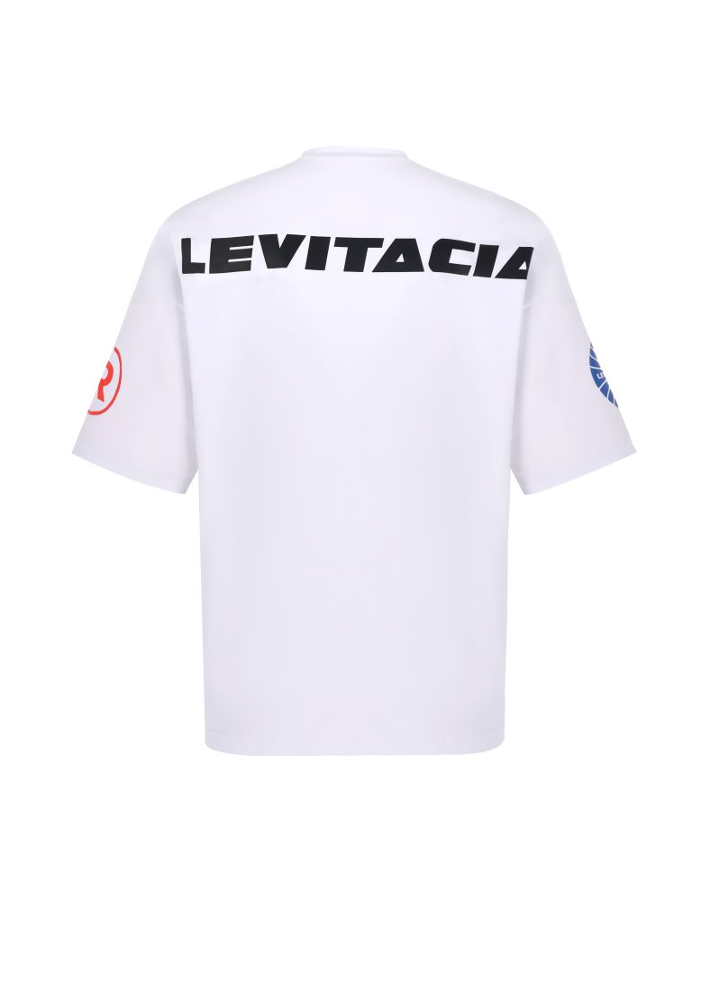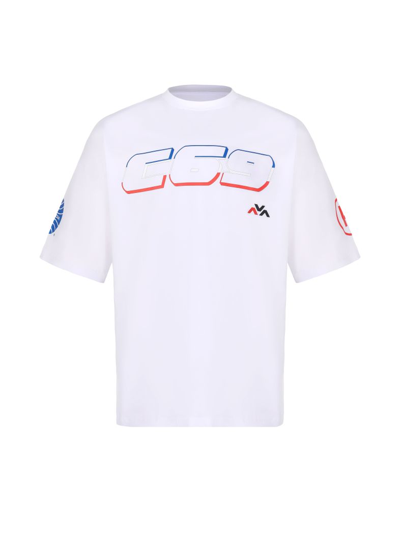 Футболка оверсайз кроя с опущенным плечевым швом, выполнена из натурального хлопка, круглый вырез, измененный логотип бренда спереди, на спине надпись с названием бренда.