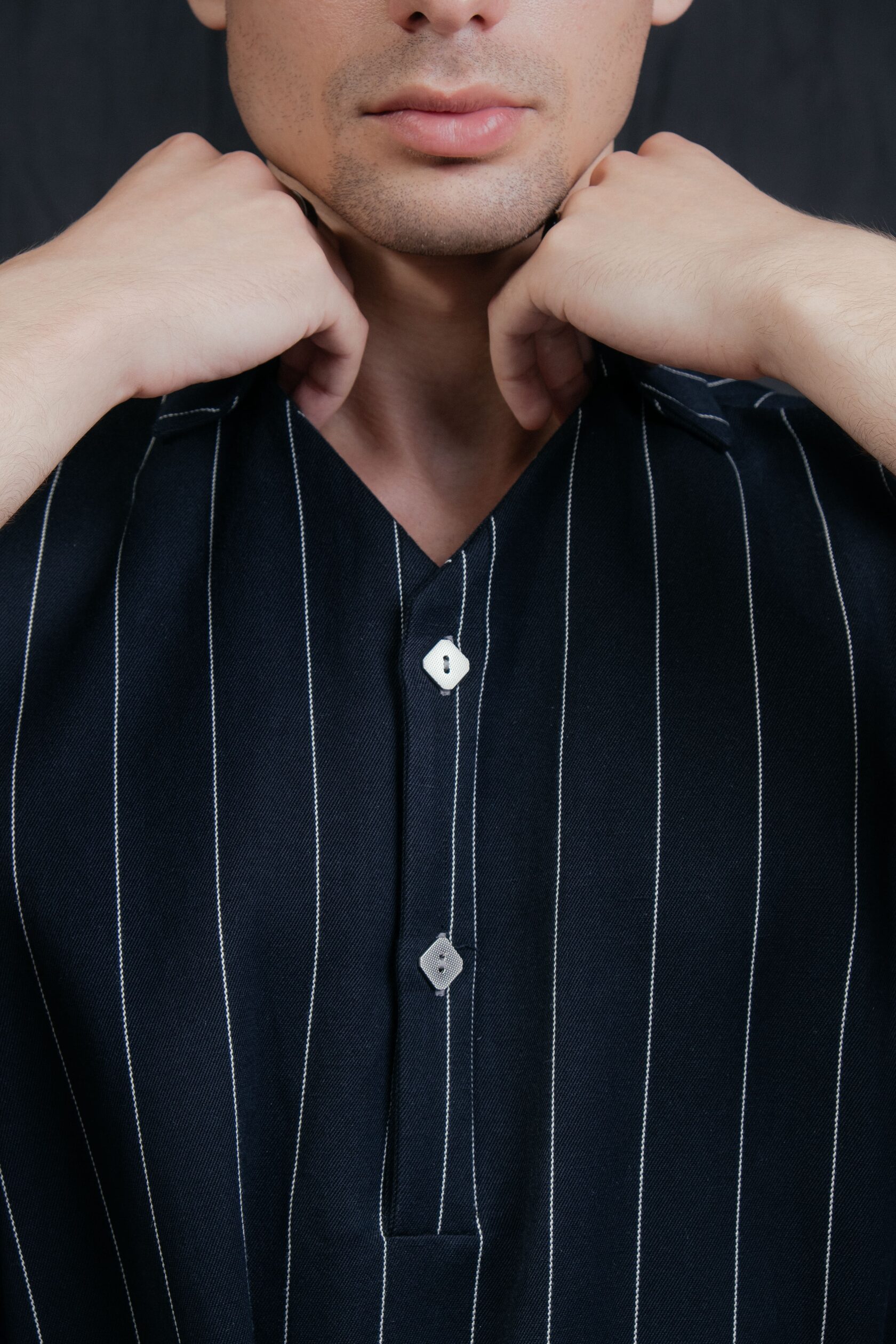 Современный взгляд на классику: мужская туника, вдохновлённая античными одеяниями и средневековым табардом. Идеальна для лета — лёгкая, дышащая, но при этом плотная и держит форму. Универсальный элемент гардероба: носите с рубашкой, брюками или самостоятельно.