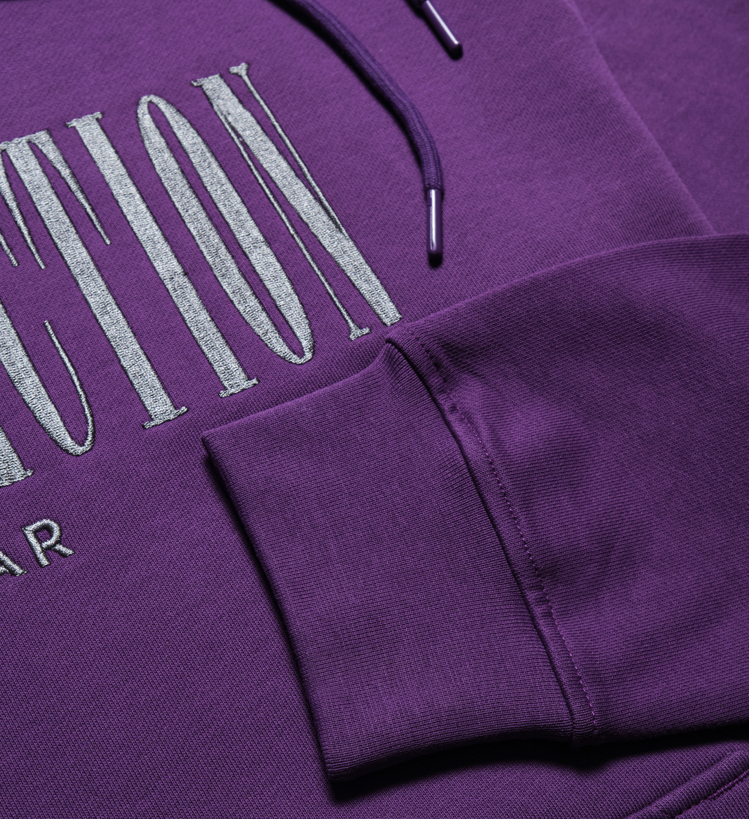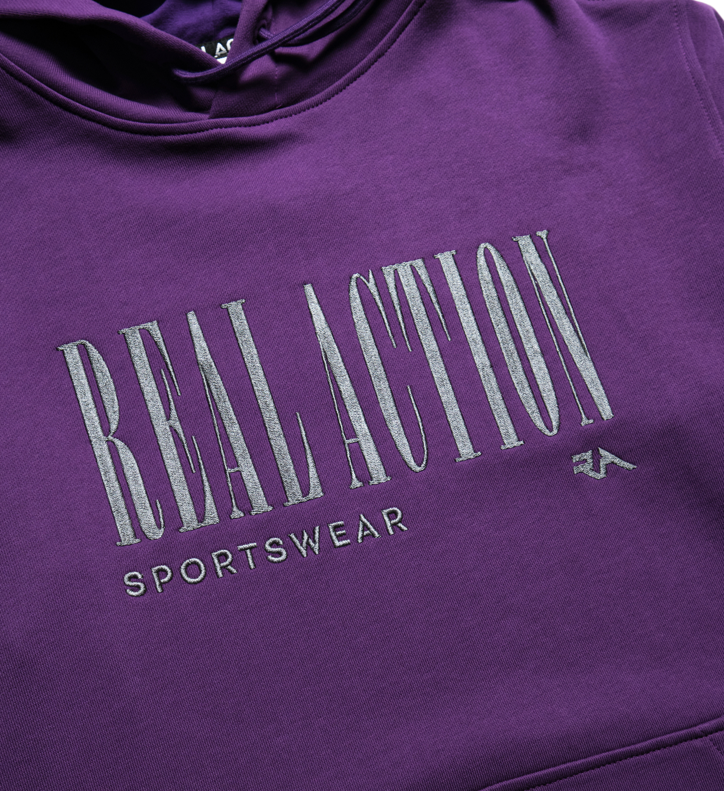 Элегантный фиолетовый цвет, вышивка на груди, капюшон, удобный карман-кенгуру и манжеты делают его универсальным элементом для повседневной носки и активного отдыха.