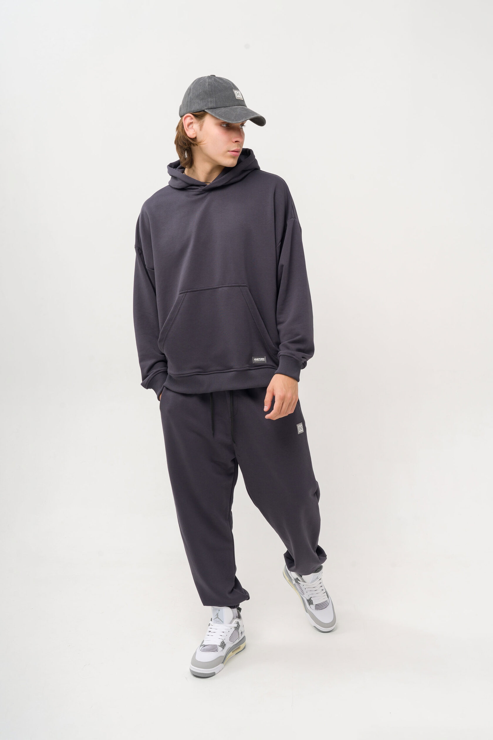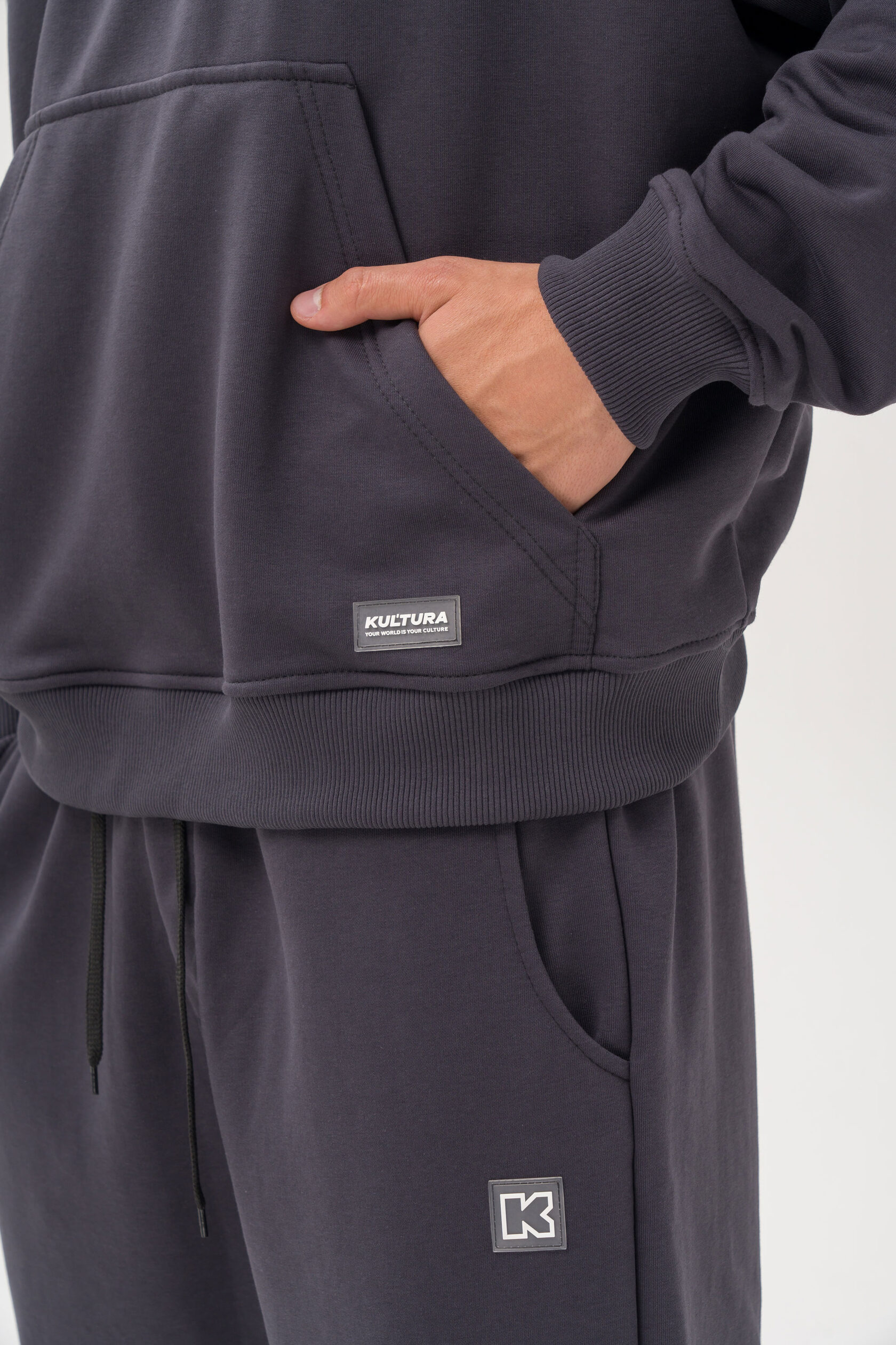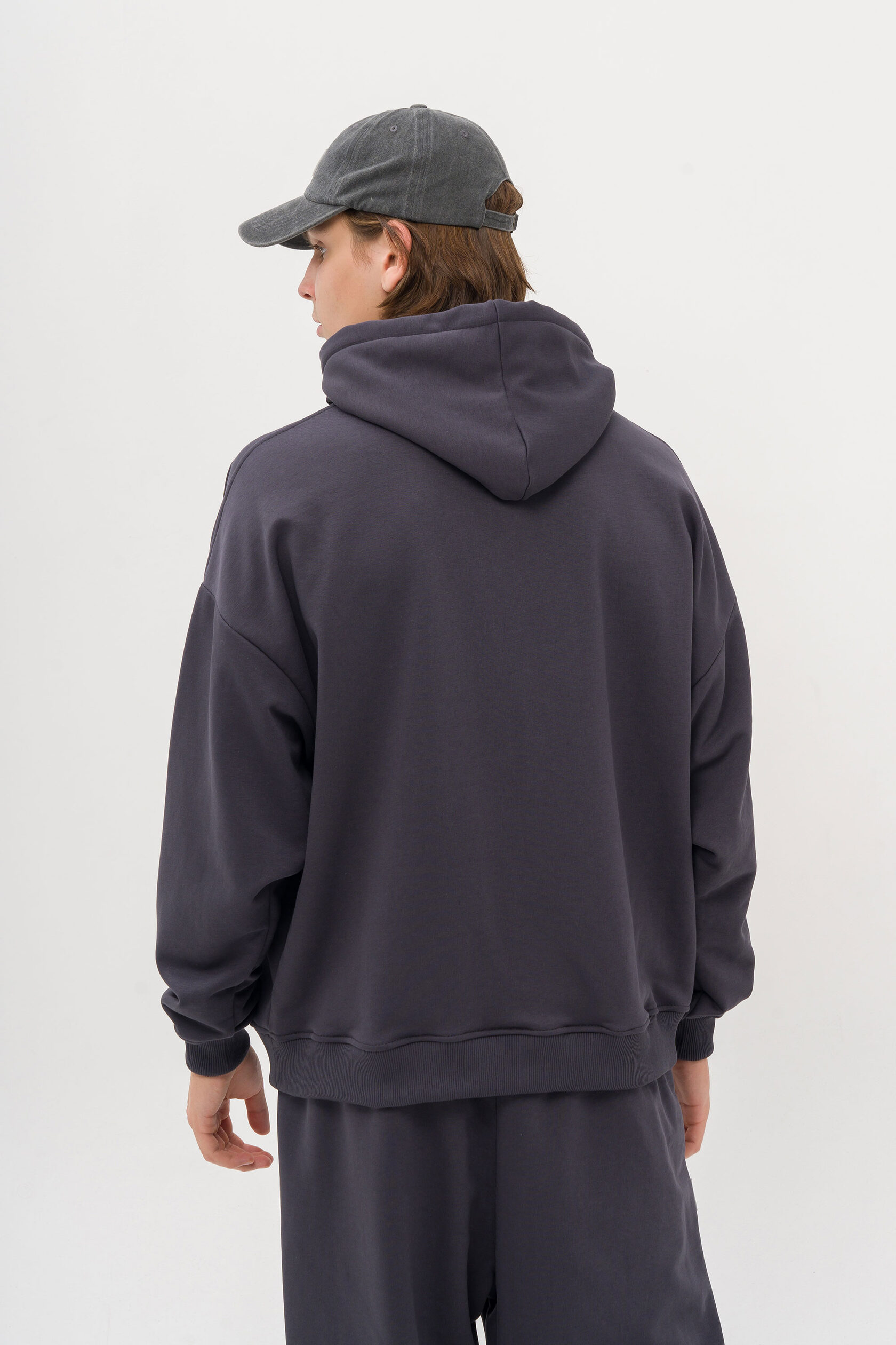 Выполнен из теплого футера с начесом на модели размер М; рост 175 см
