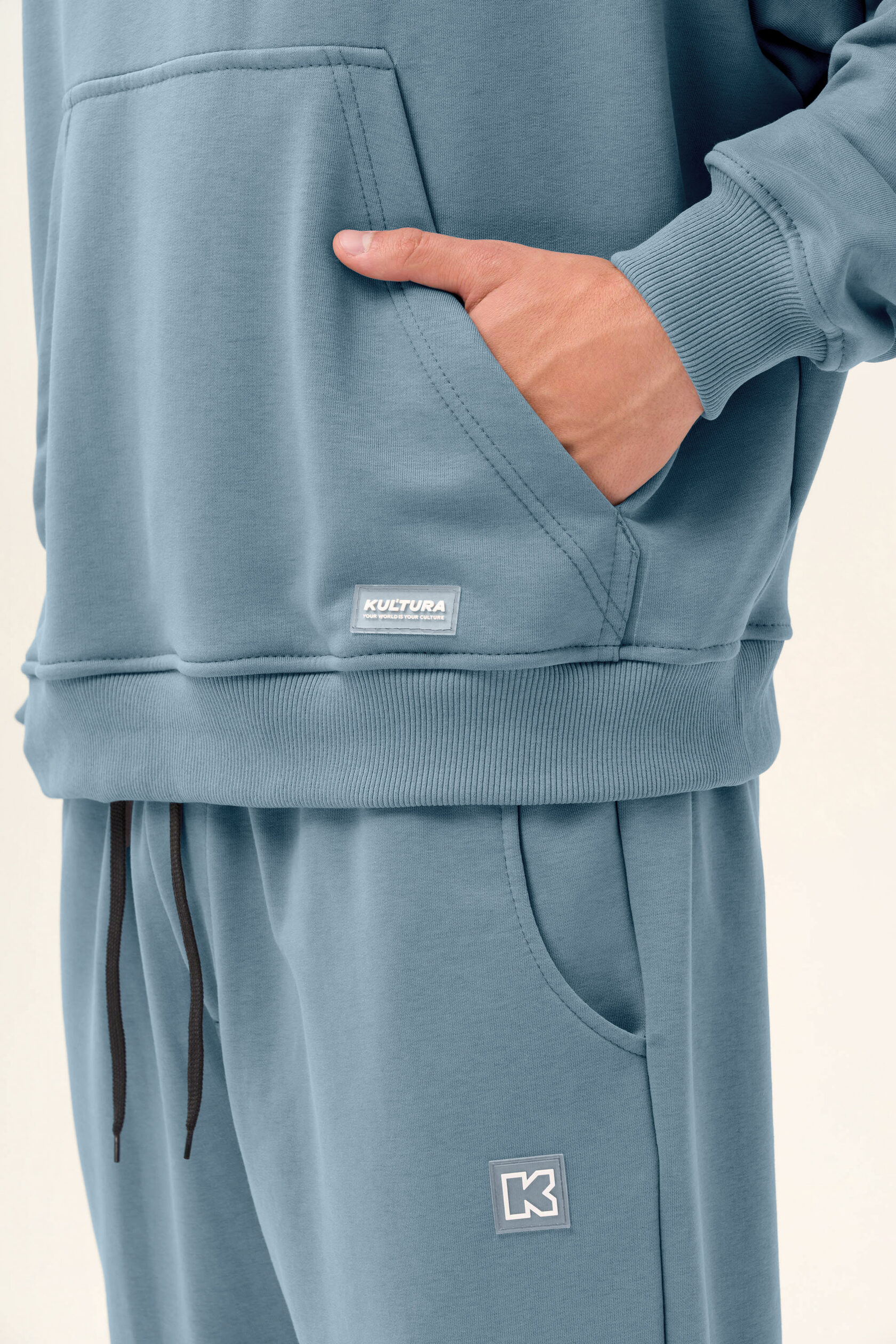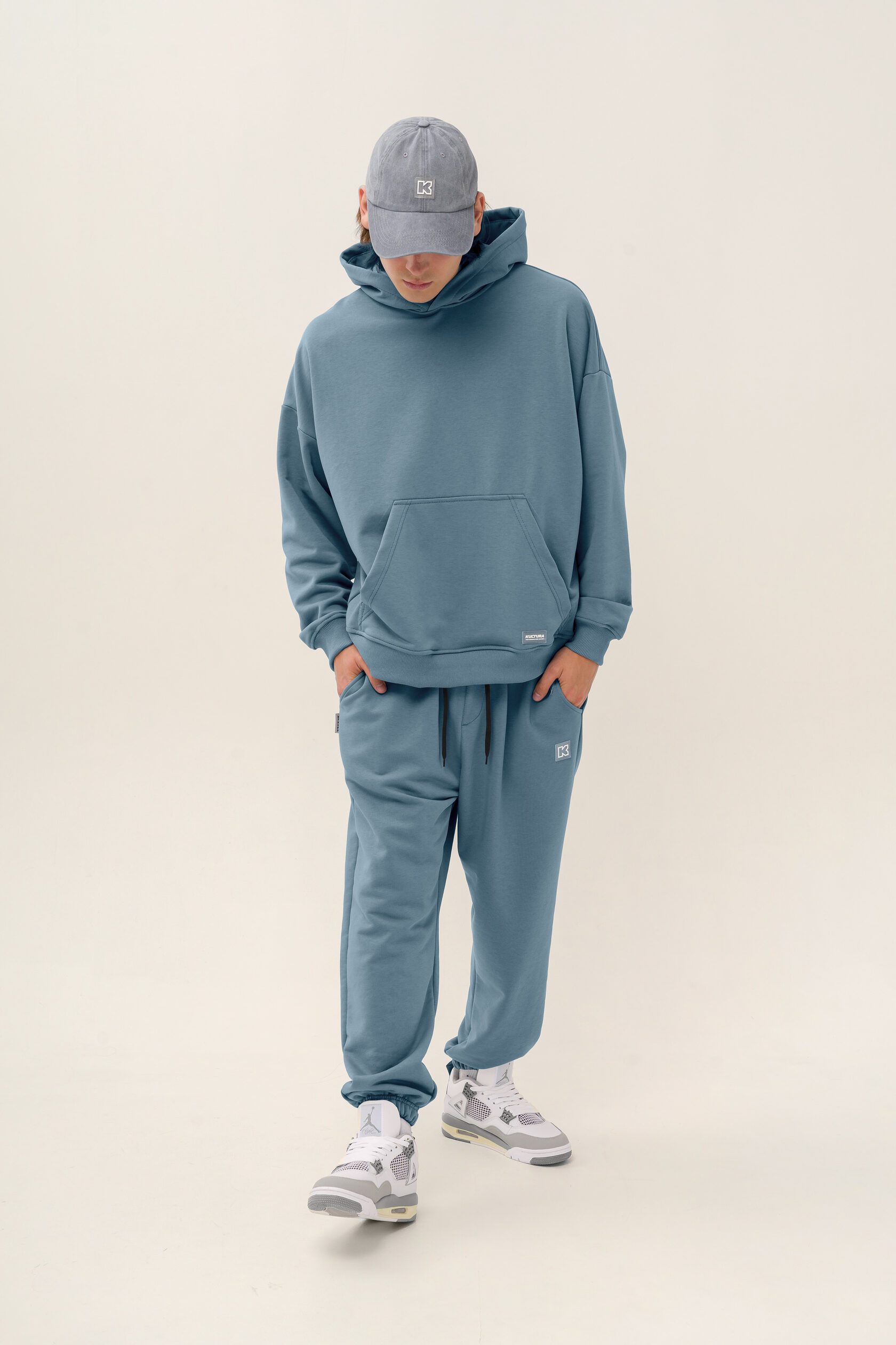 Выполнен из теплого футера с начесом на модели размер М; рост 175 см