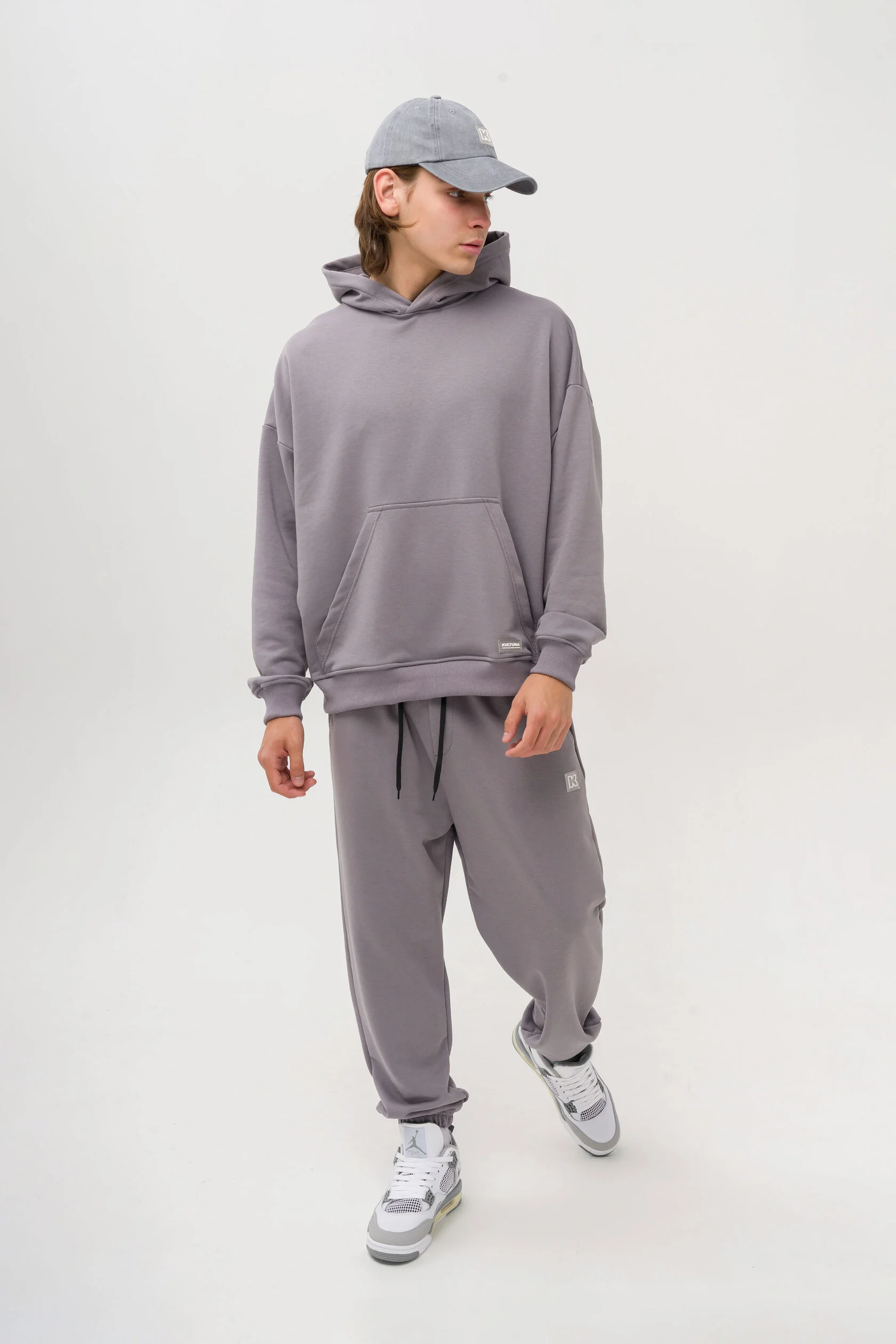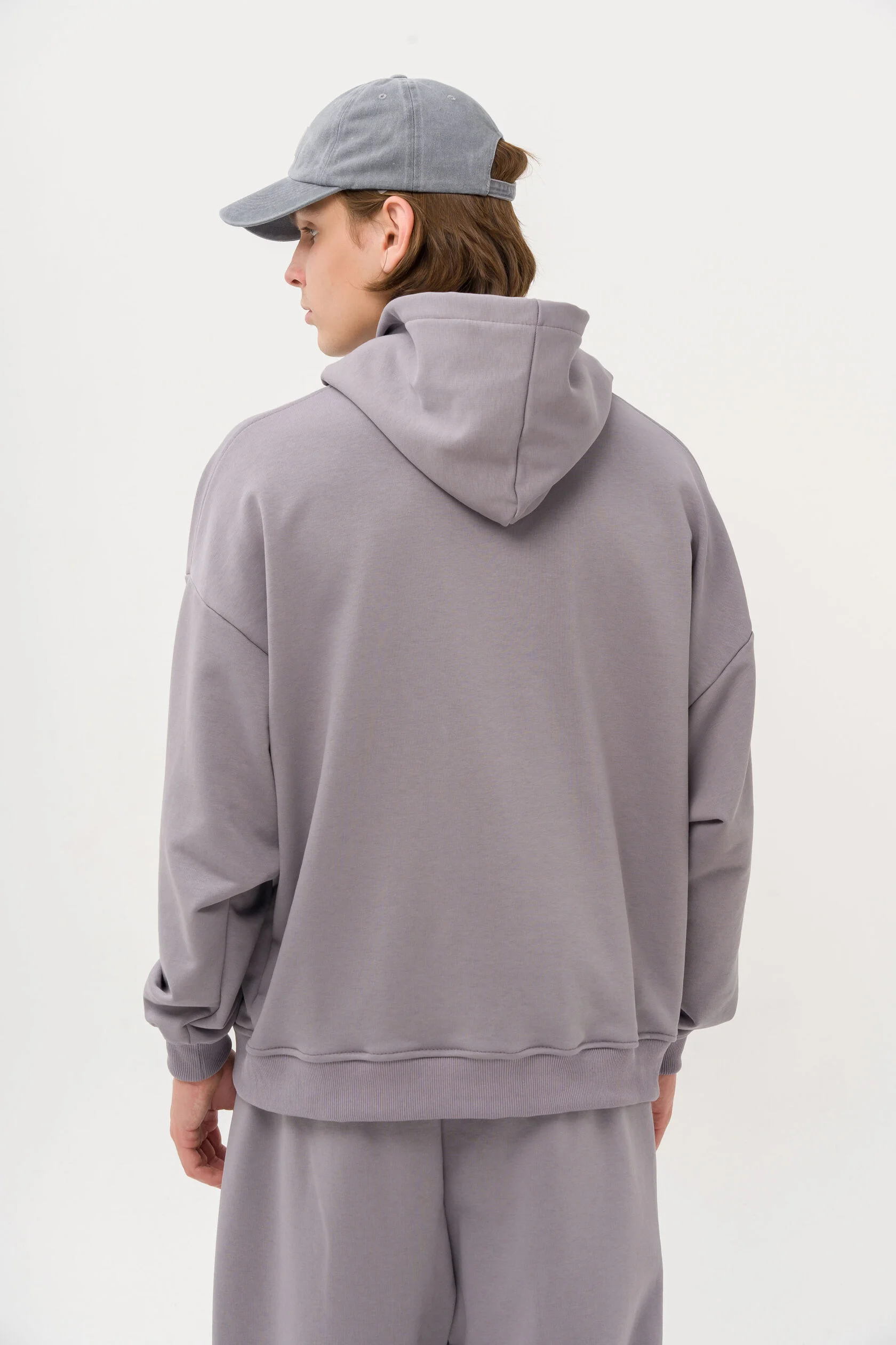 Выполнен из теплого футера с начесом на модели размер М; рост 175 см