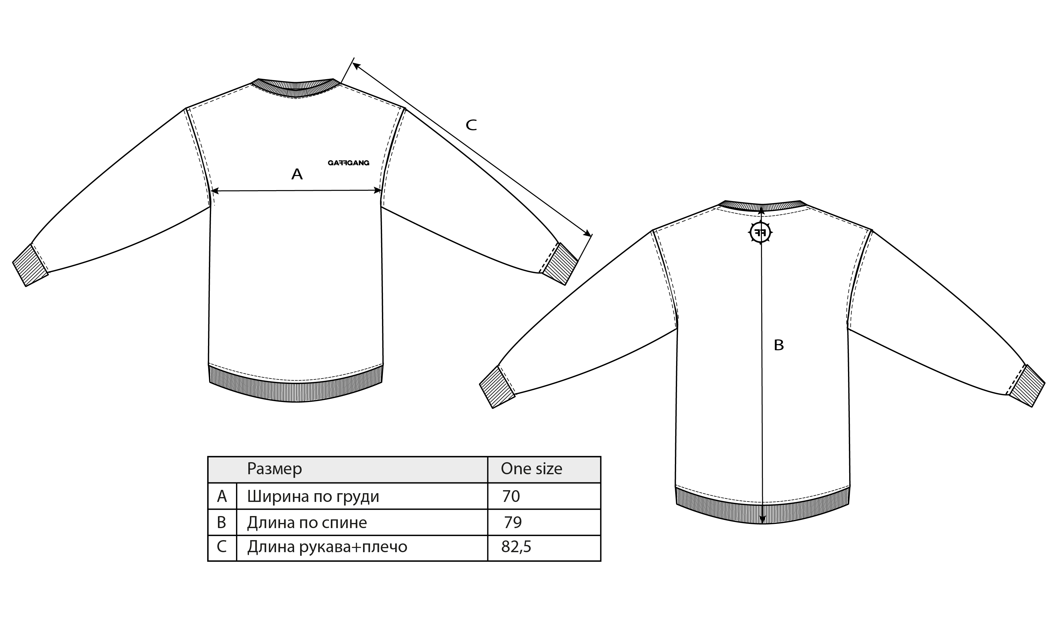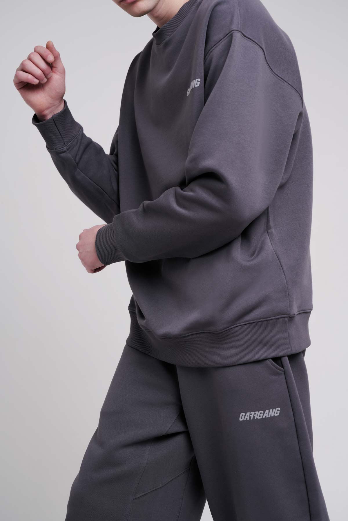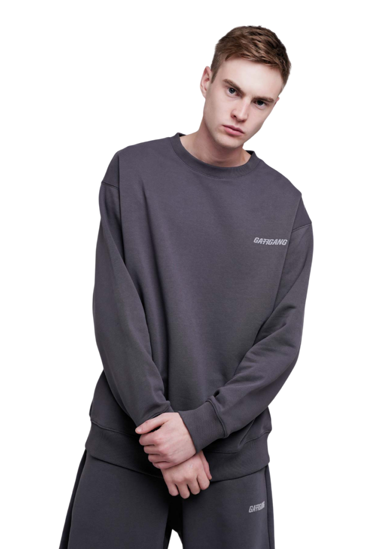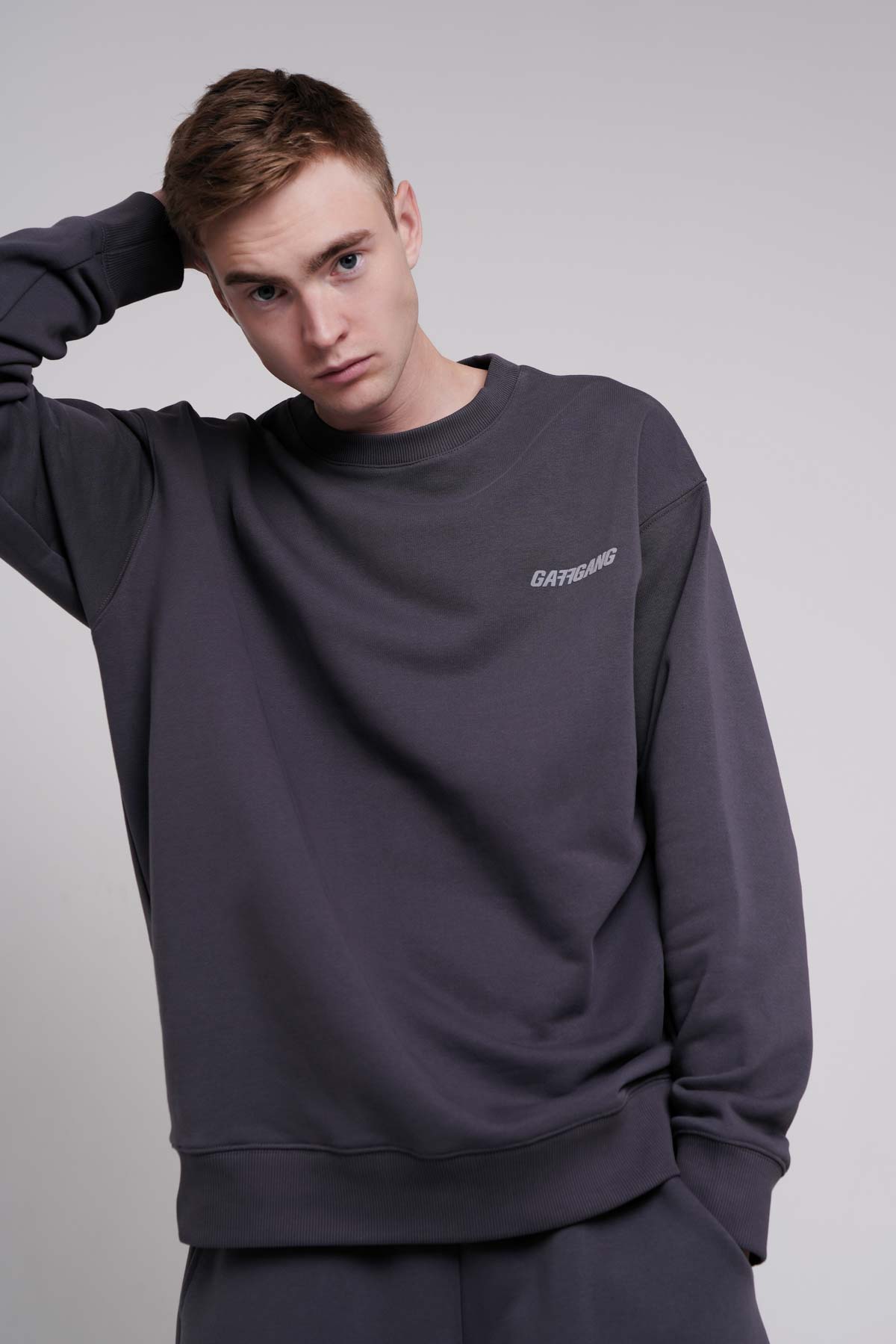 Свитшот в окрасе графит из хлопкового футера трехнитки.