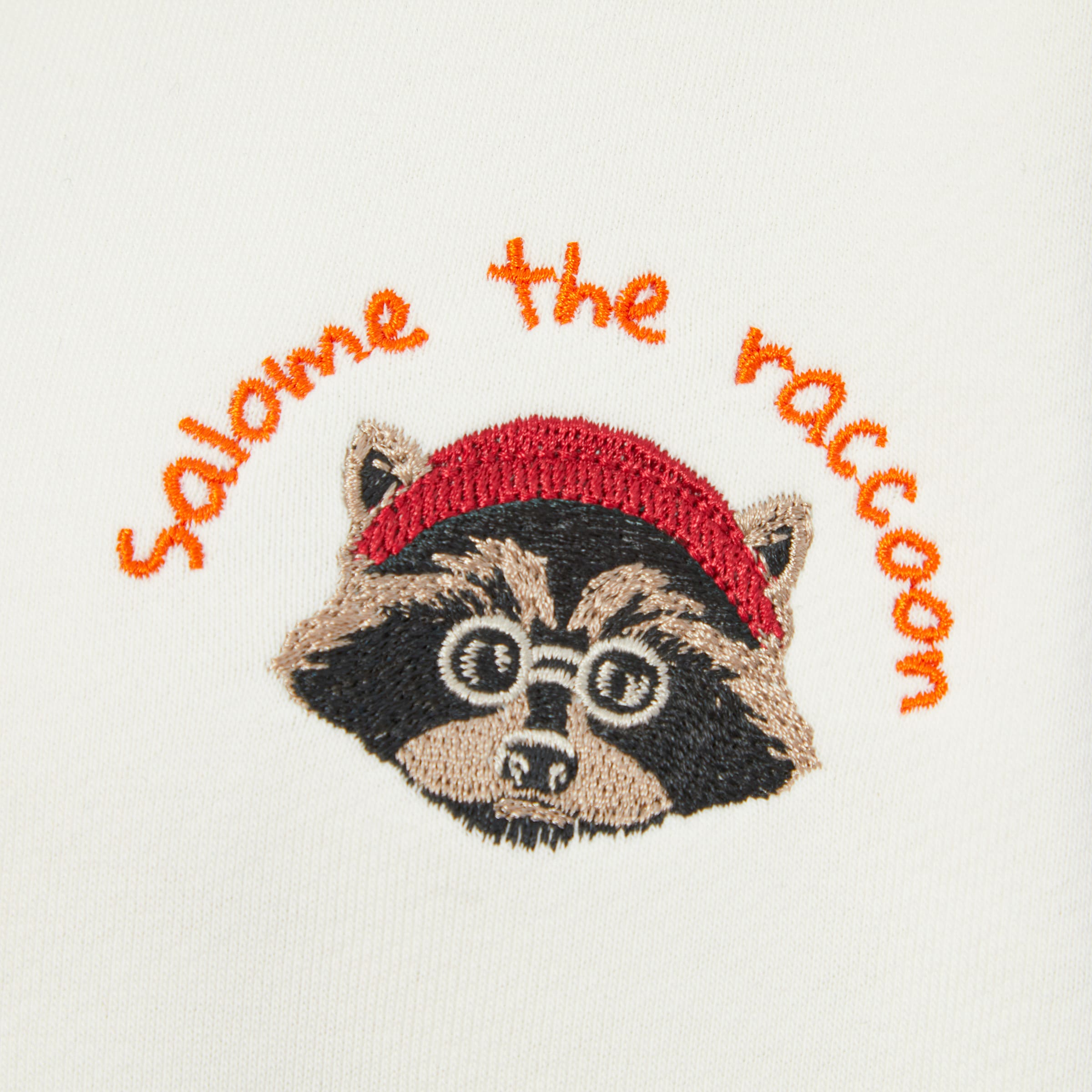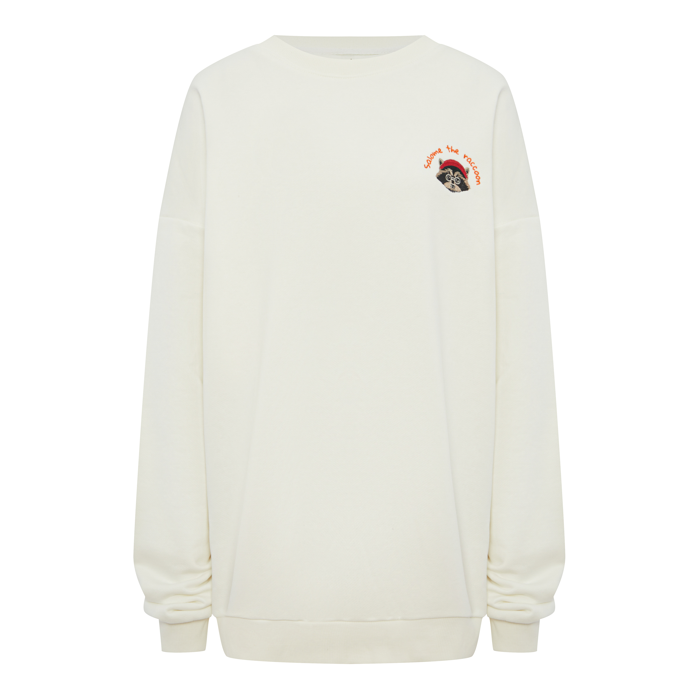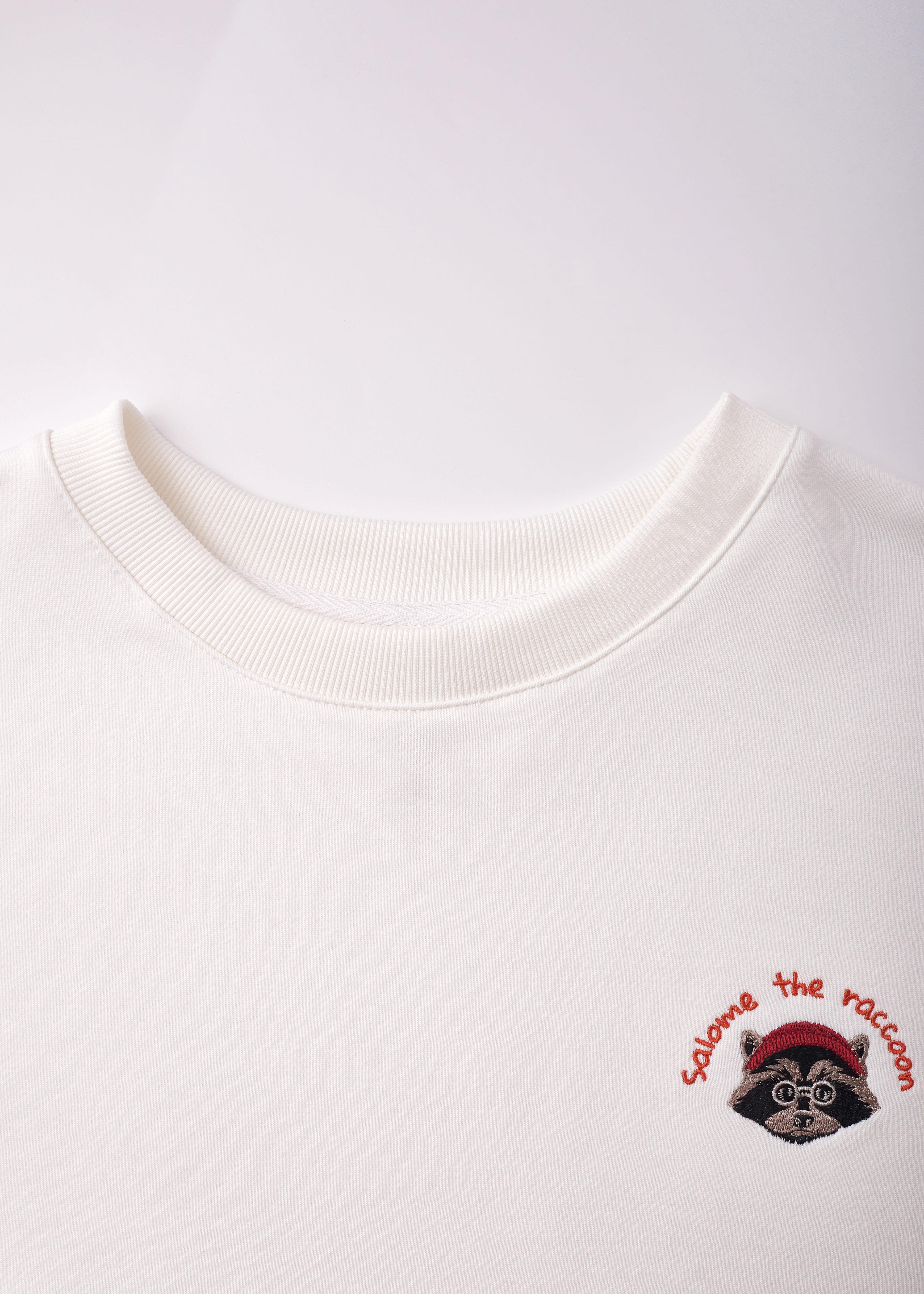 Свитшот лонгслив унисекс в стиле oversize прямого силуэта из мягкого хлопка (футер 3-х нитка) с добавлением полиэстера. Модель с круглым горловым вырезом, со спущенной линией плеча и длинным рукавом, обработанная по краям кашкорсе. Дополнена арт-объектом бренда «Salome the raccoon» в виде логотипа.