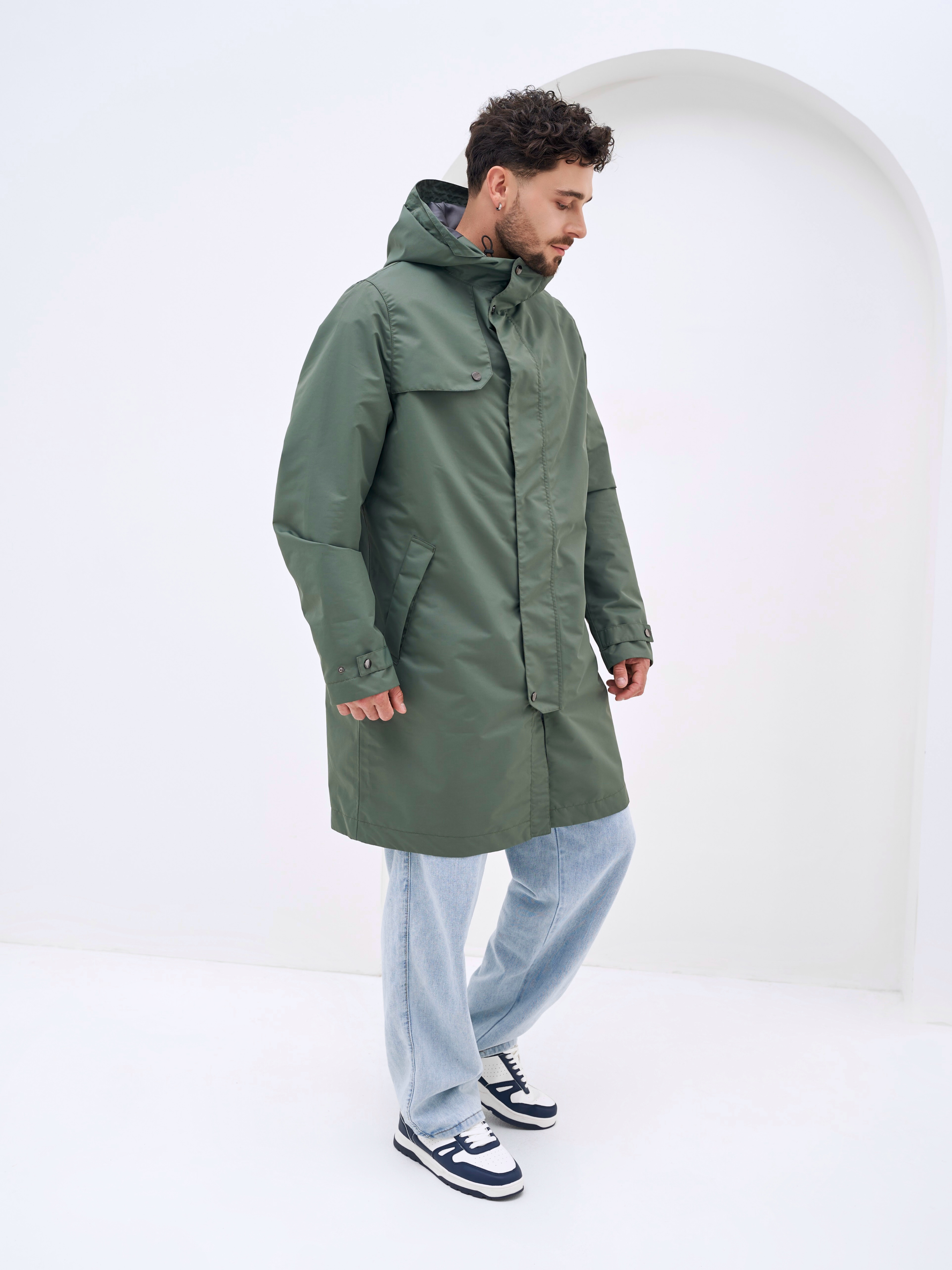 Мужской плащ «Елагин» из мембранной ткани защиты от непогоды. Стильная модель, которая отлично подойдёт к любому гардеробу. В нем будет по-настоящему комфортно, благодаря универсальному фасону и сетке под кокеткой на спине.