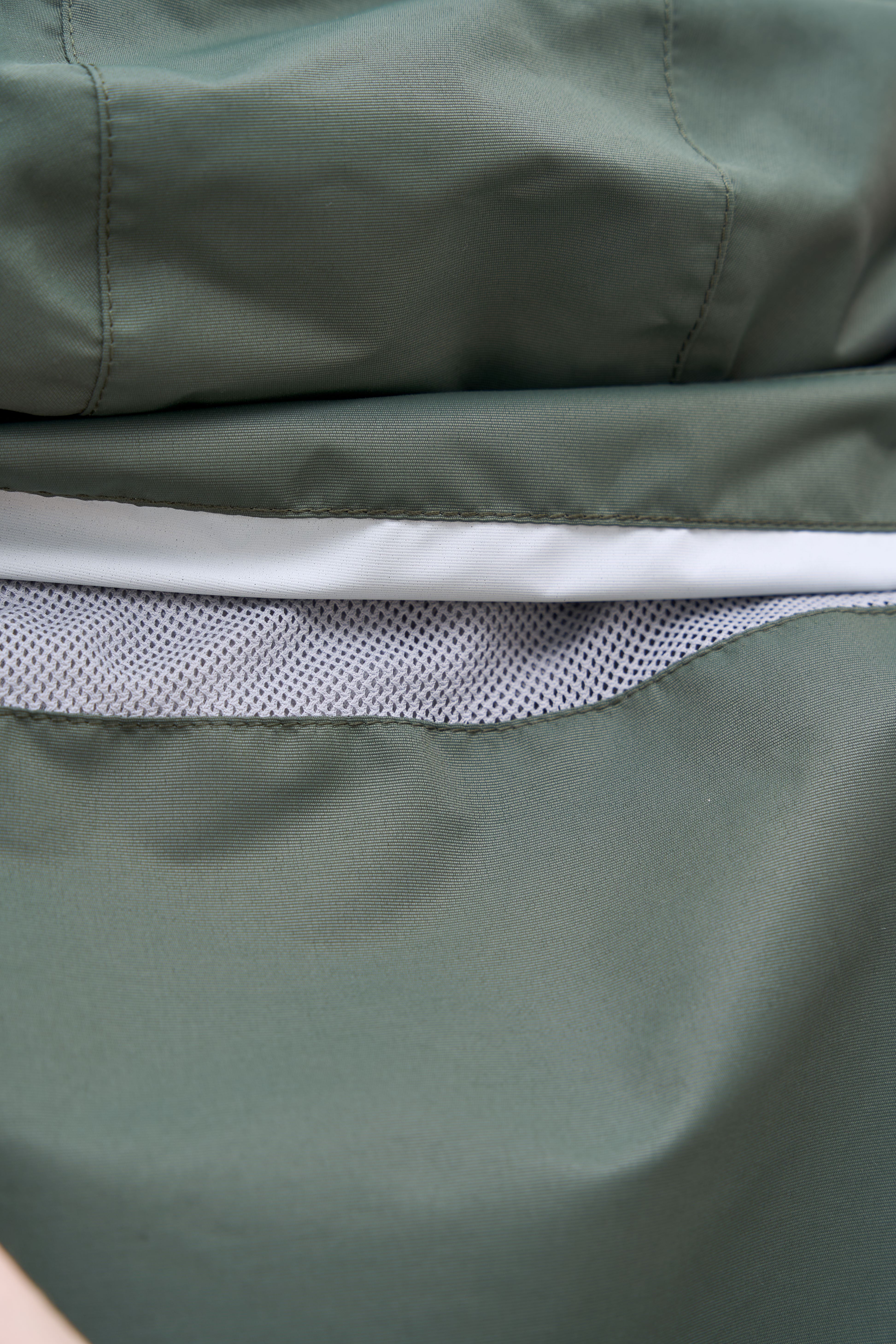 Детали плаща: черный подклад (саржевое плетение), удобный глубокий капюшон с козырьком, универсальная длина, двухзамковая молния, сетка на спинке, регулируемый рукав, капюшон, закрытые внешние карманы, 2 внутренних кармана на застежке, герметичные швы