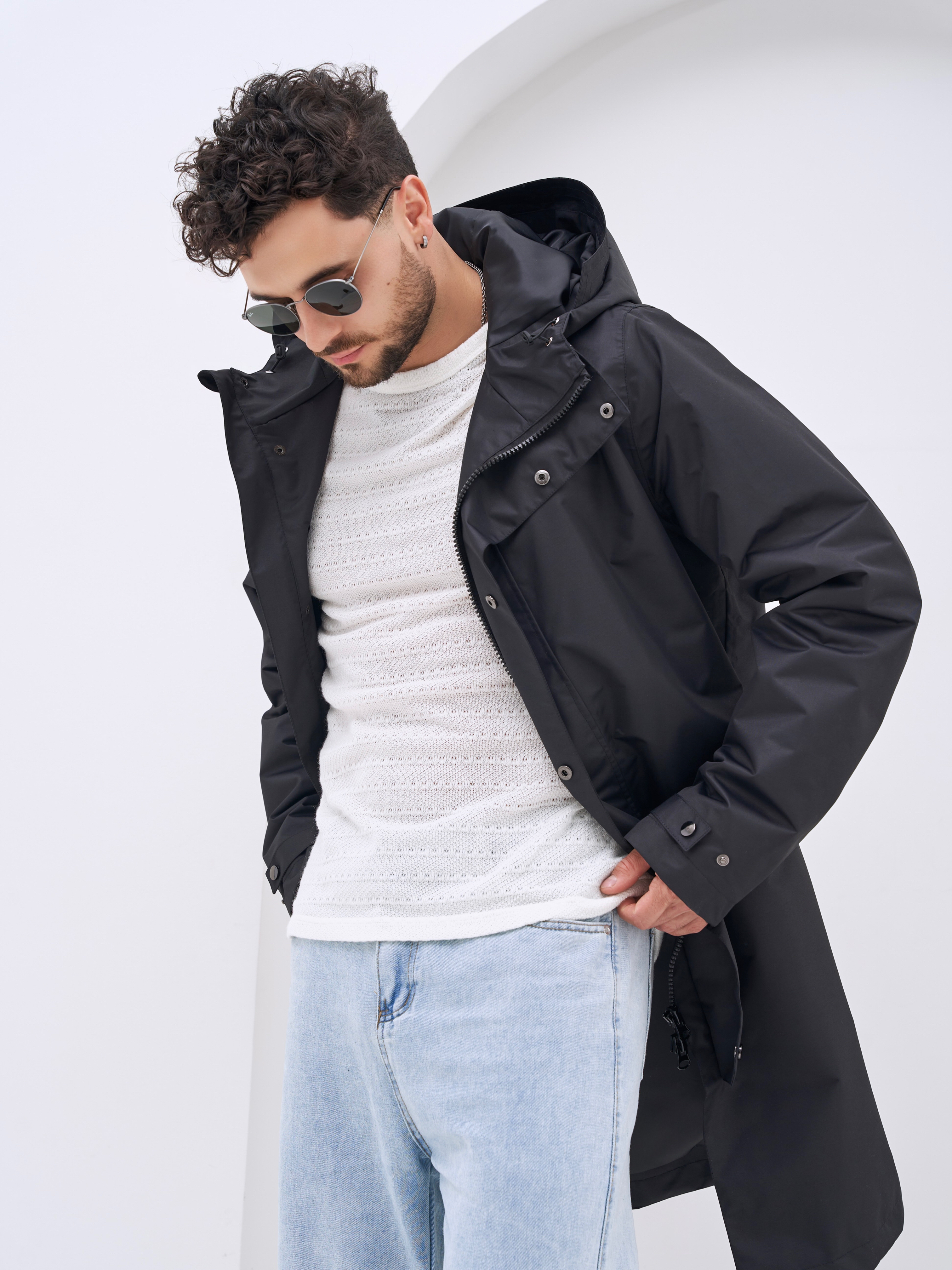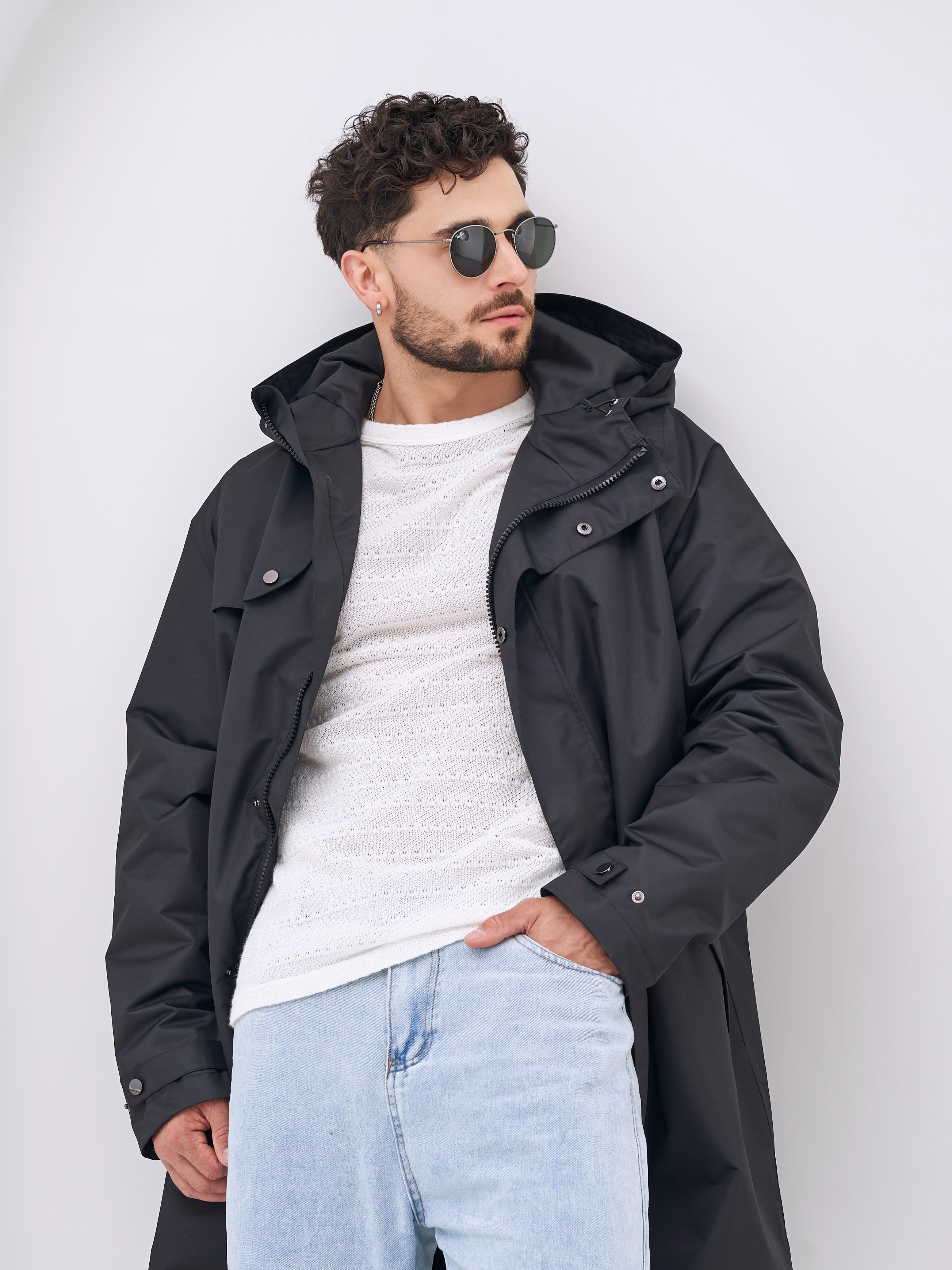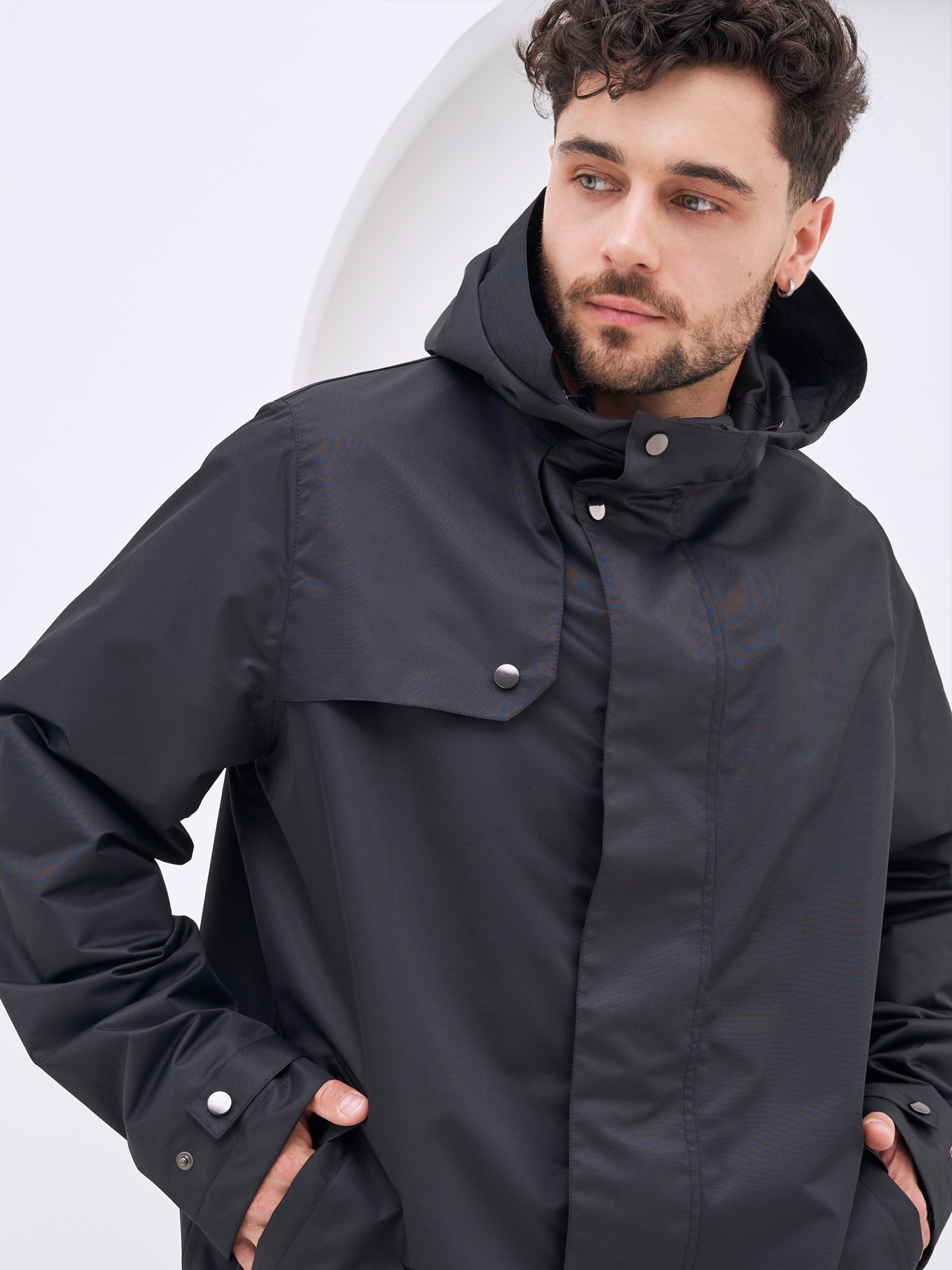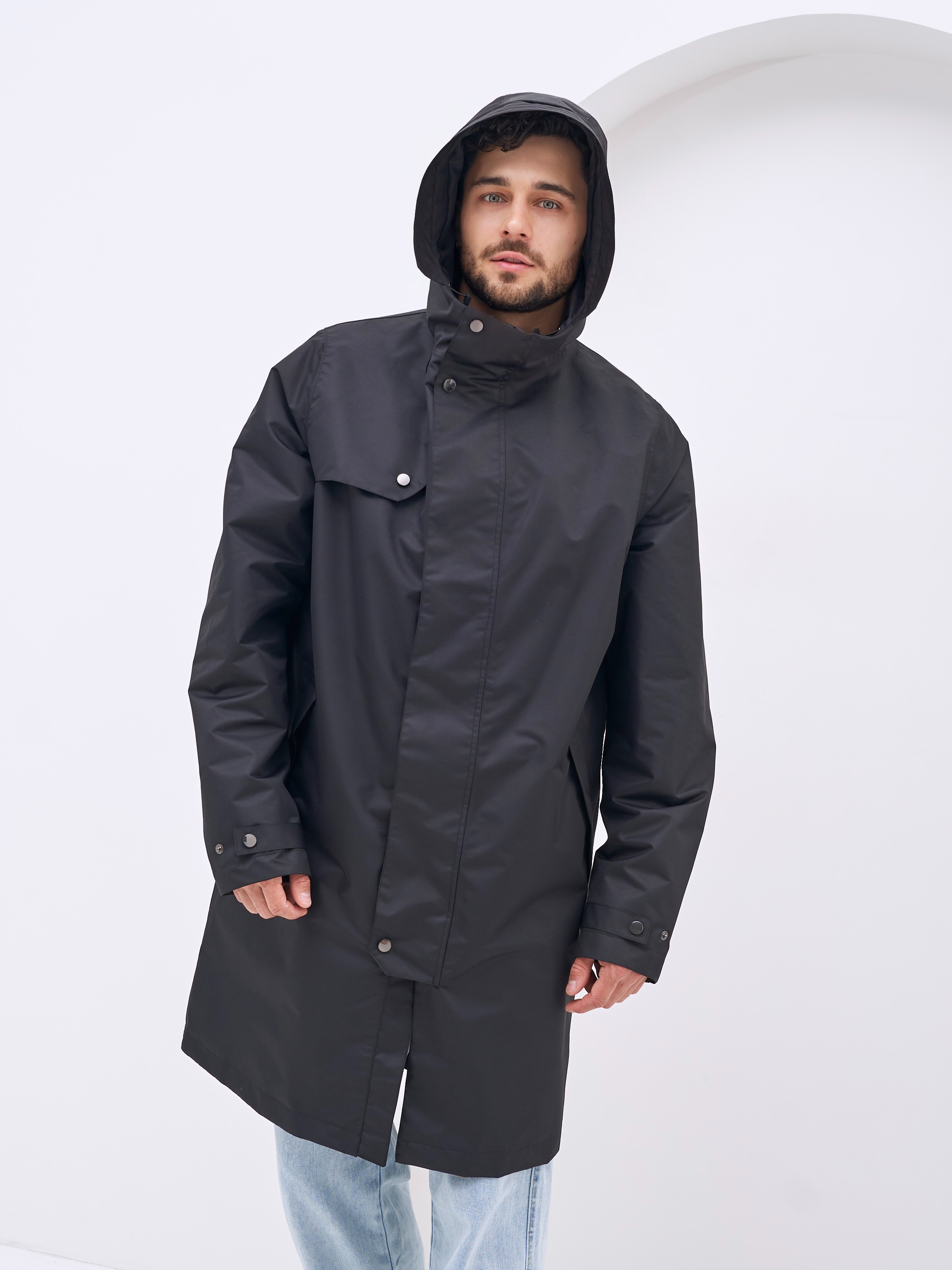 Мужской плащ «Елагин» из мембранной ткани защиты от непогоды. Стильная модель, которая отлично подойдёт к любому гардеробу. В нем будет по-настоящему комфортно, благодаря универсальному фасону и сетке под кокеткой на спине.